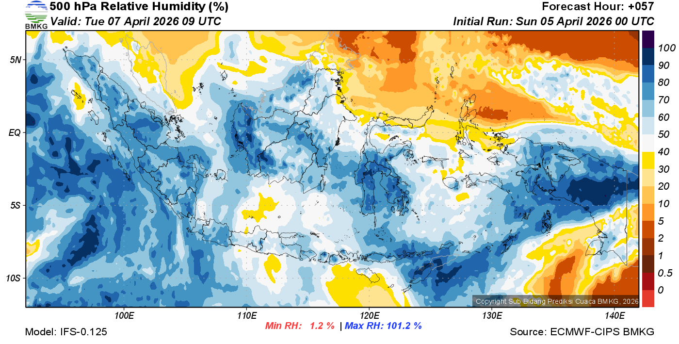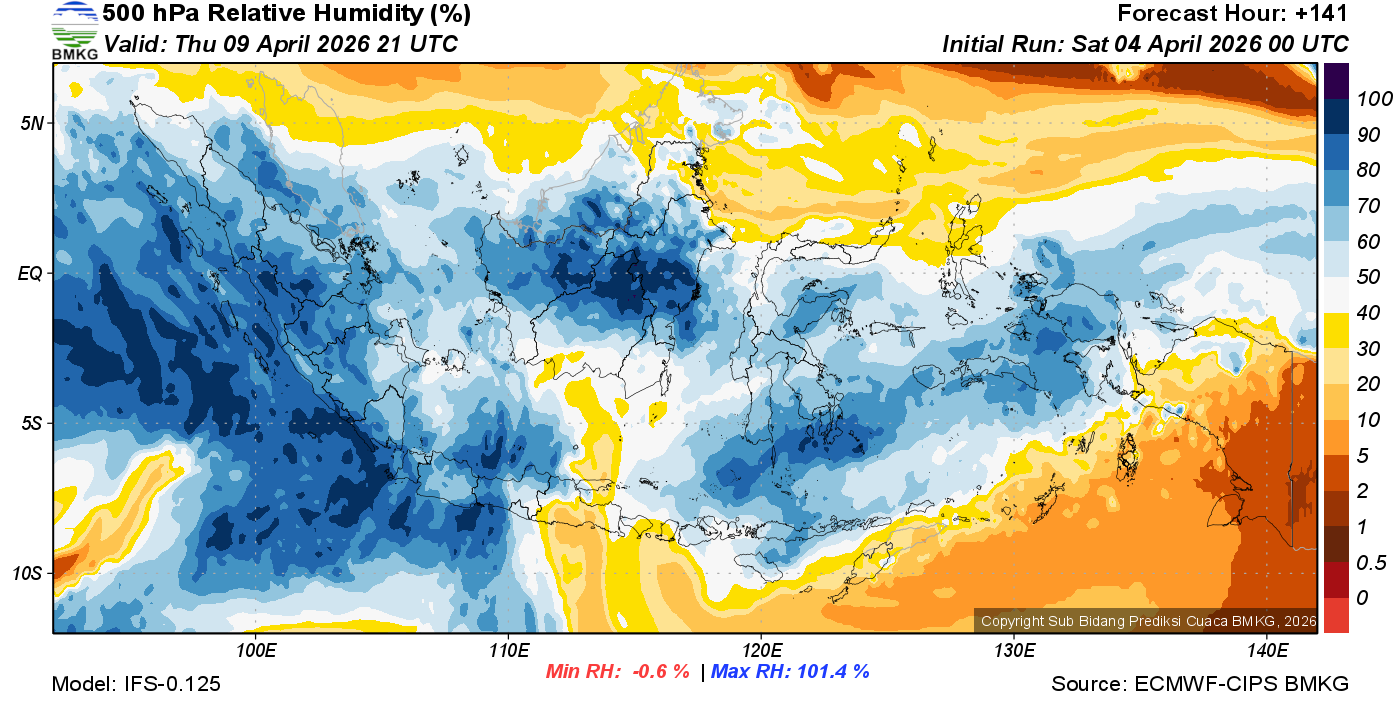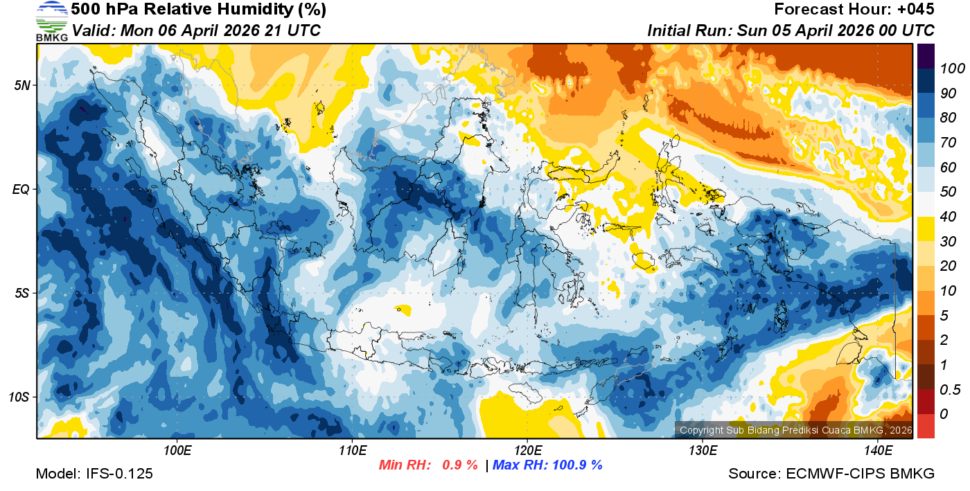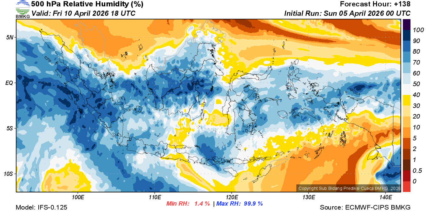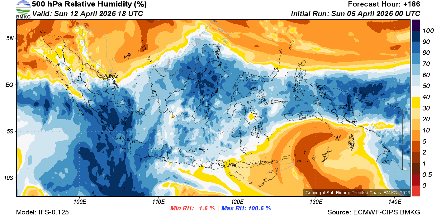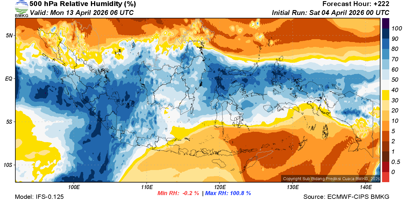 Prediksi Suhu Titik Embun 600 hPa NTT