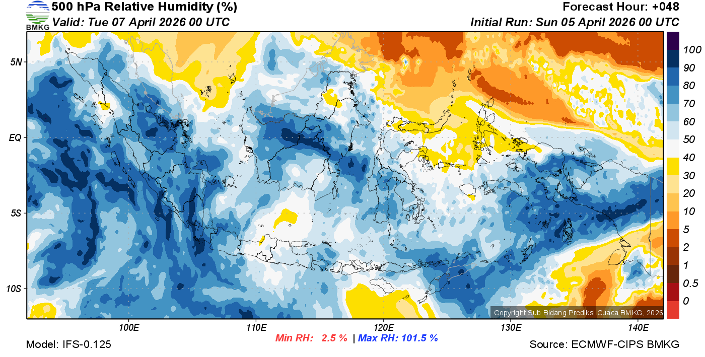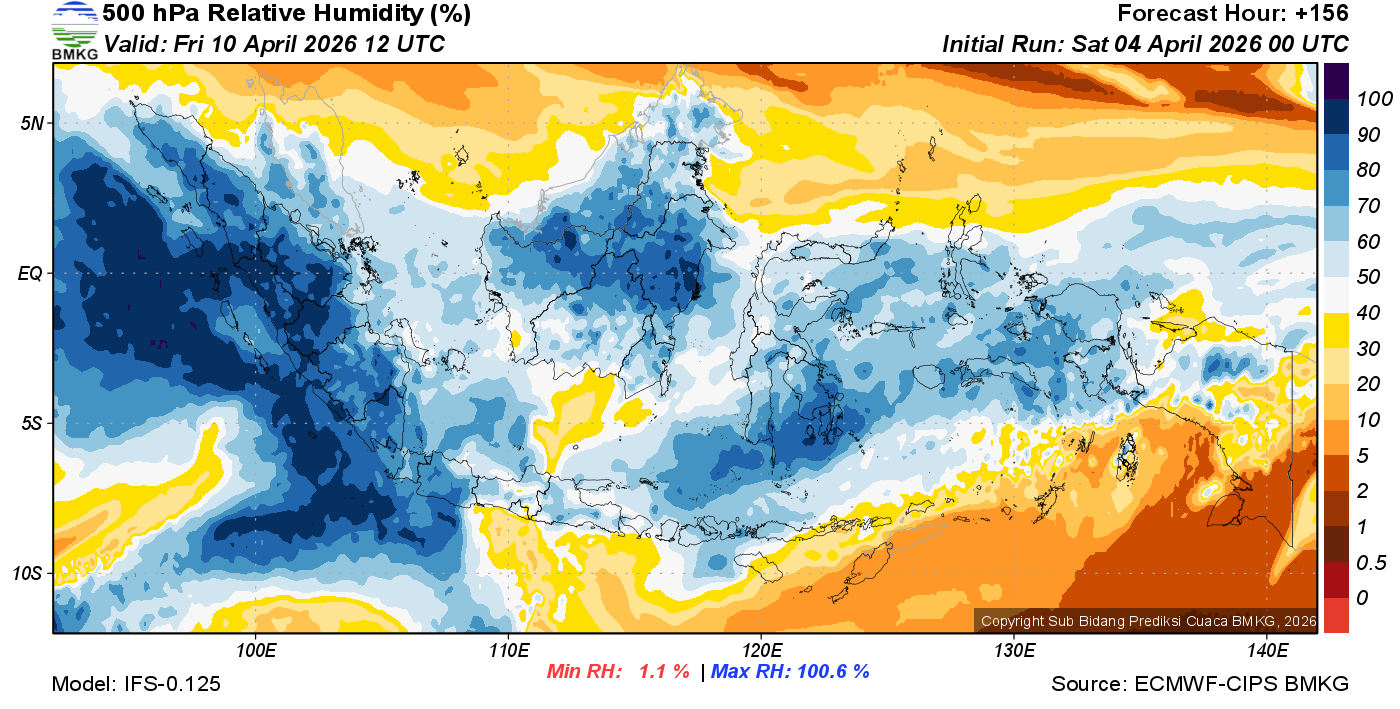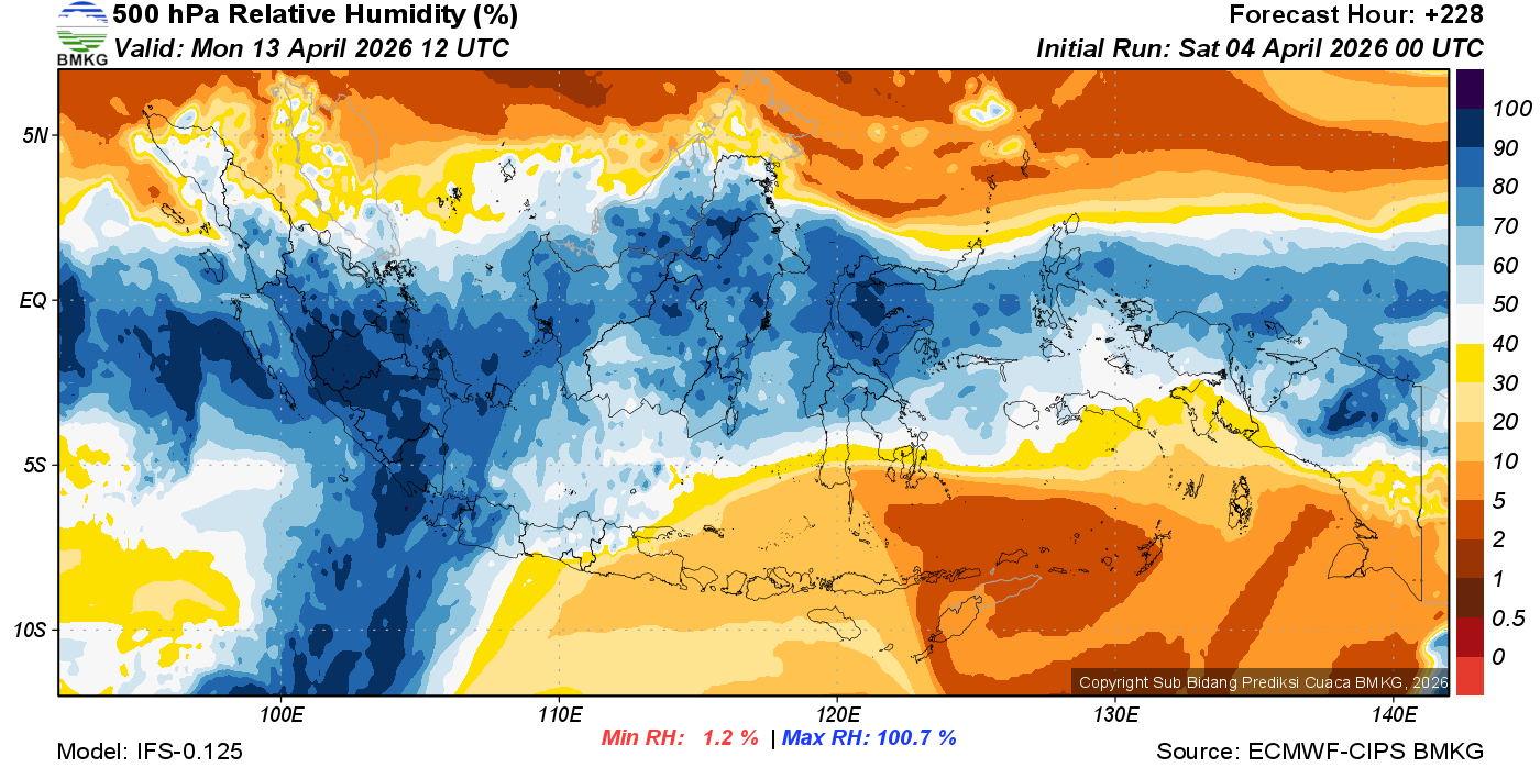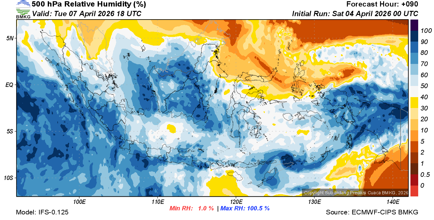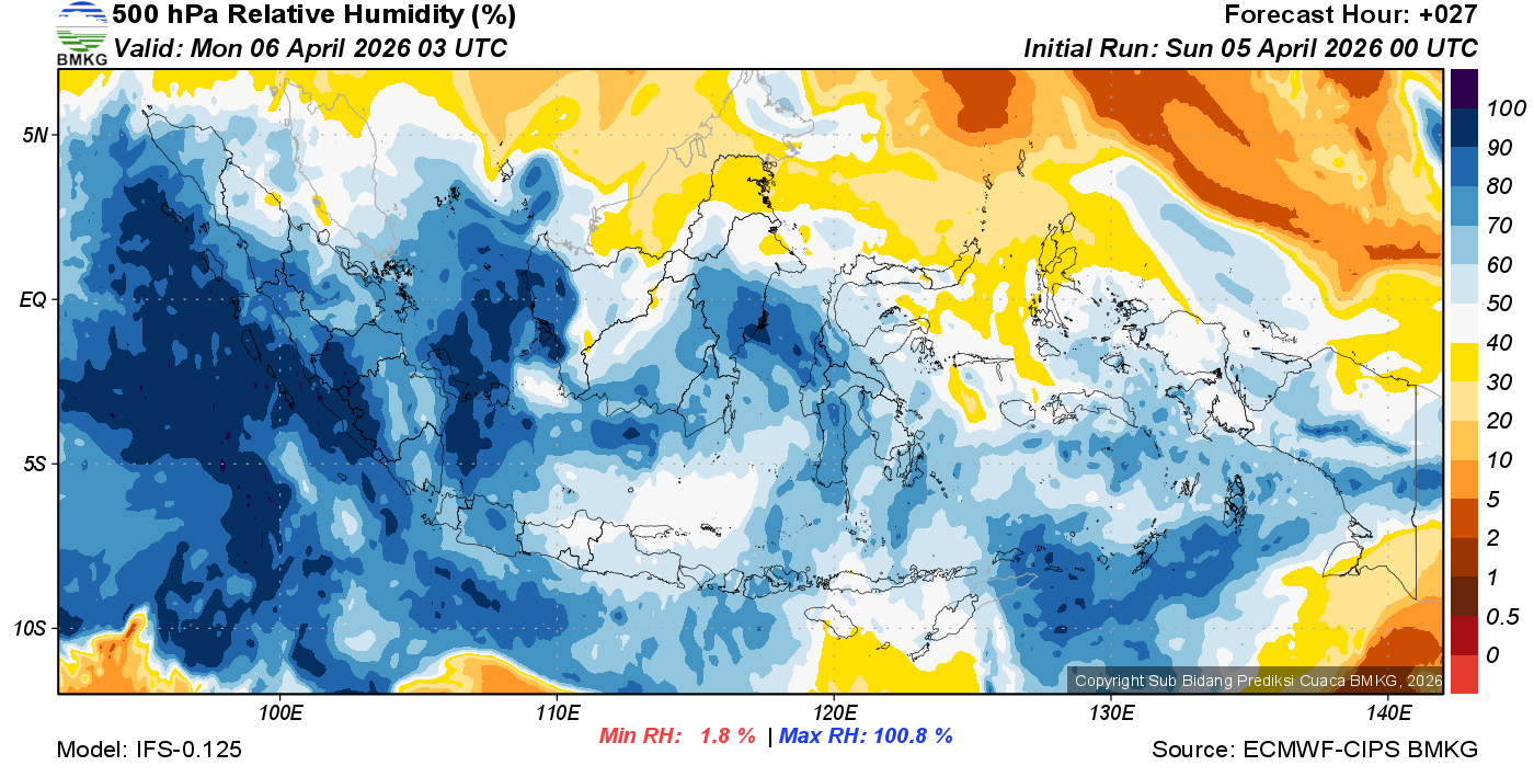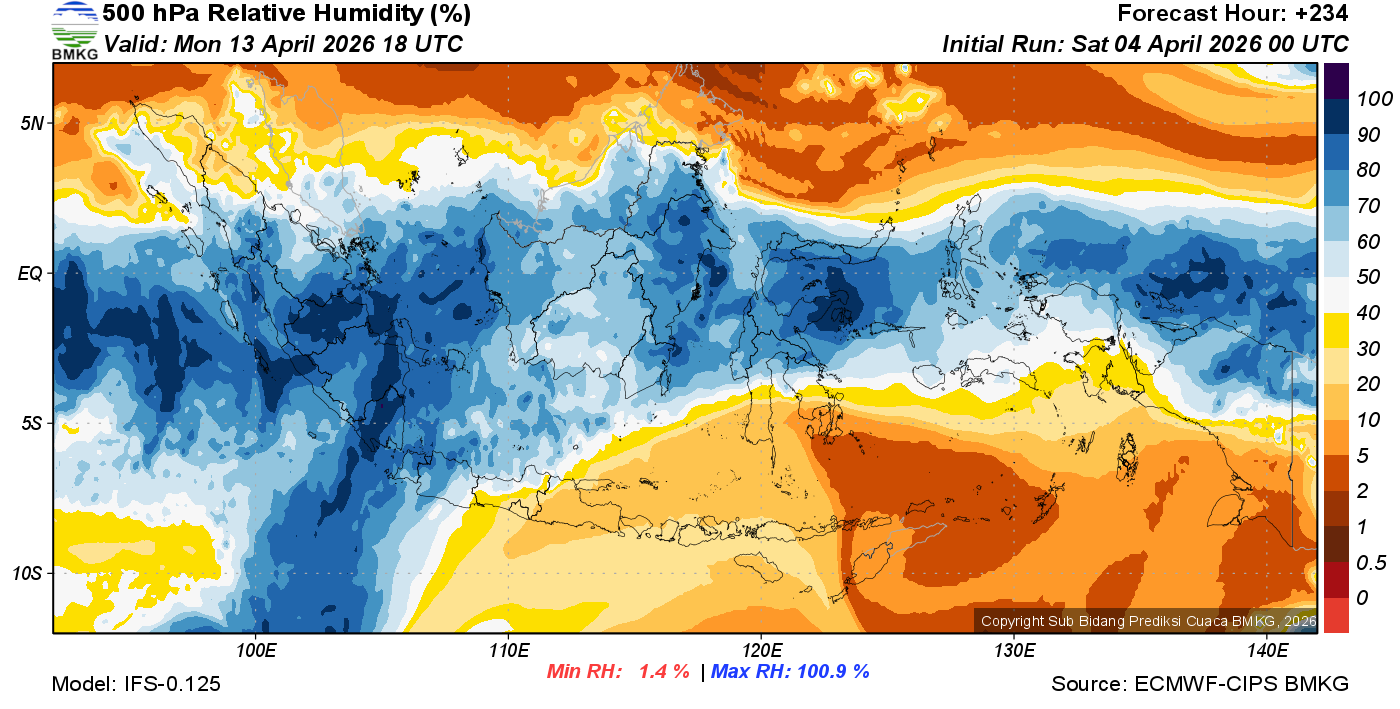 Prediksi Suhu Titik Embun 600 hPa NTT