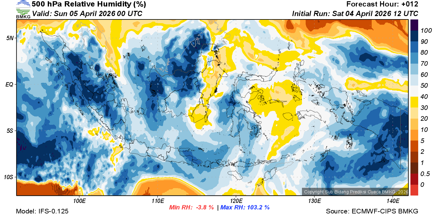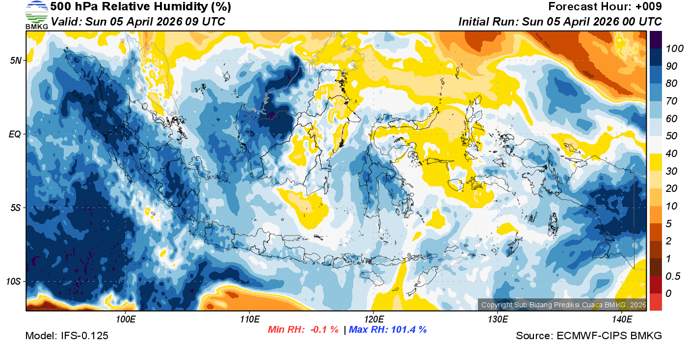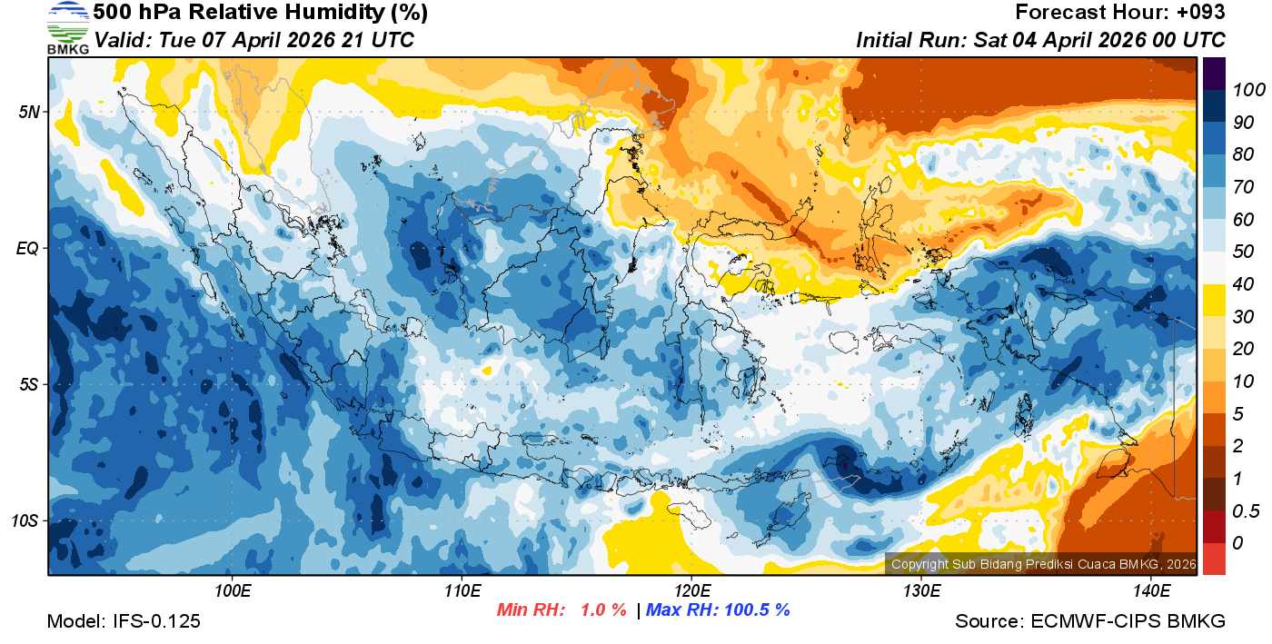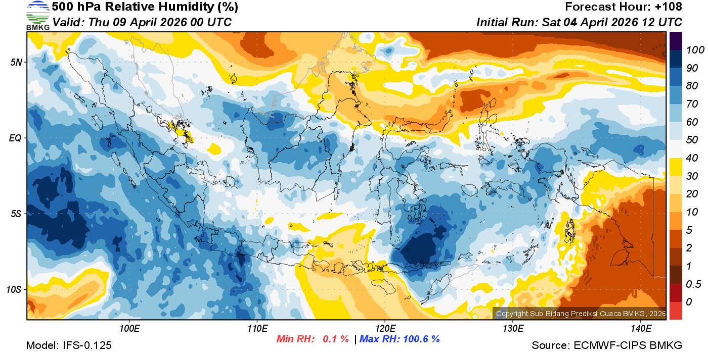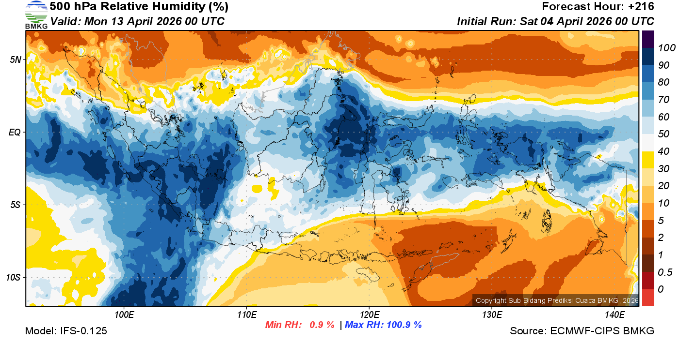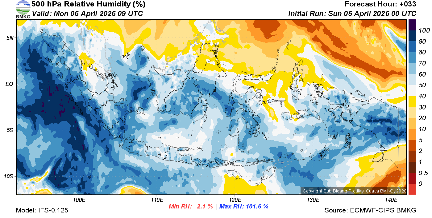 Prediksi Suhu Titik Embun 600 hPa NTT