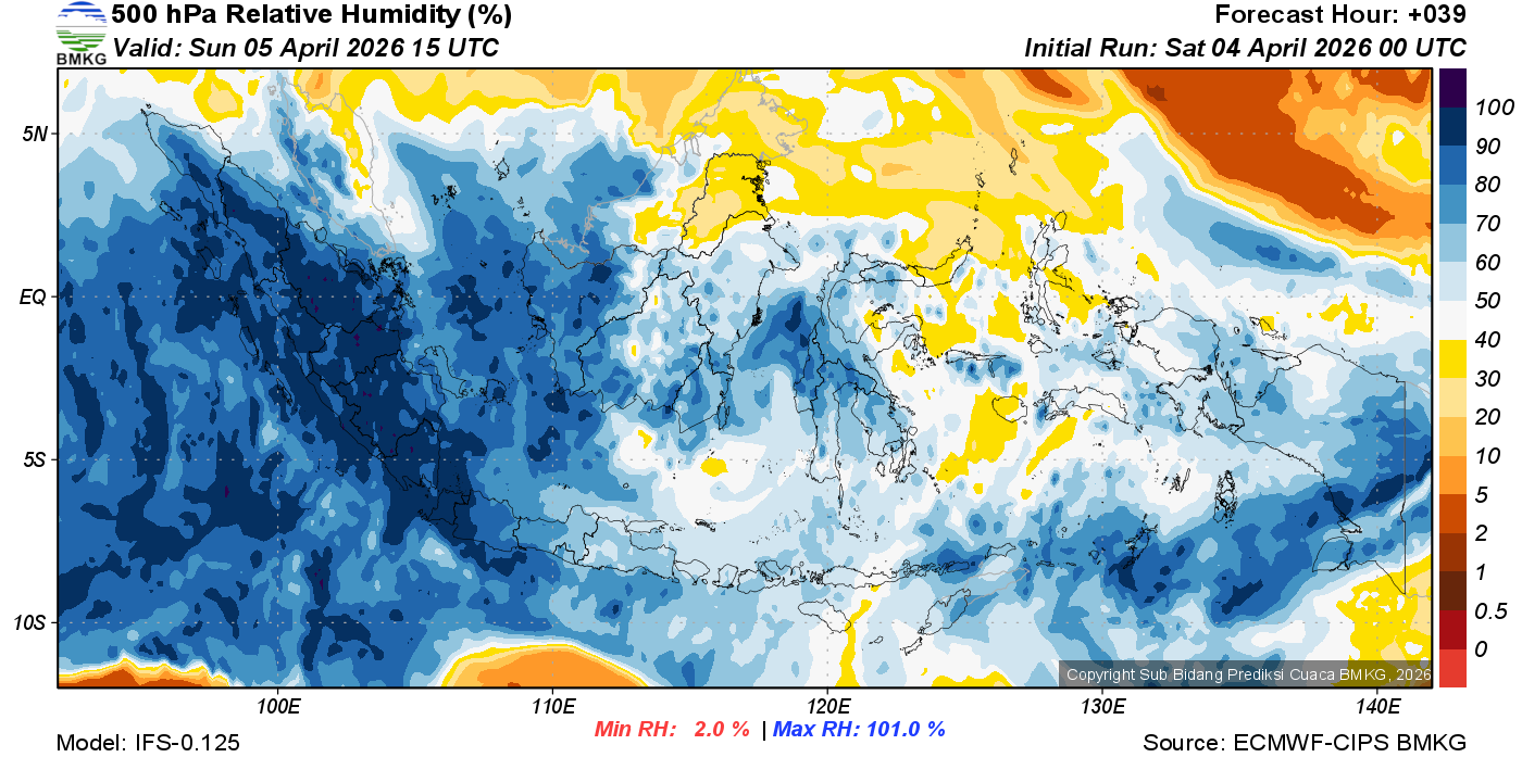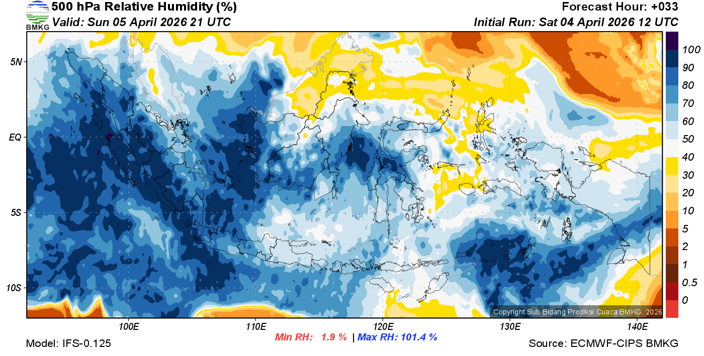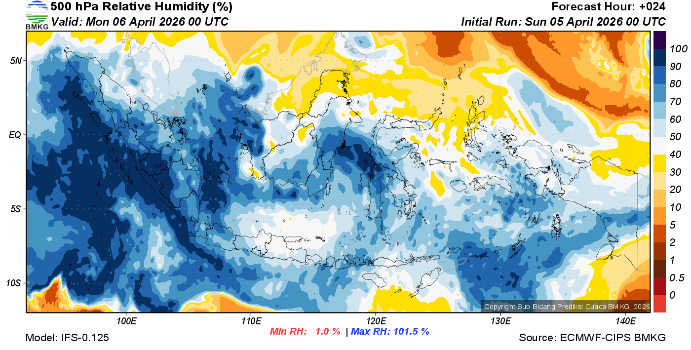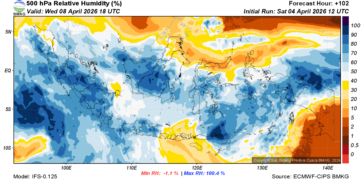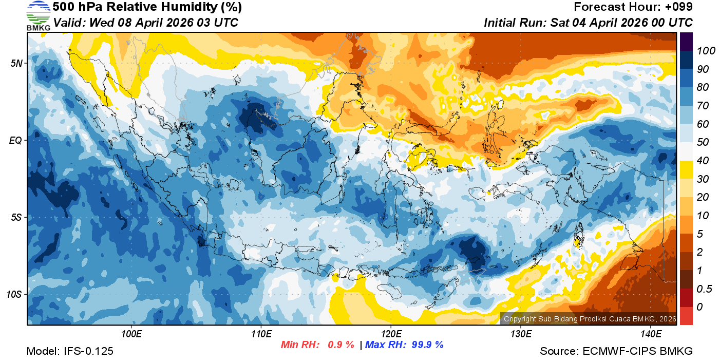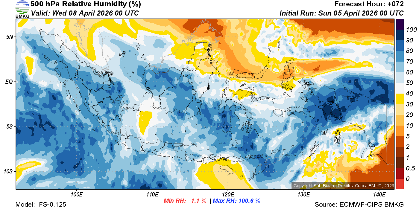 Prediksi Suhu Titik Embun 600 hPa NTT