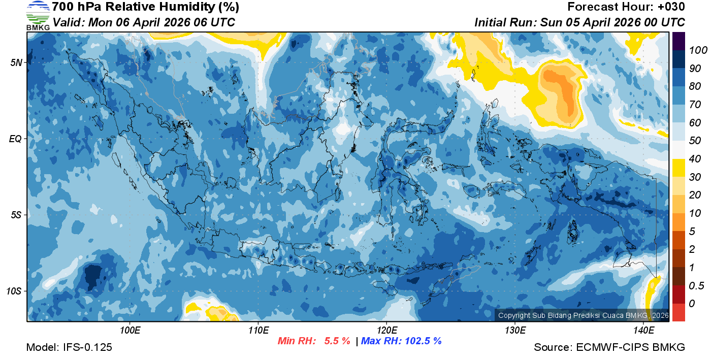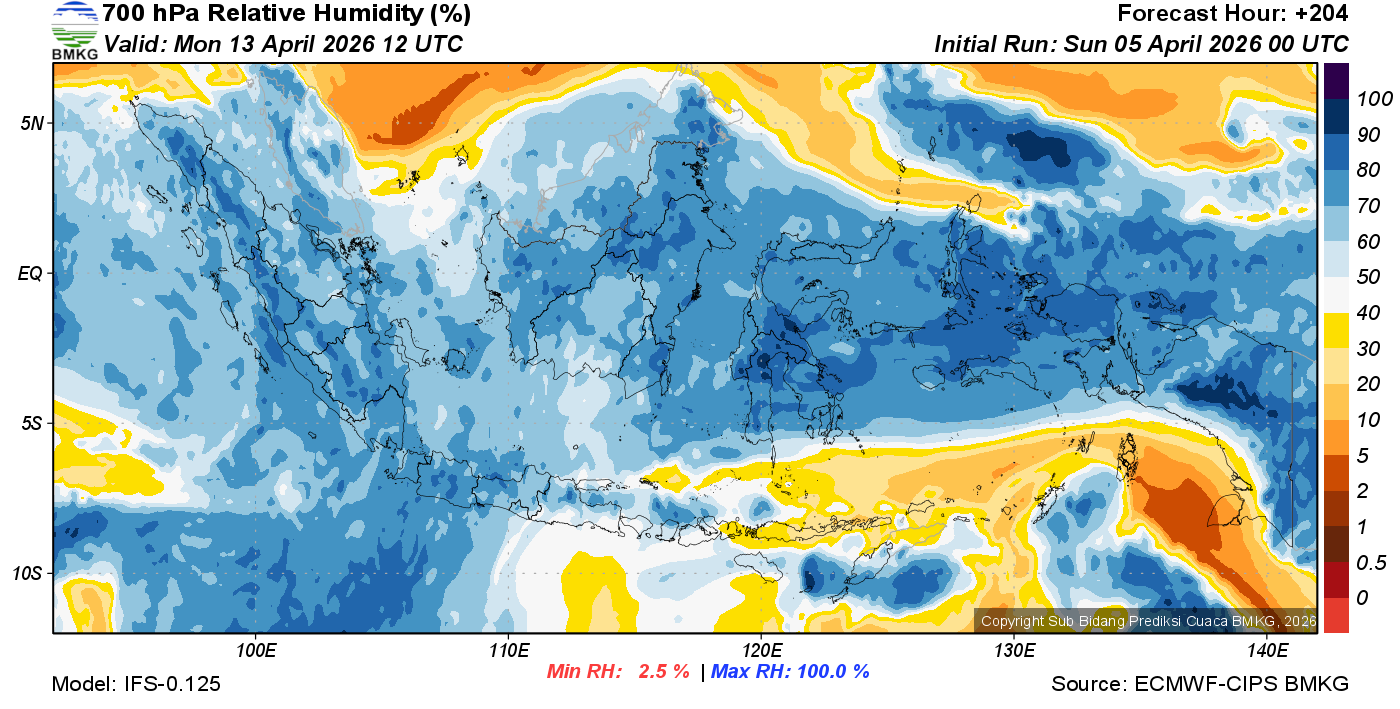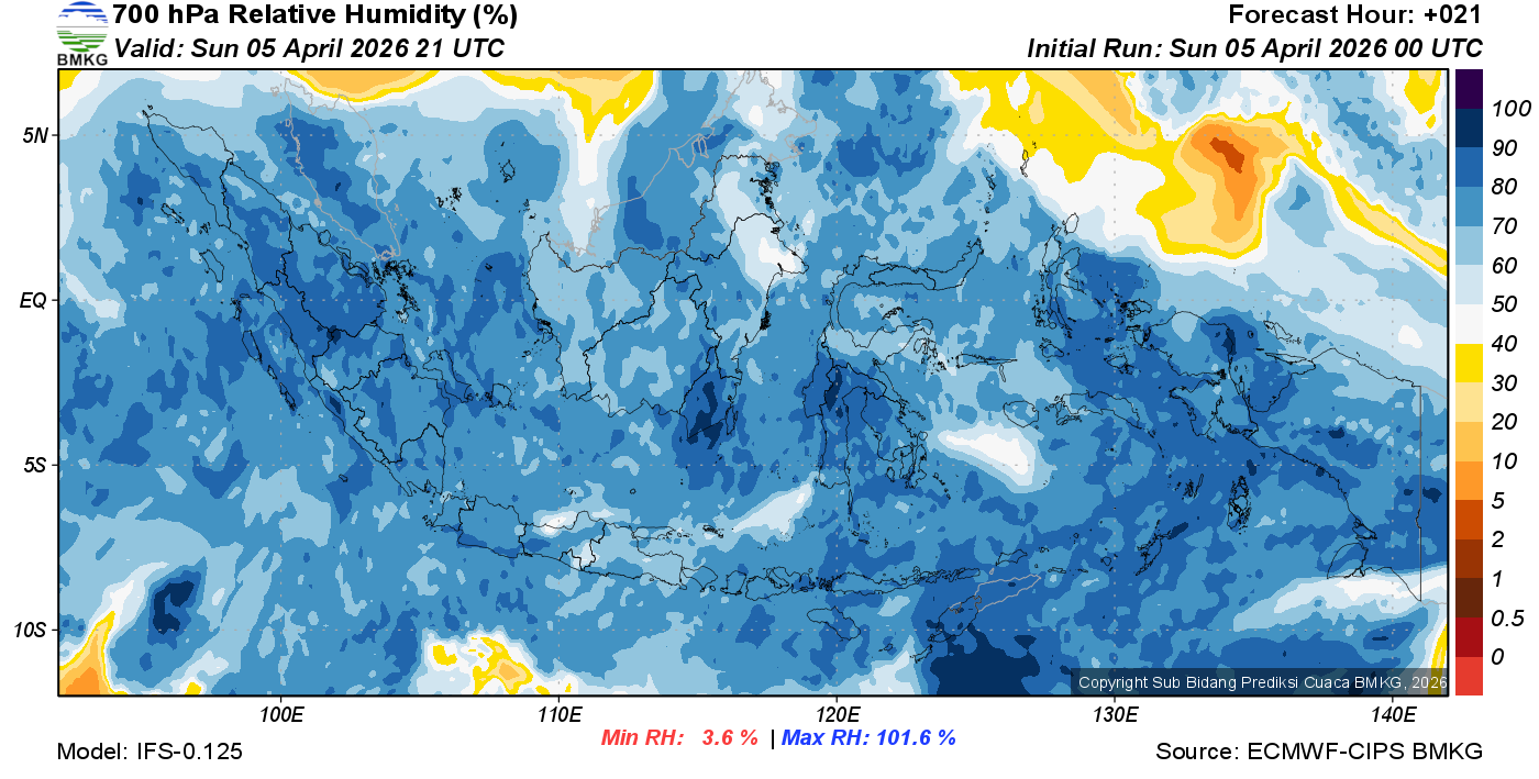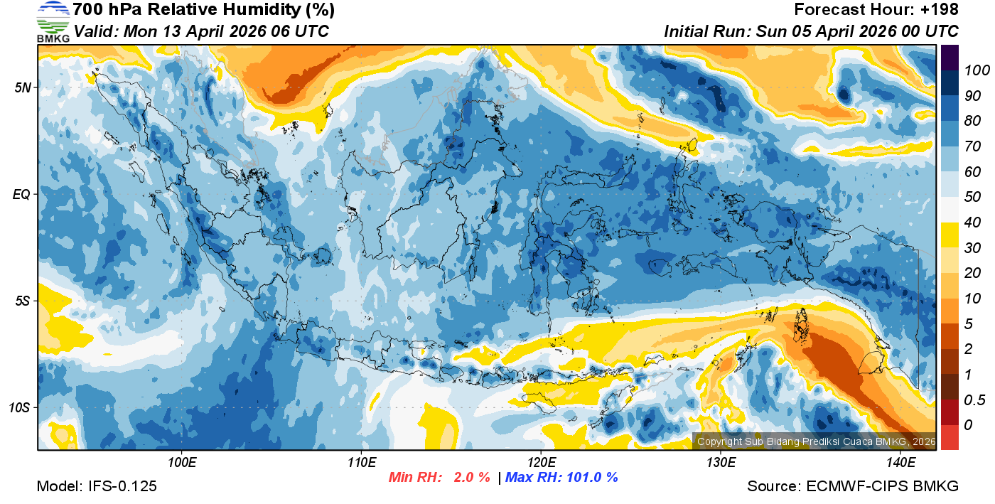 Prediksi Kelembapan 700 hPa NTT