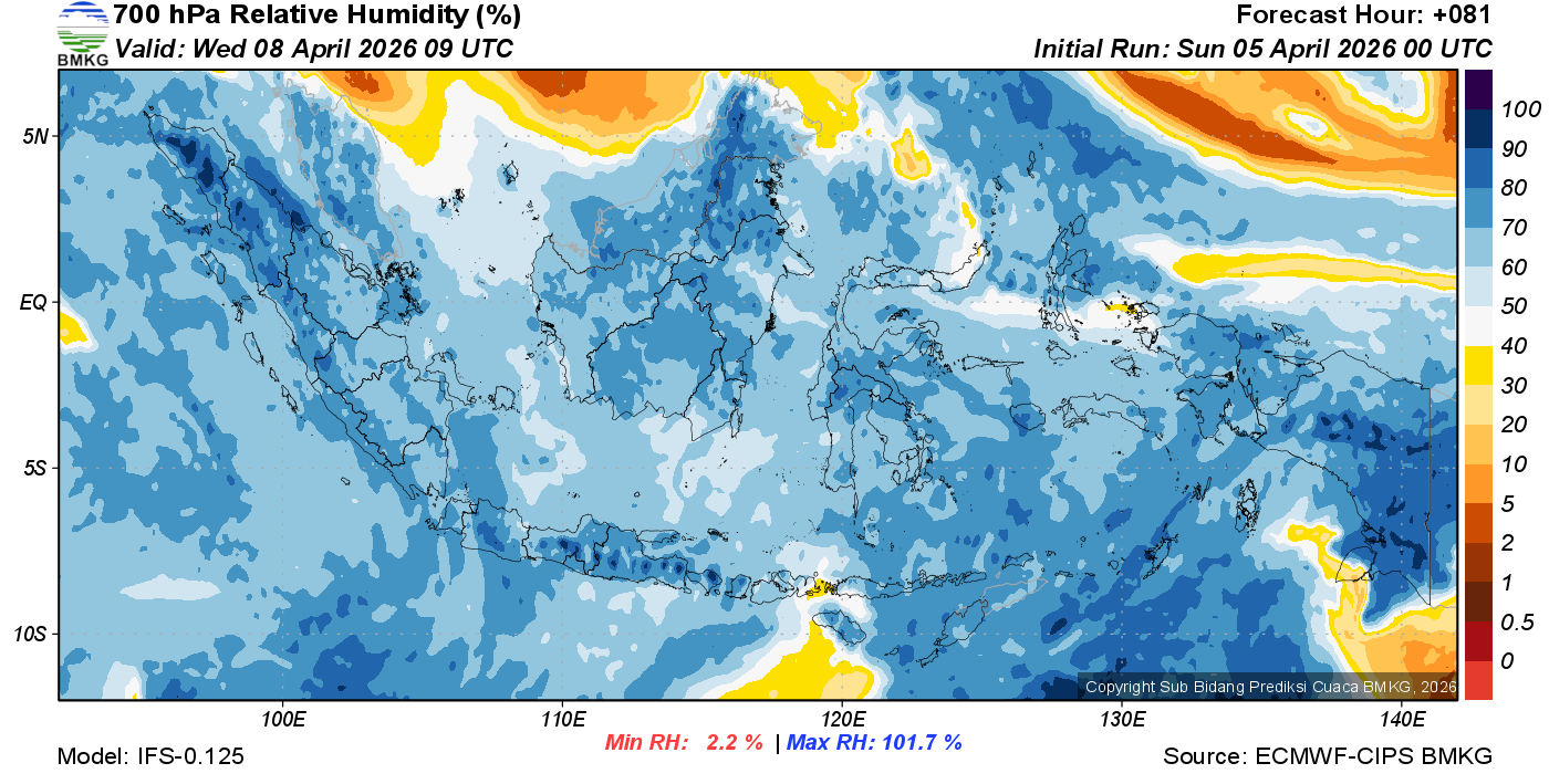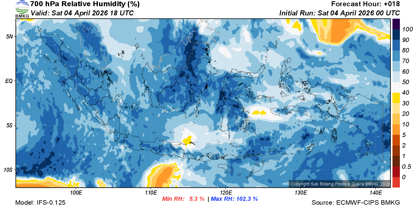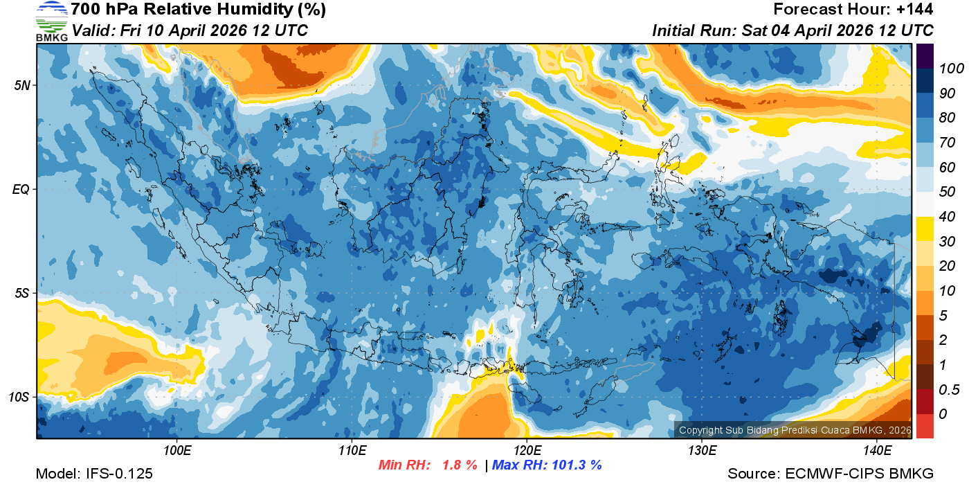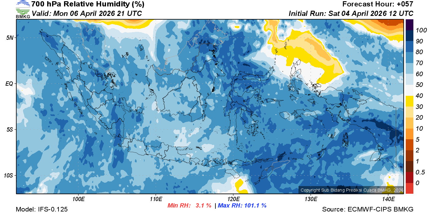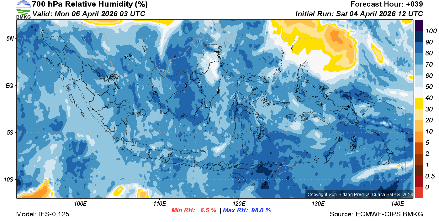 Prediksi Kelembapan 700 hPa NTT