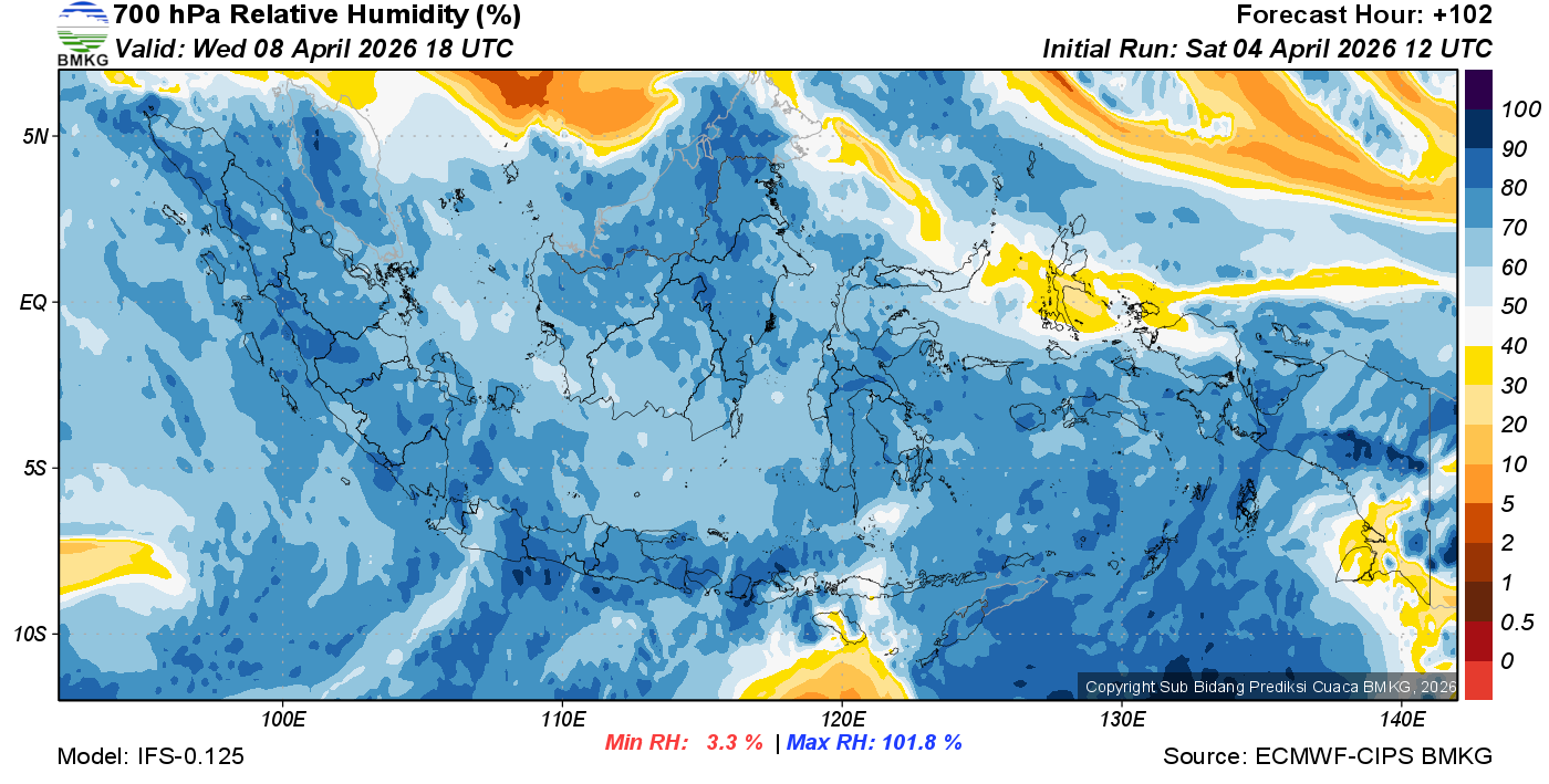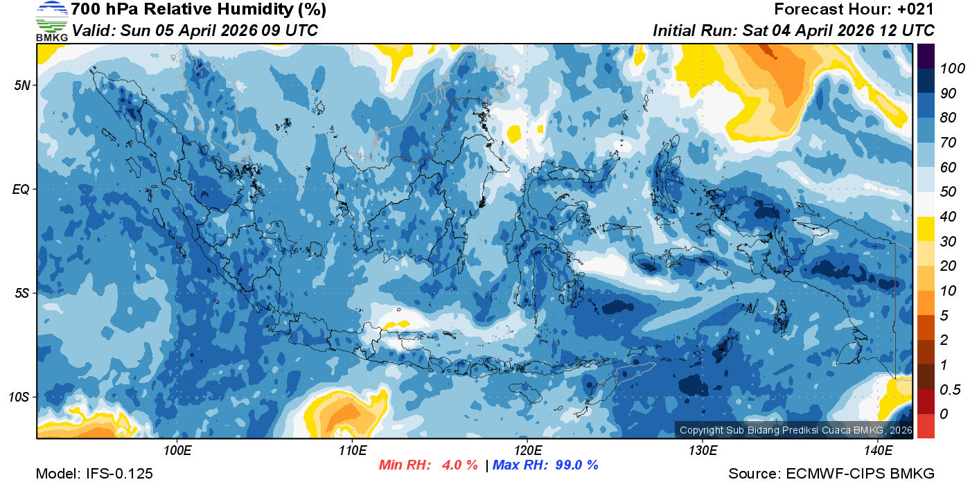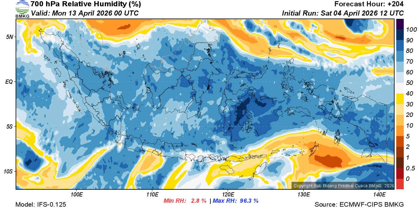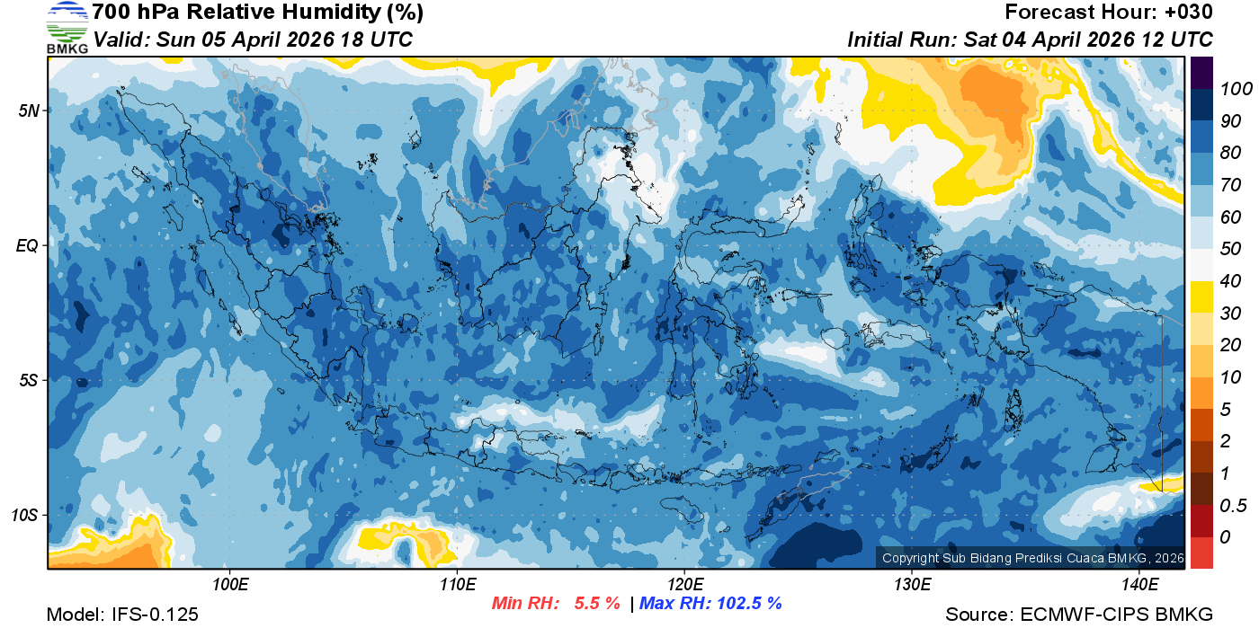 Prediksi Kelembapan 700 hPa NTT