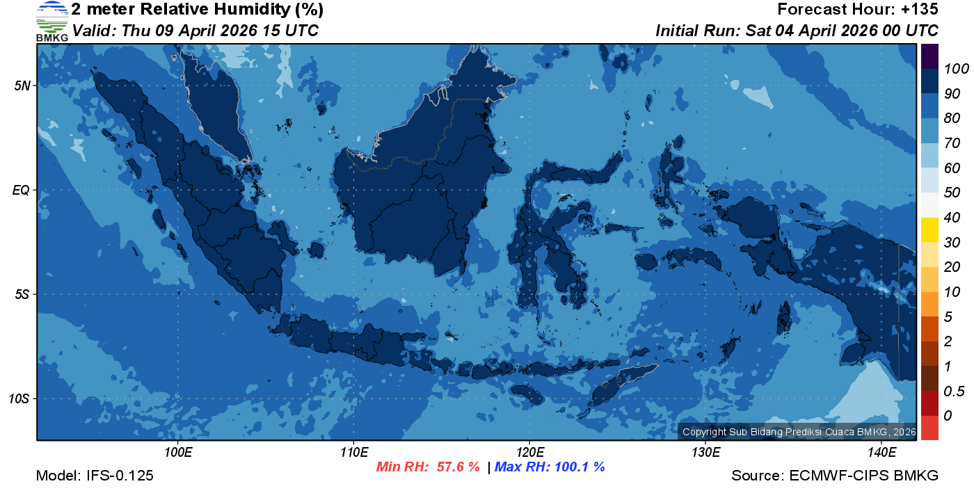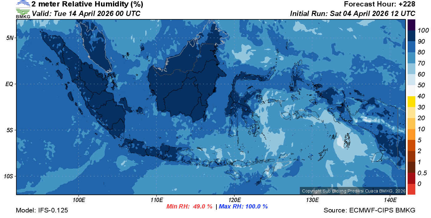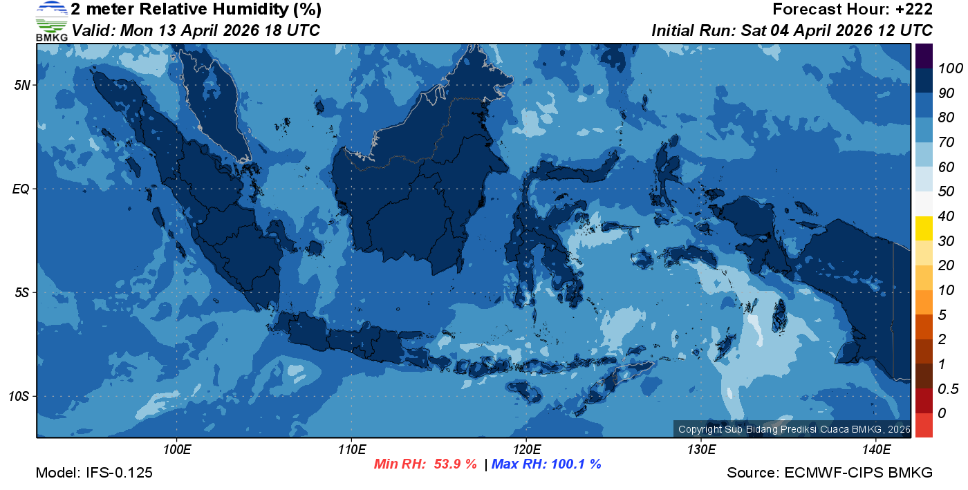 Prediksi Suhu Titik Embun 600 hPa NTT