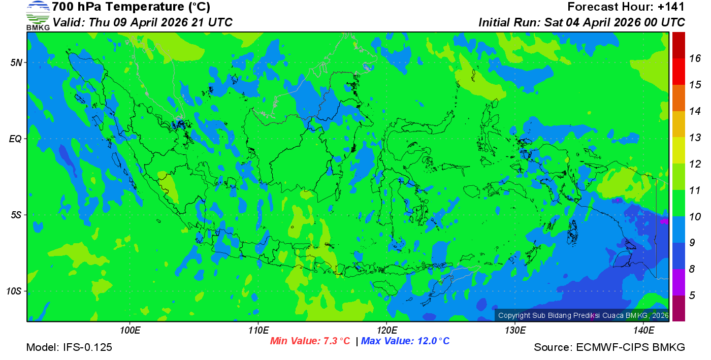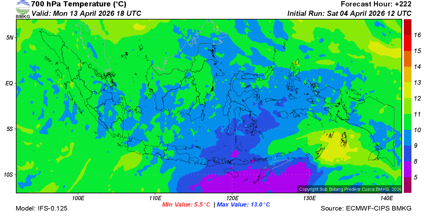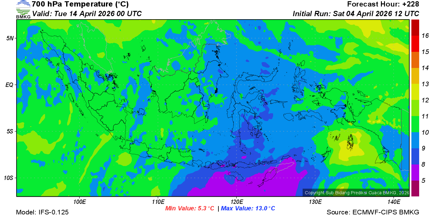Prediksi Suhu Titik Embun 700 hPa NTT
