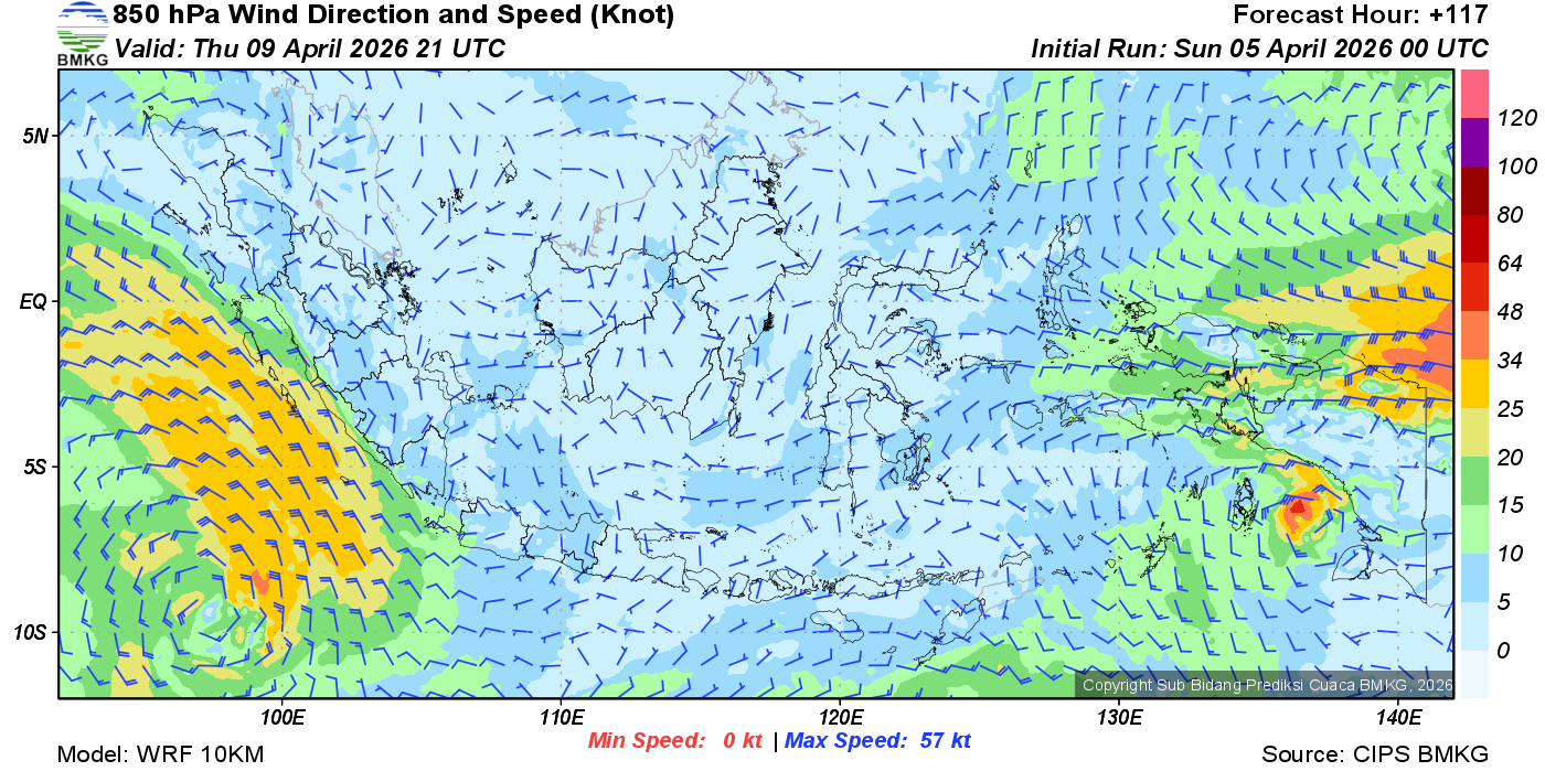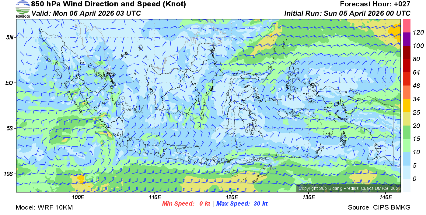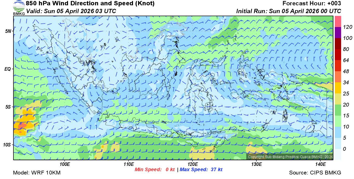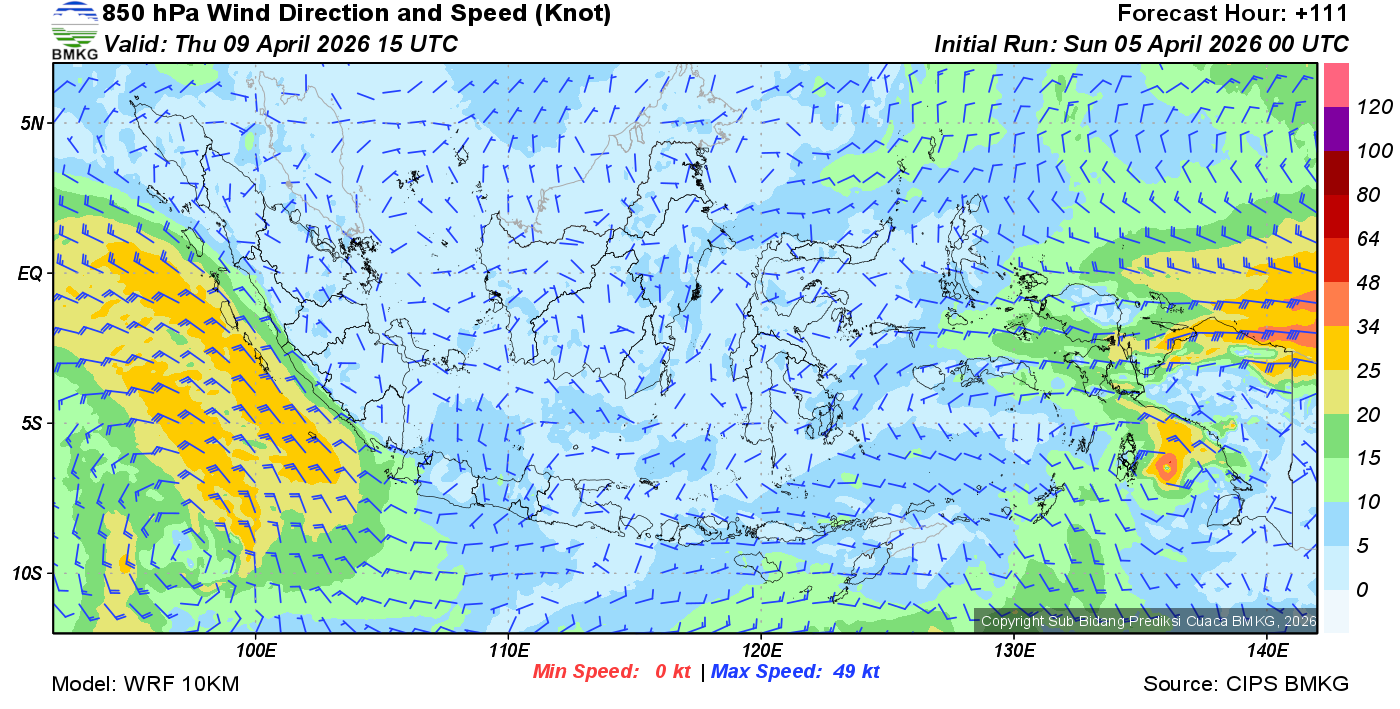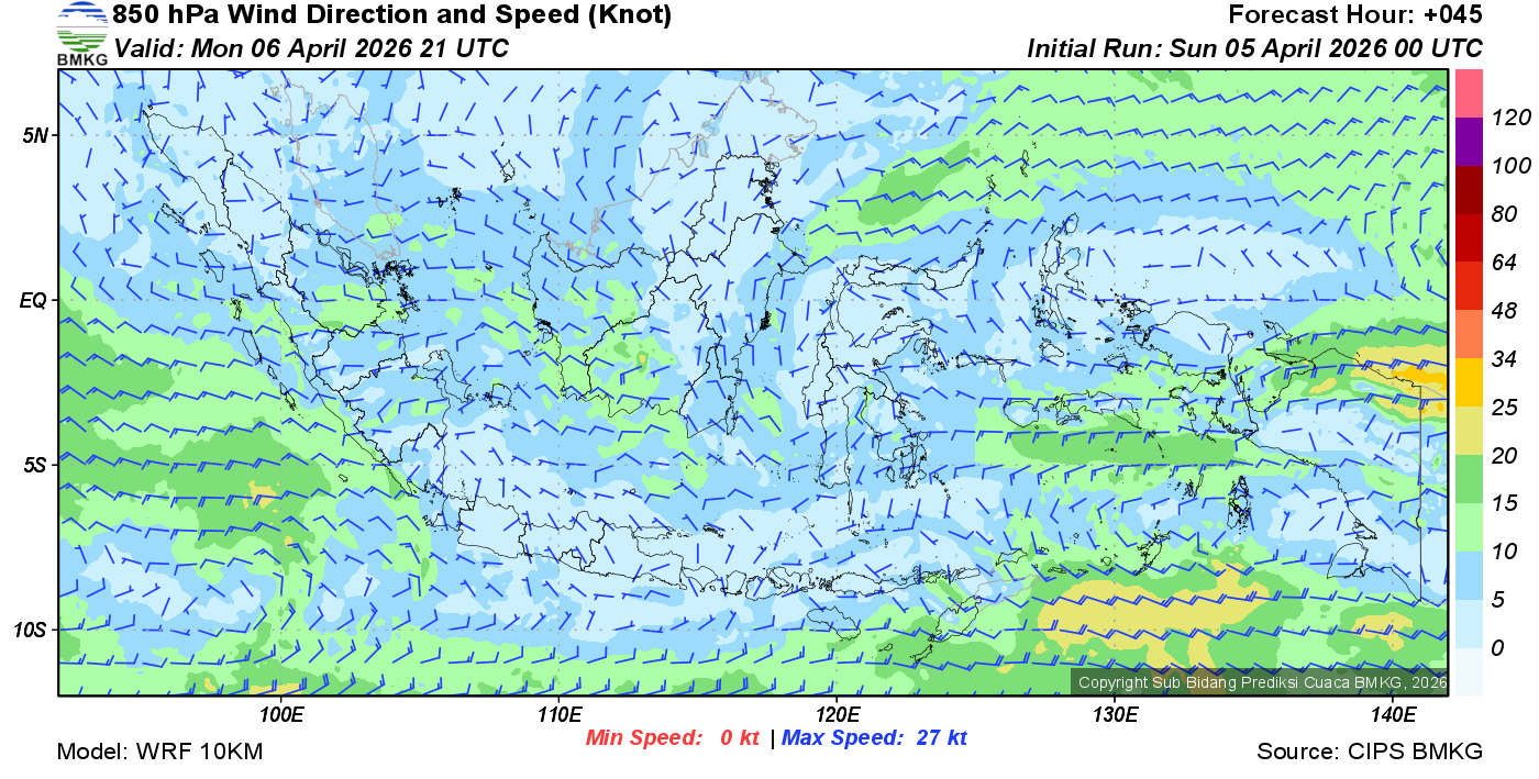 Prakiraan Angin Lapisan 850 Gunung Awu