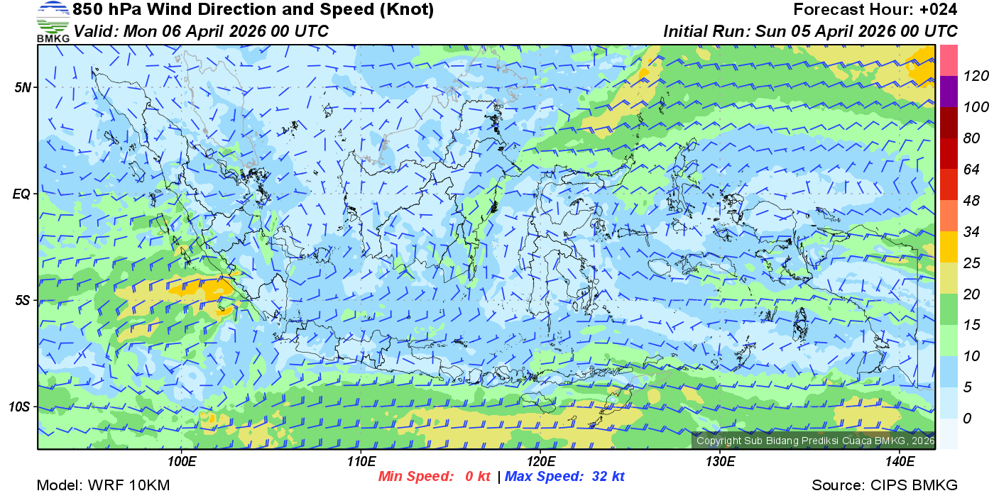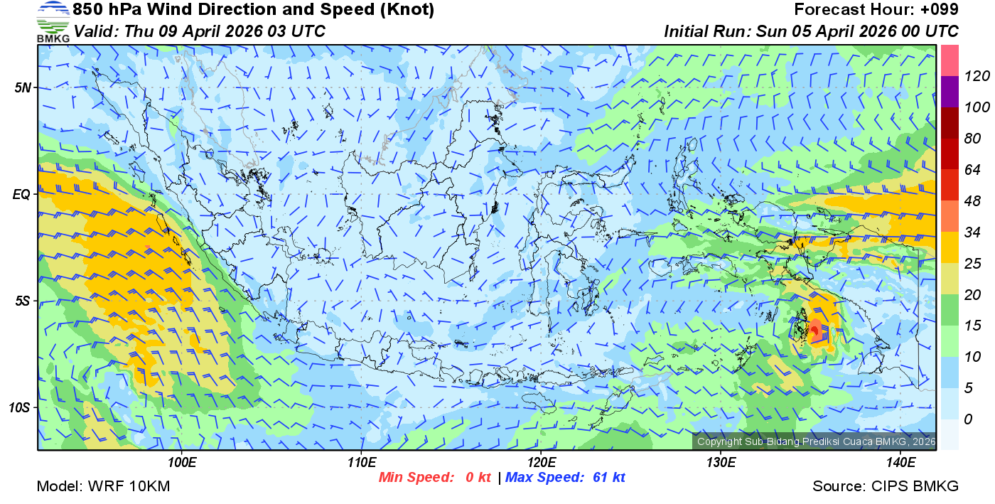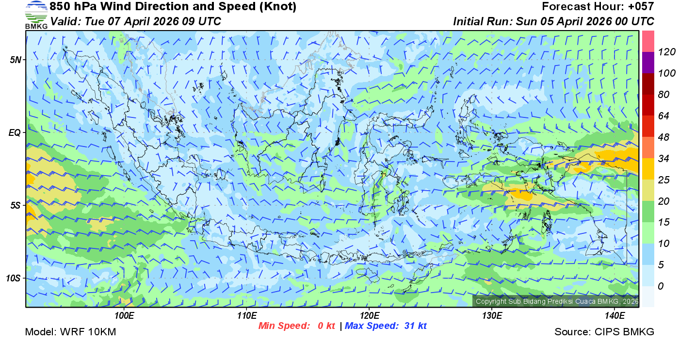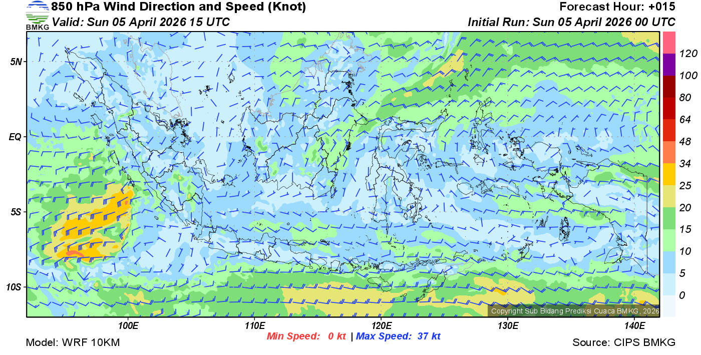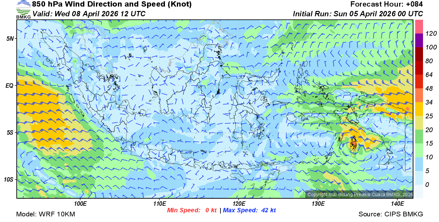 Prakiraan Angin Lapisan 850 Gunung Awu