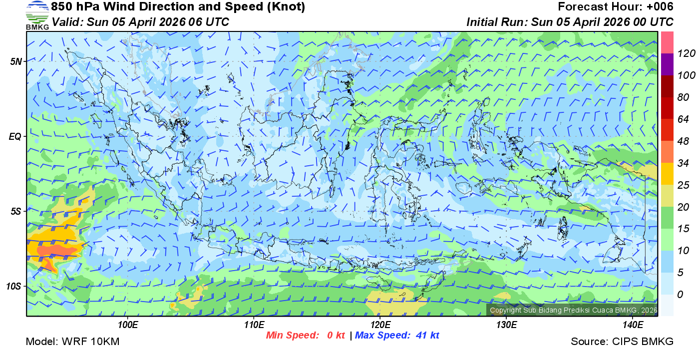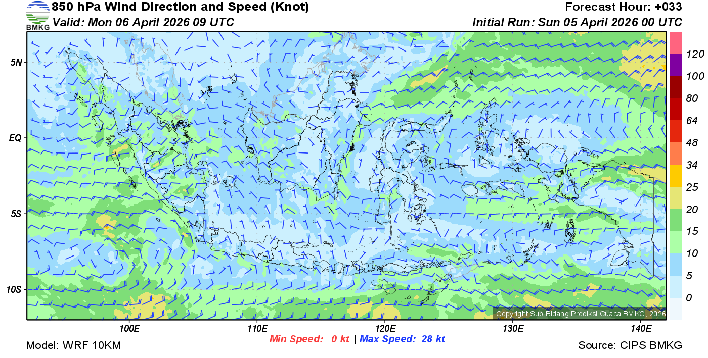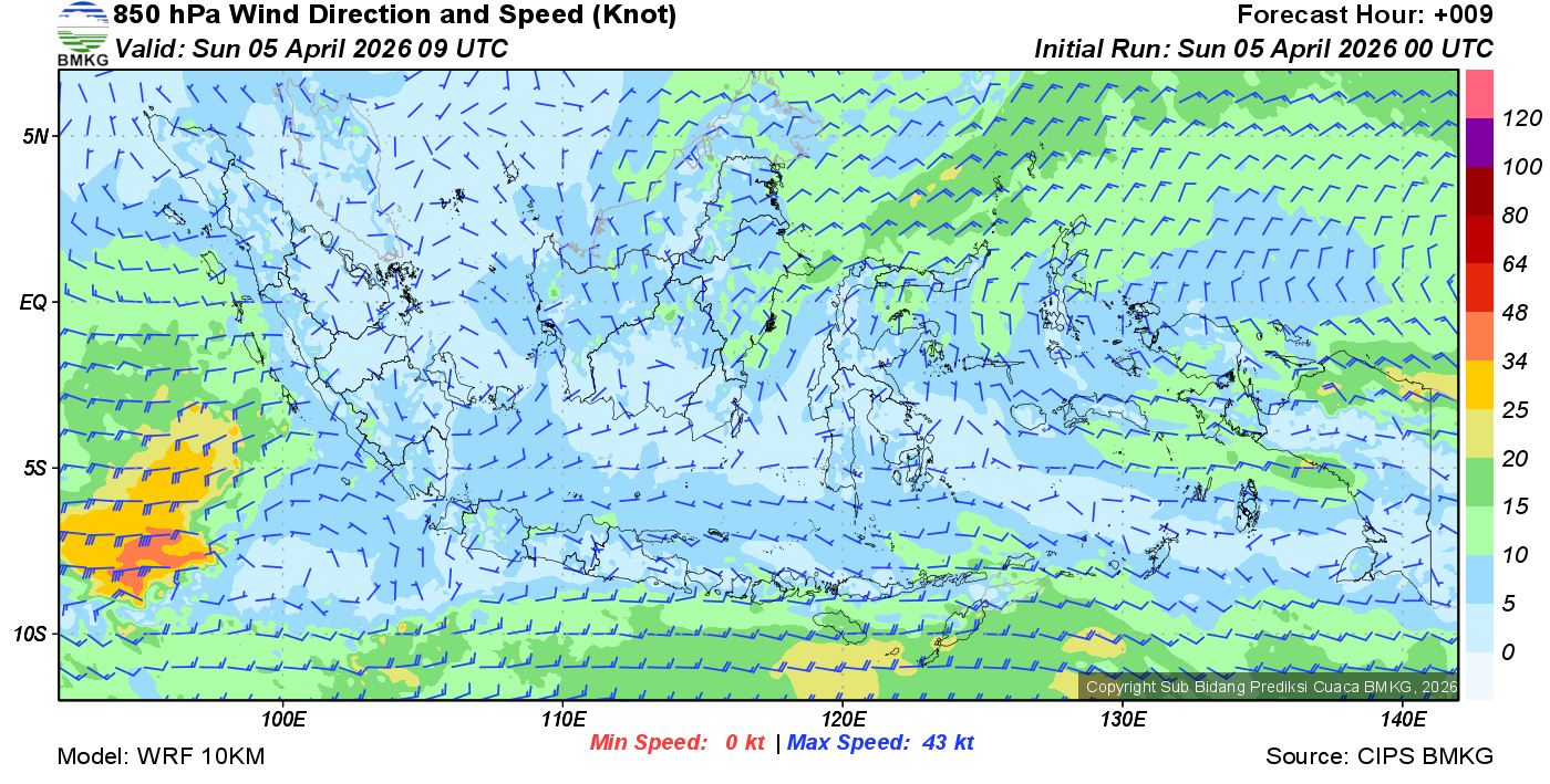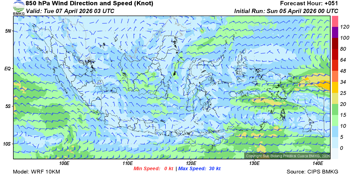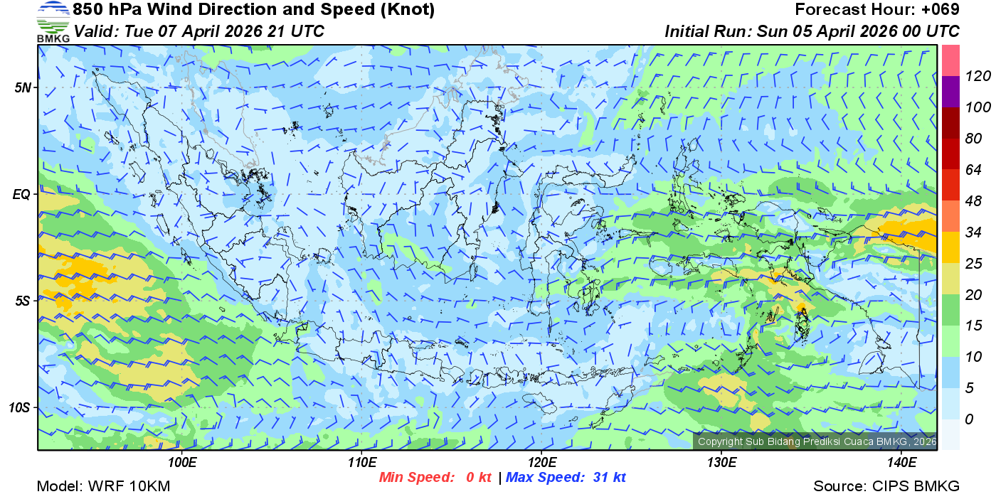 Prakiraan Angin Lapisan 850 Gunung Awu