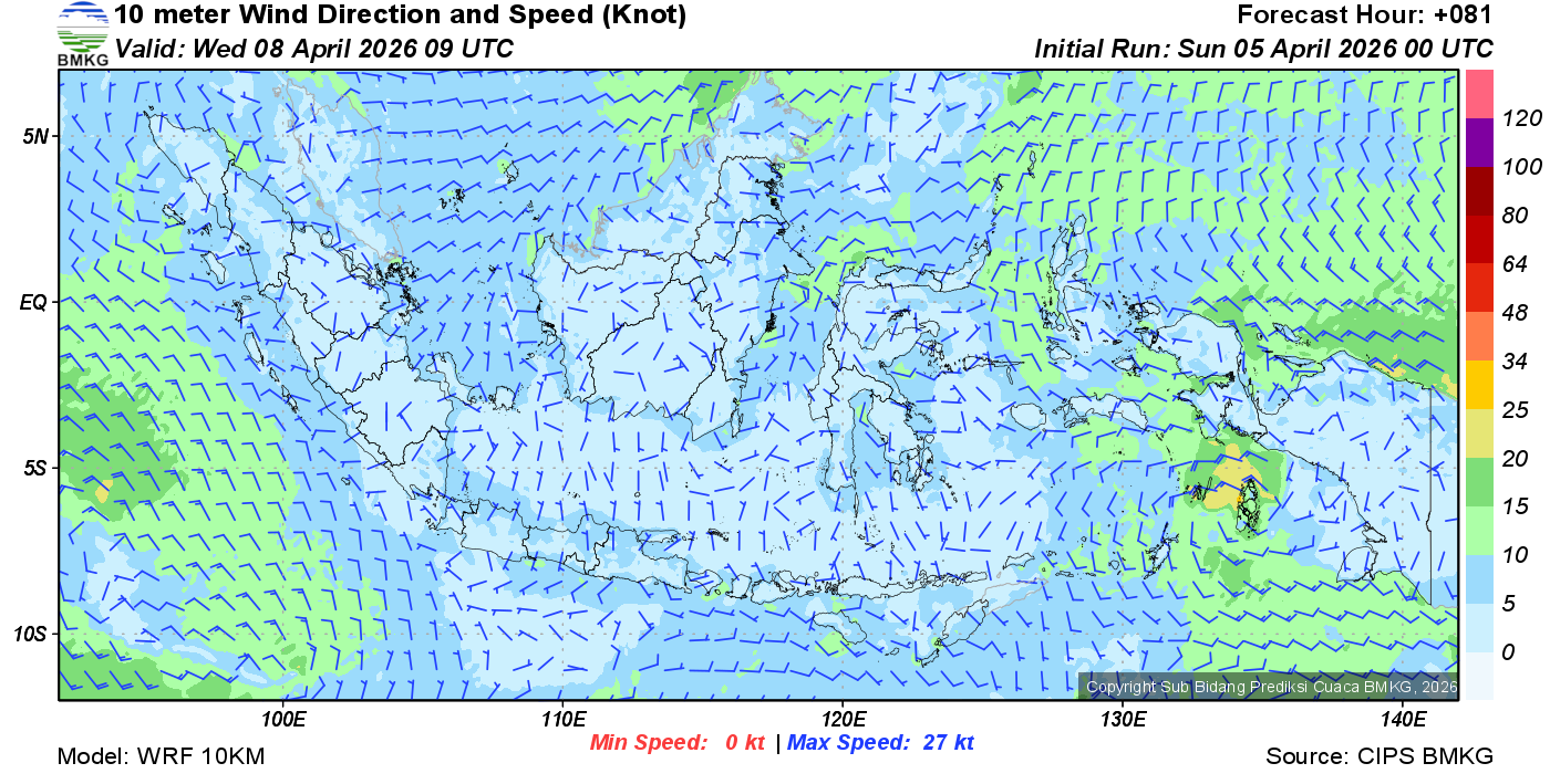 Prakiraan Angin Lapisan 10m Gunung Awu