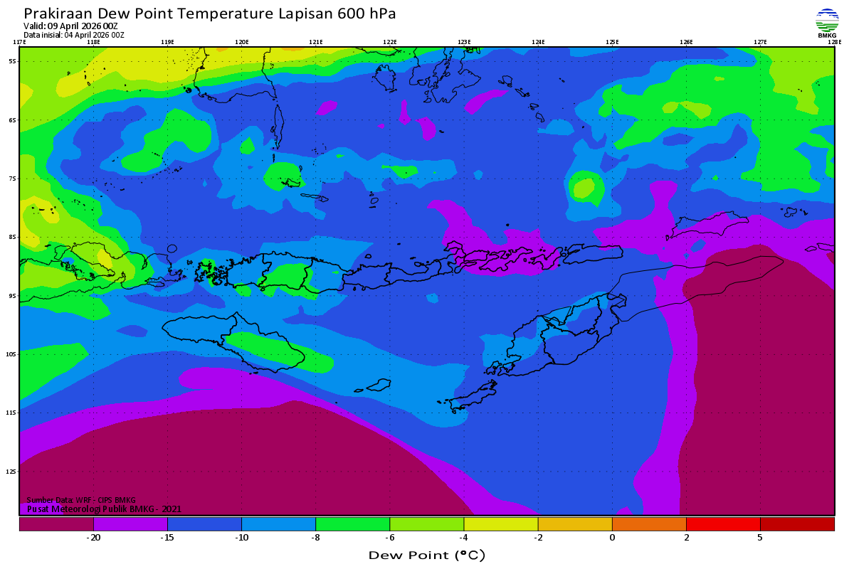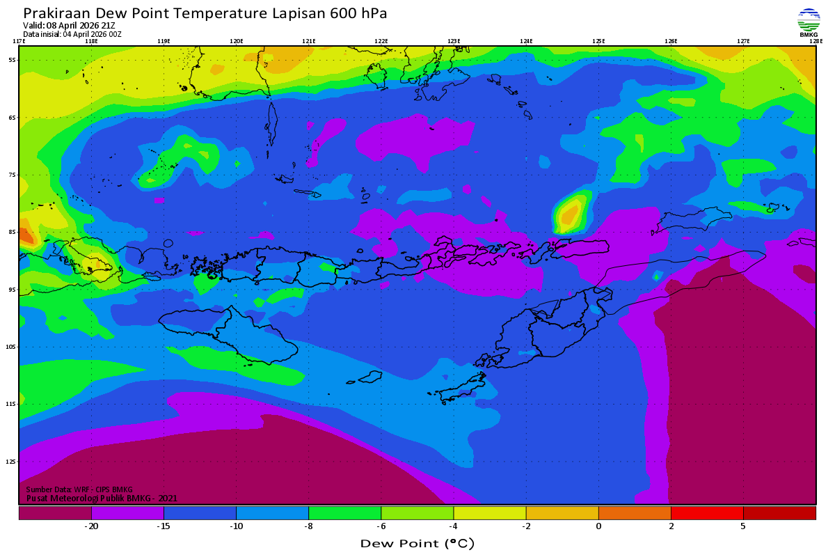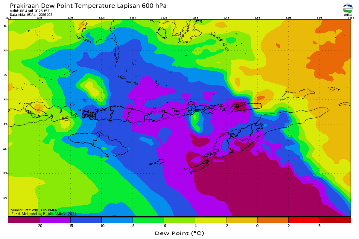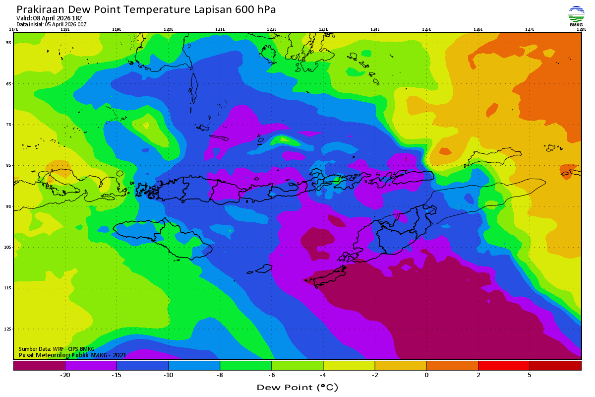 Prediksi Suhu Titik Embun 600 hPa NTT
