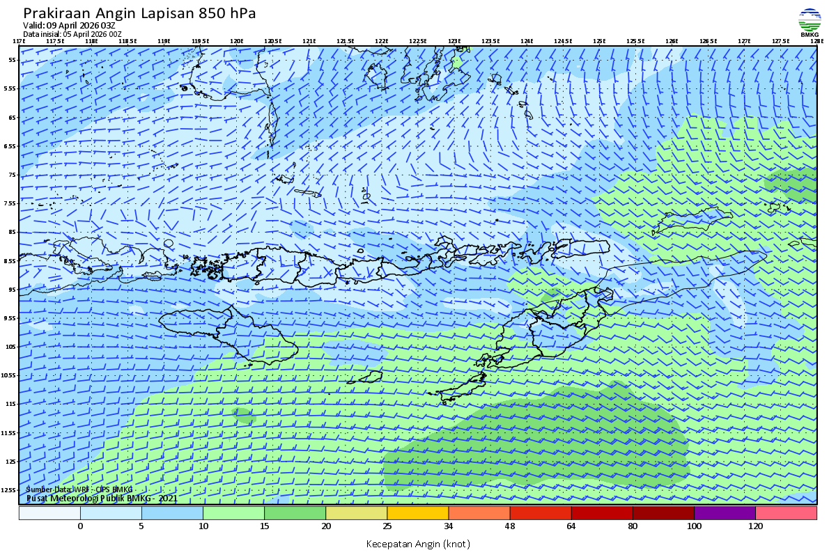 Prakiraan Angin Lapisan 850 Gunung Awu