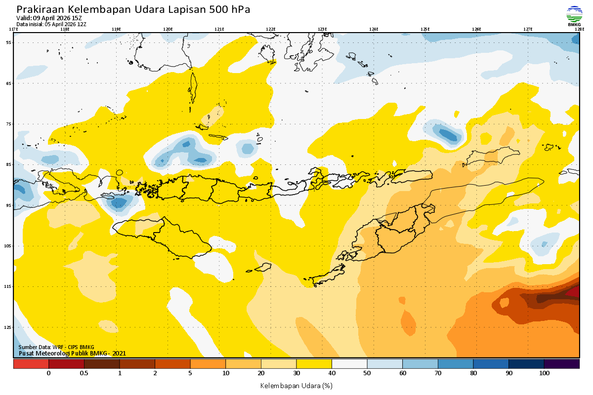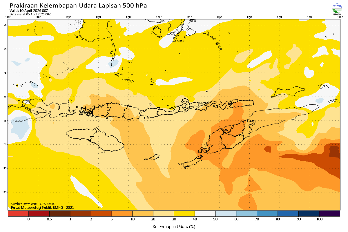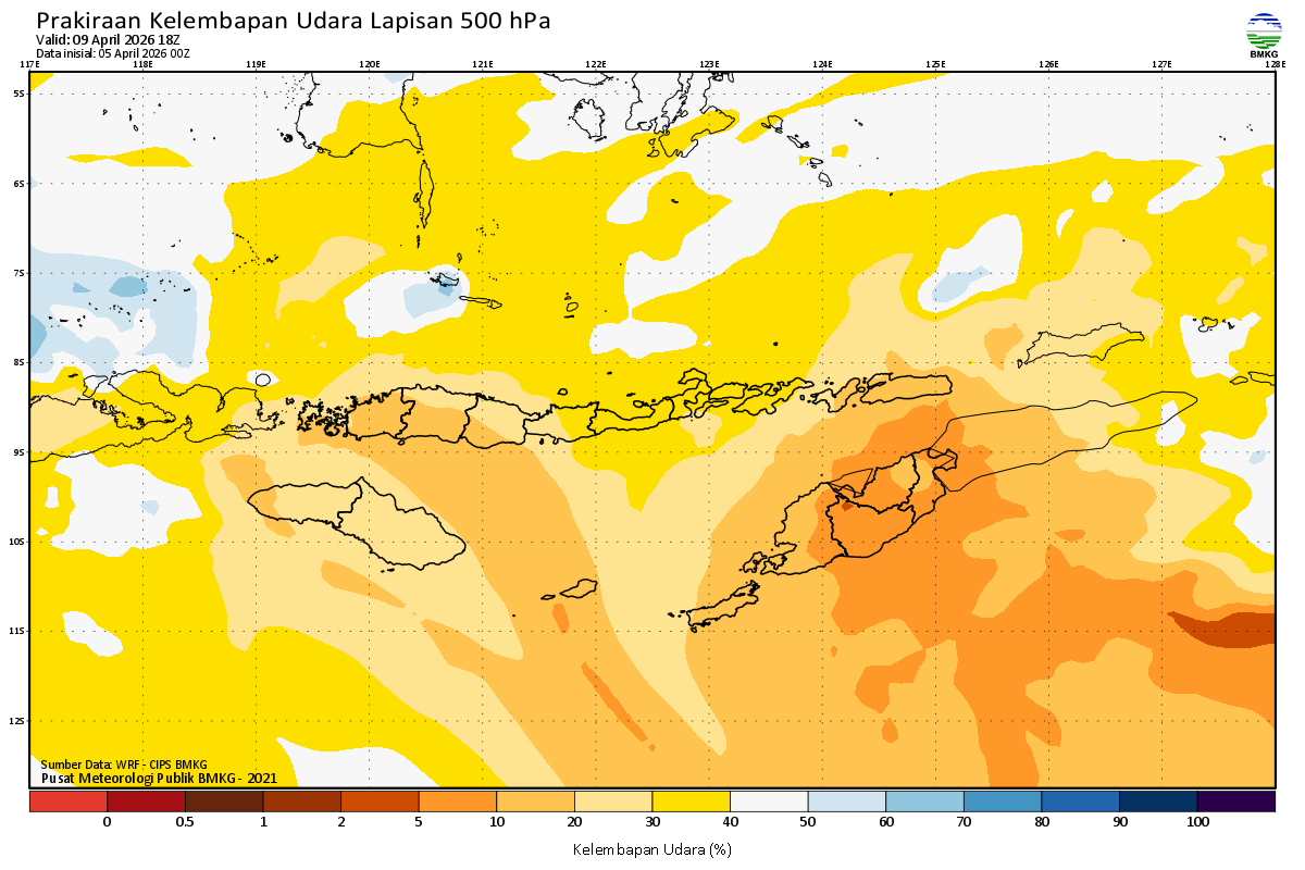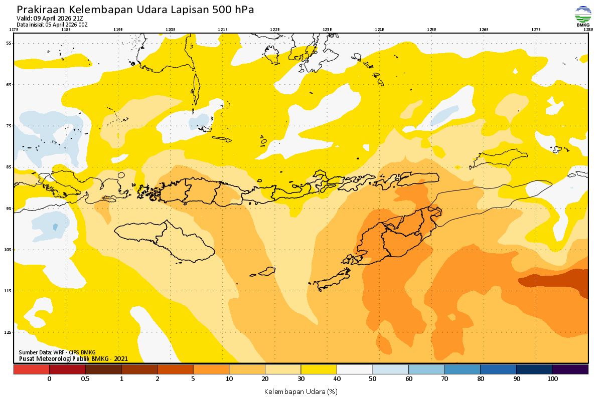 Prediksi Kelembapan 500 hPa NTT