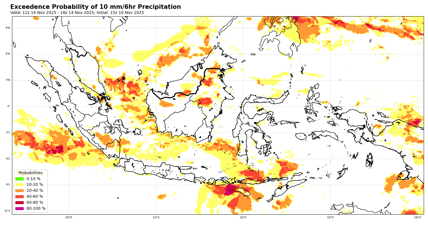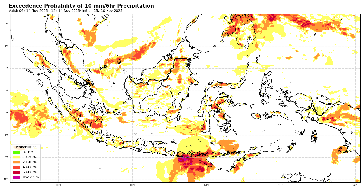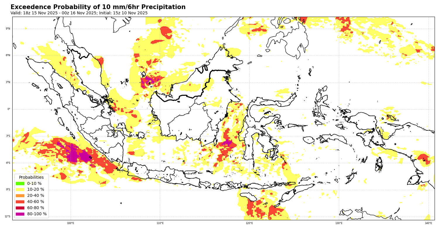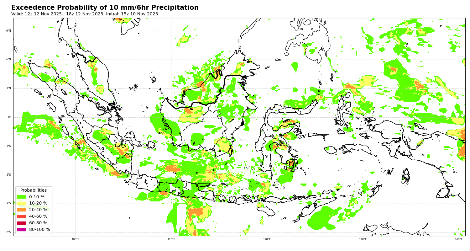 Multi-Model Ensemble Precipitation Probability 10 mm 6 hourly