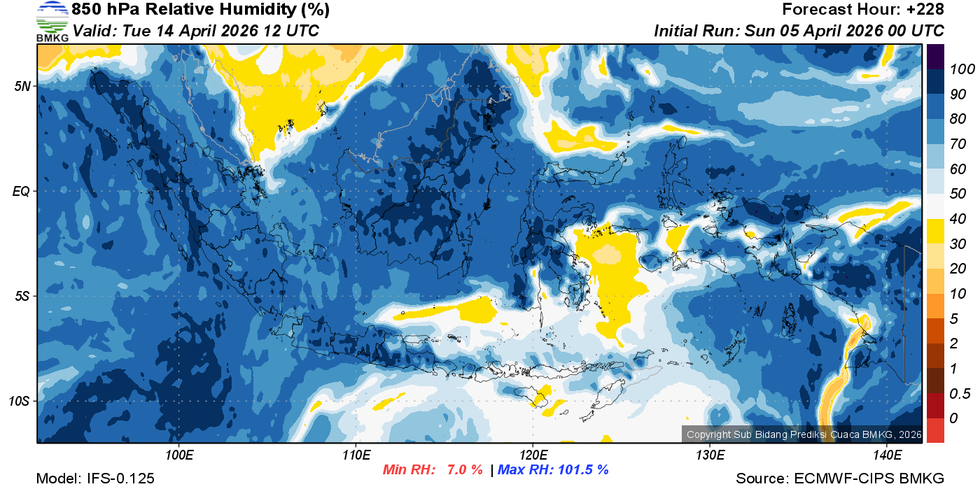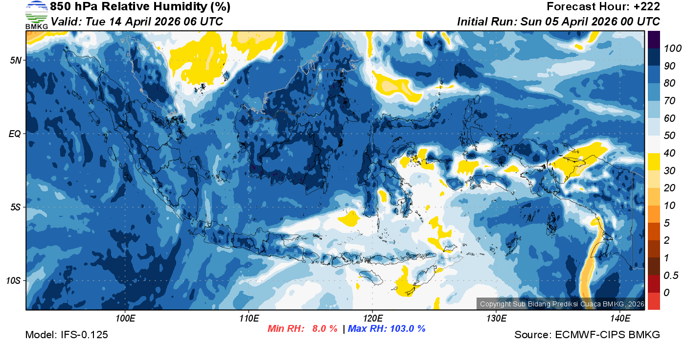 Prediksi Kelembapan 850 hPa NTT