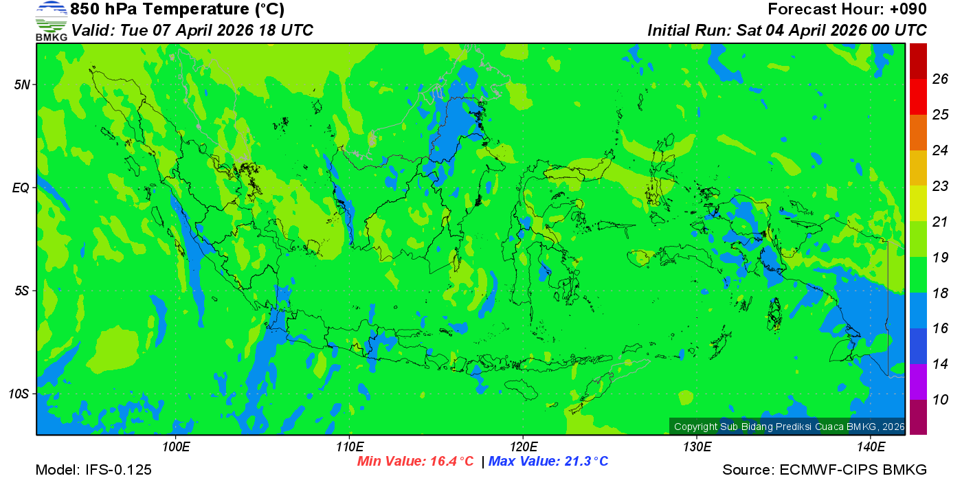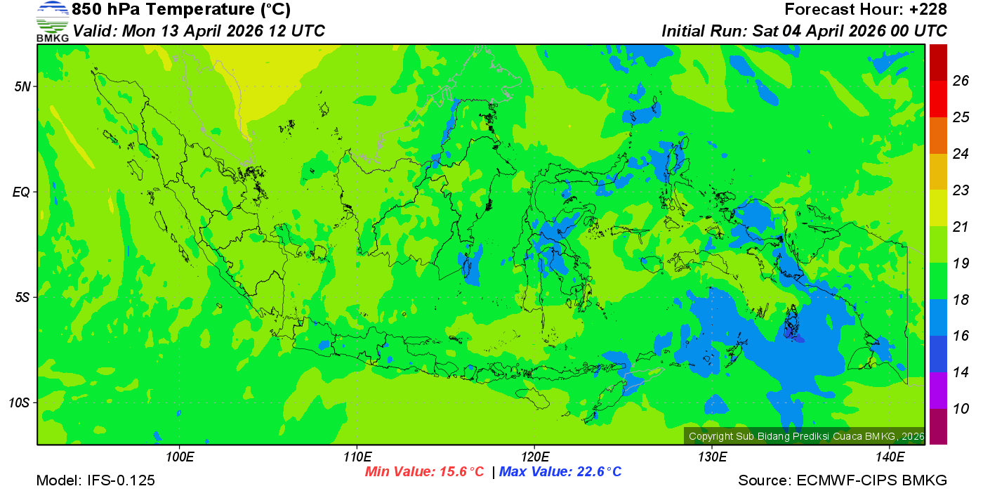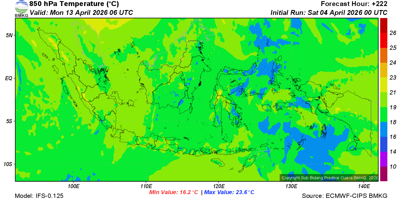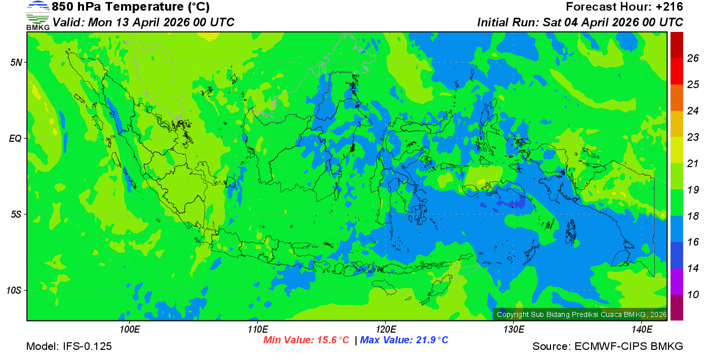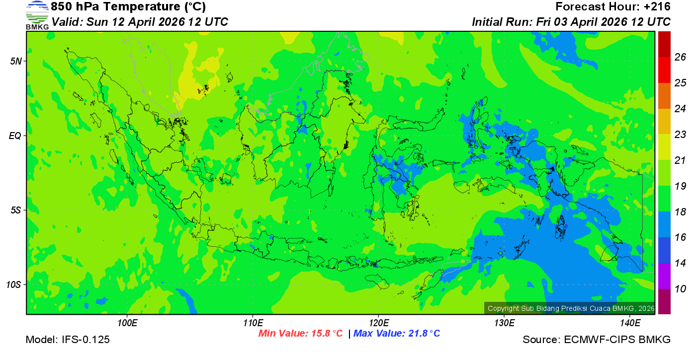 Prediksi Suhu Titik Embun 850 hPa NTT