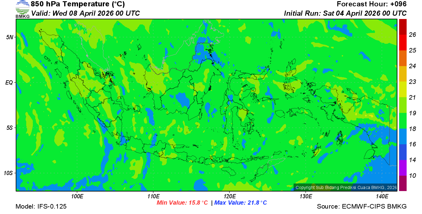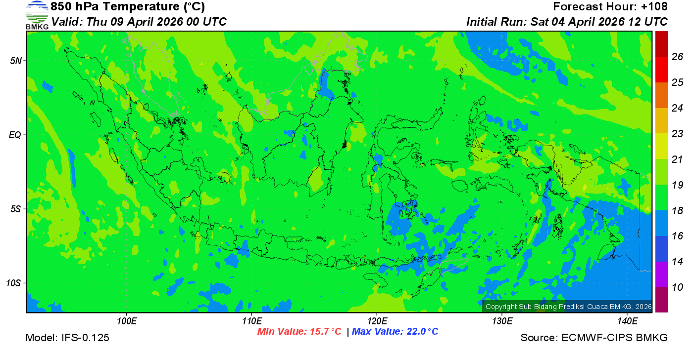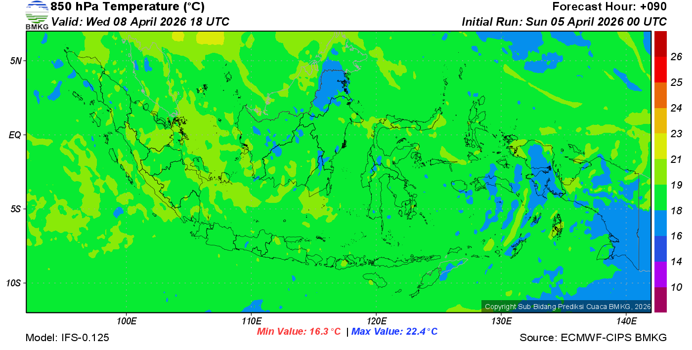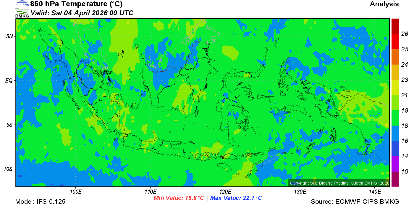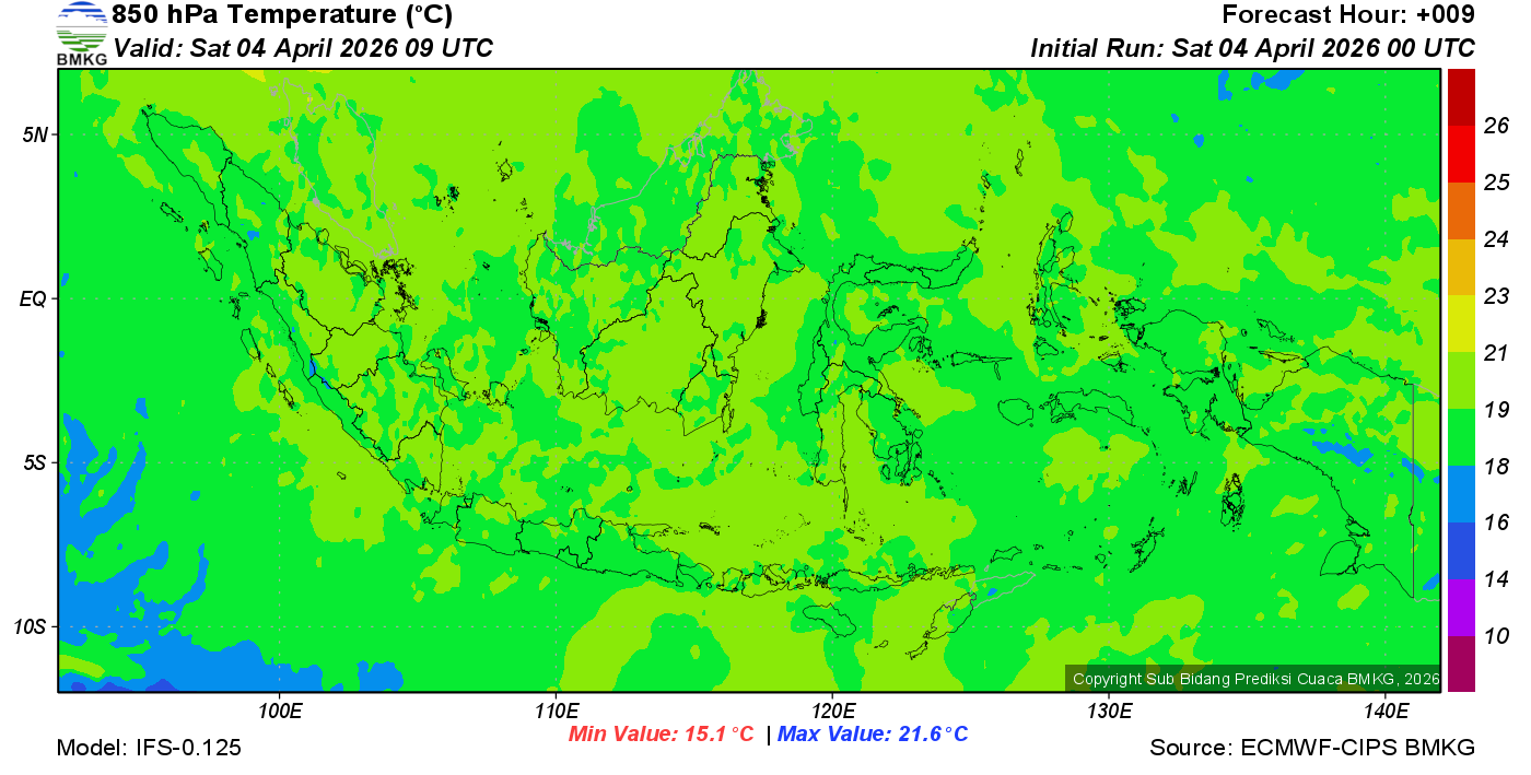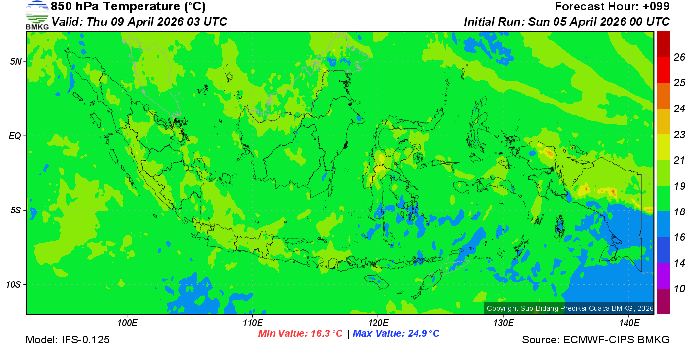 Prediksi Suhu Titik Embun 850 hPa NTT