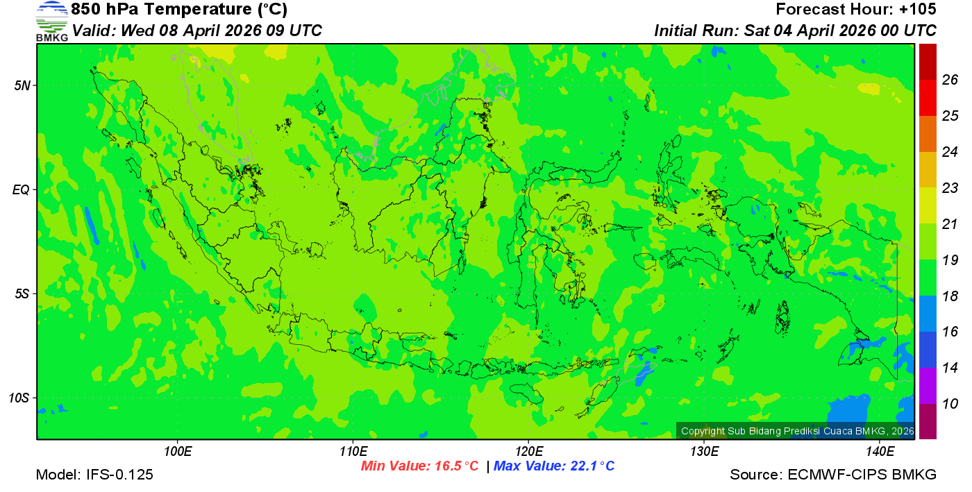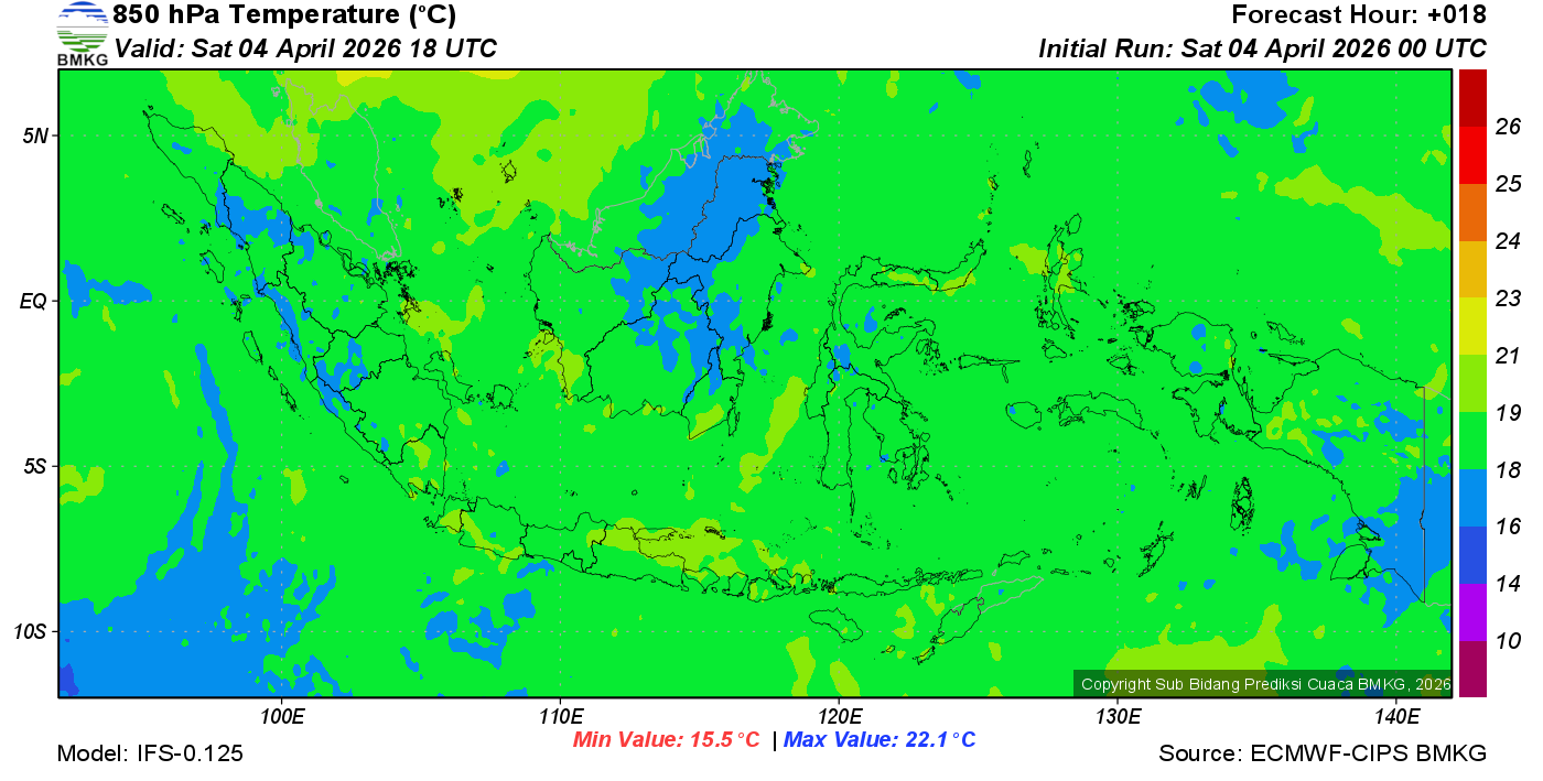Prakiraan Angin Lapisan 850 Gunung Awu