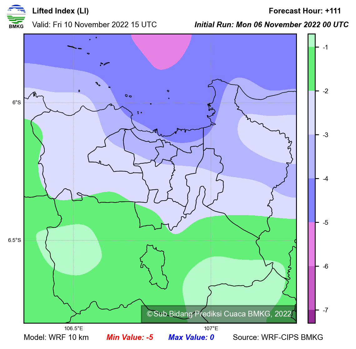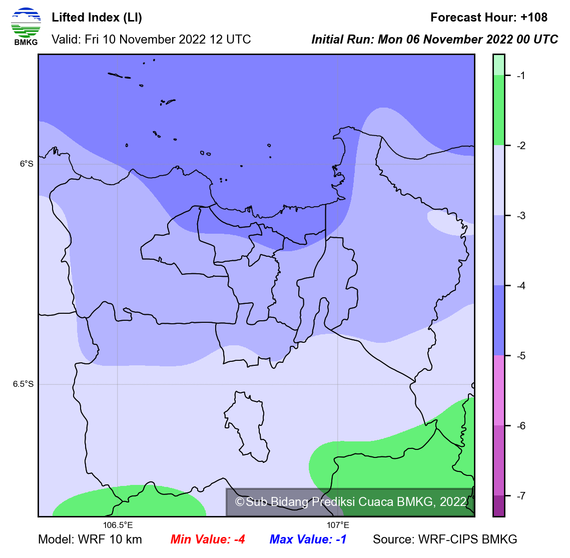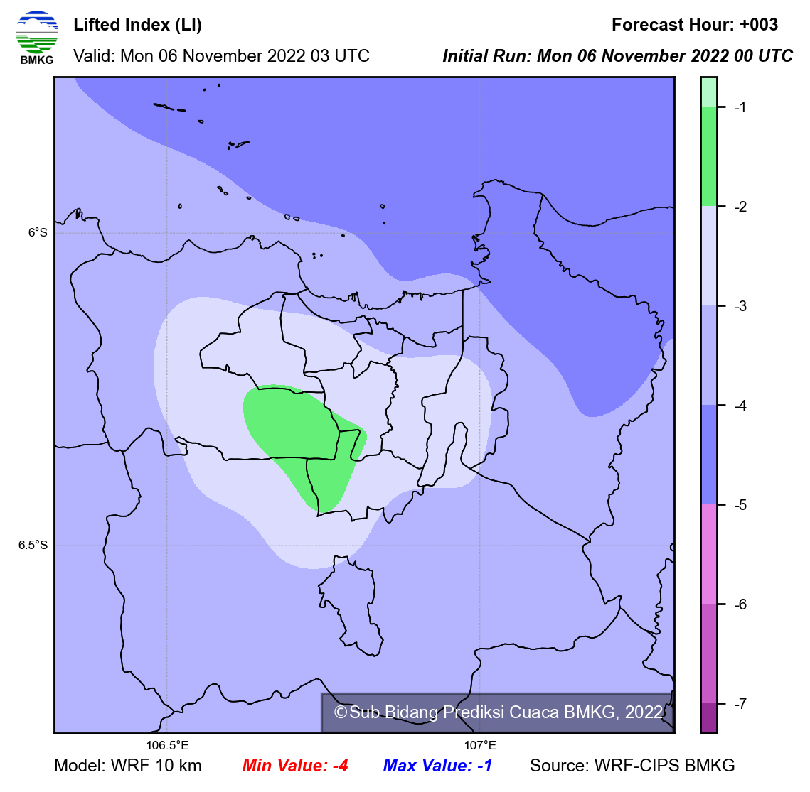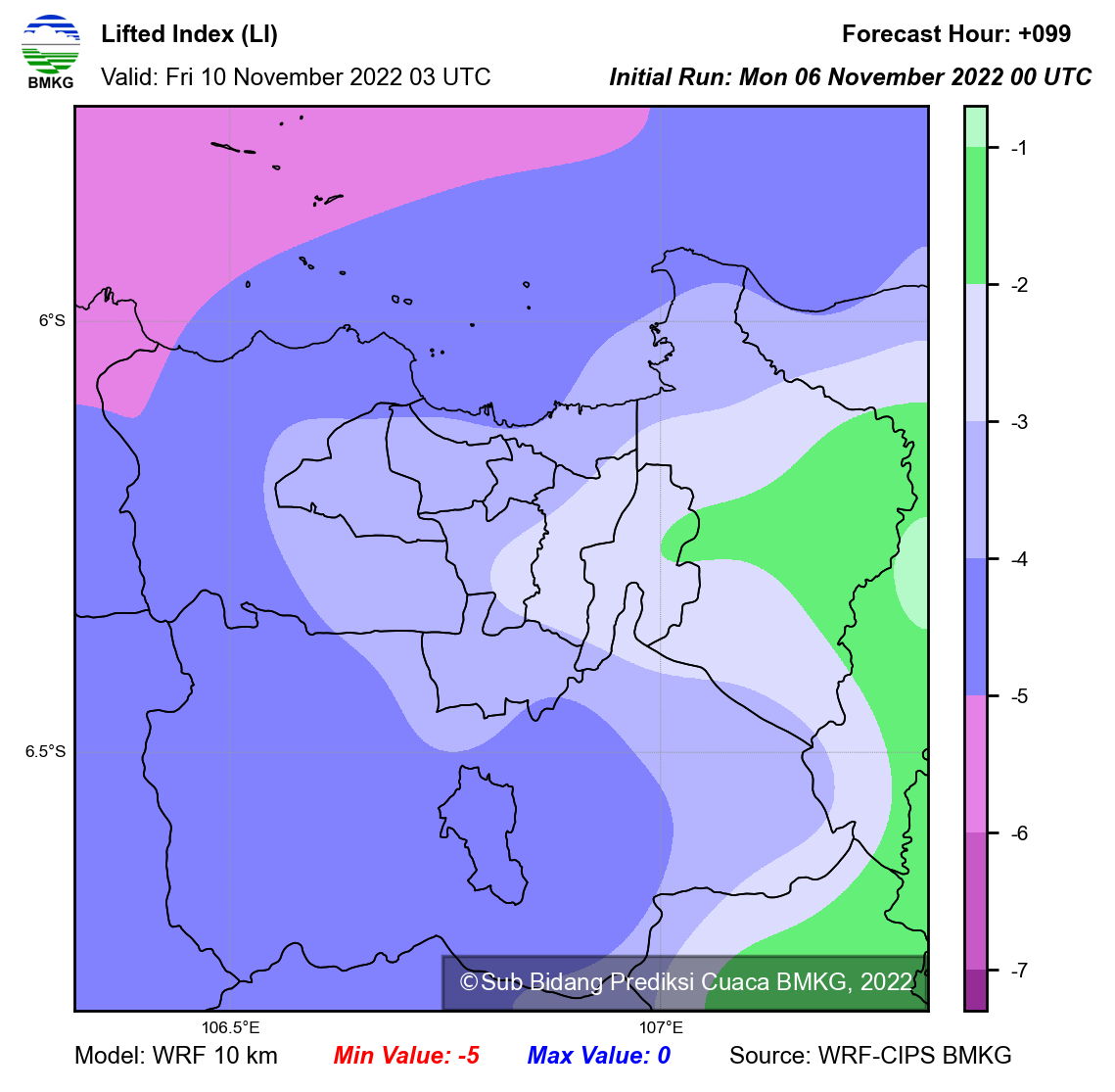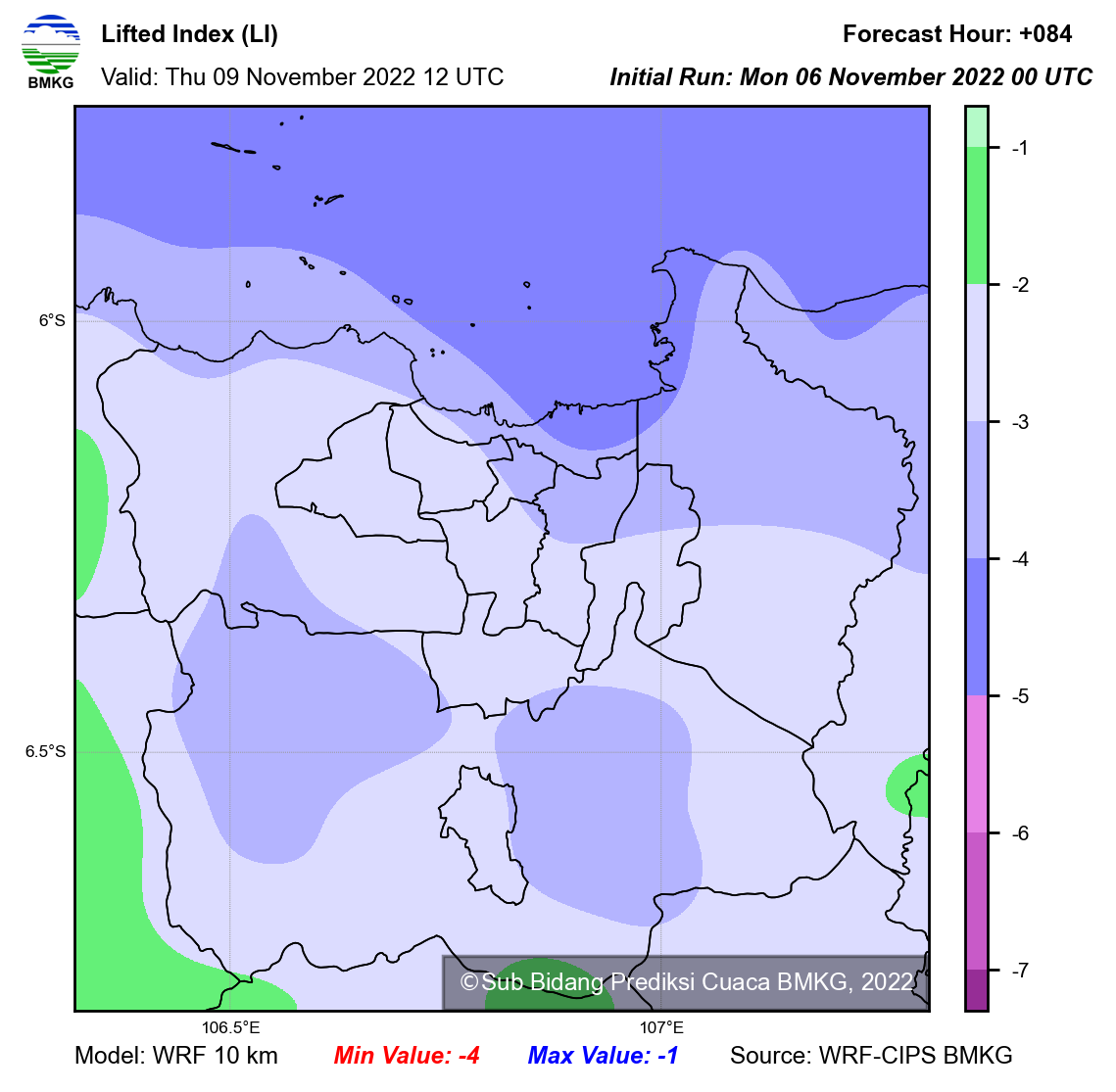 WRF Lifted Index Forecast Jabodetabek
