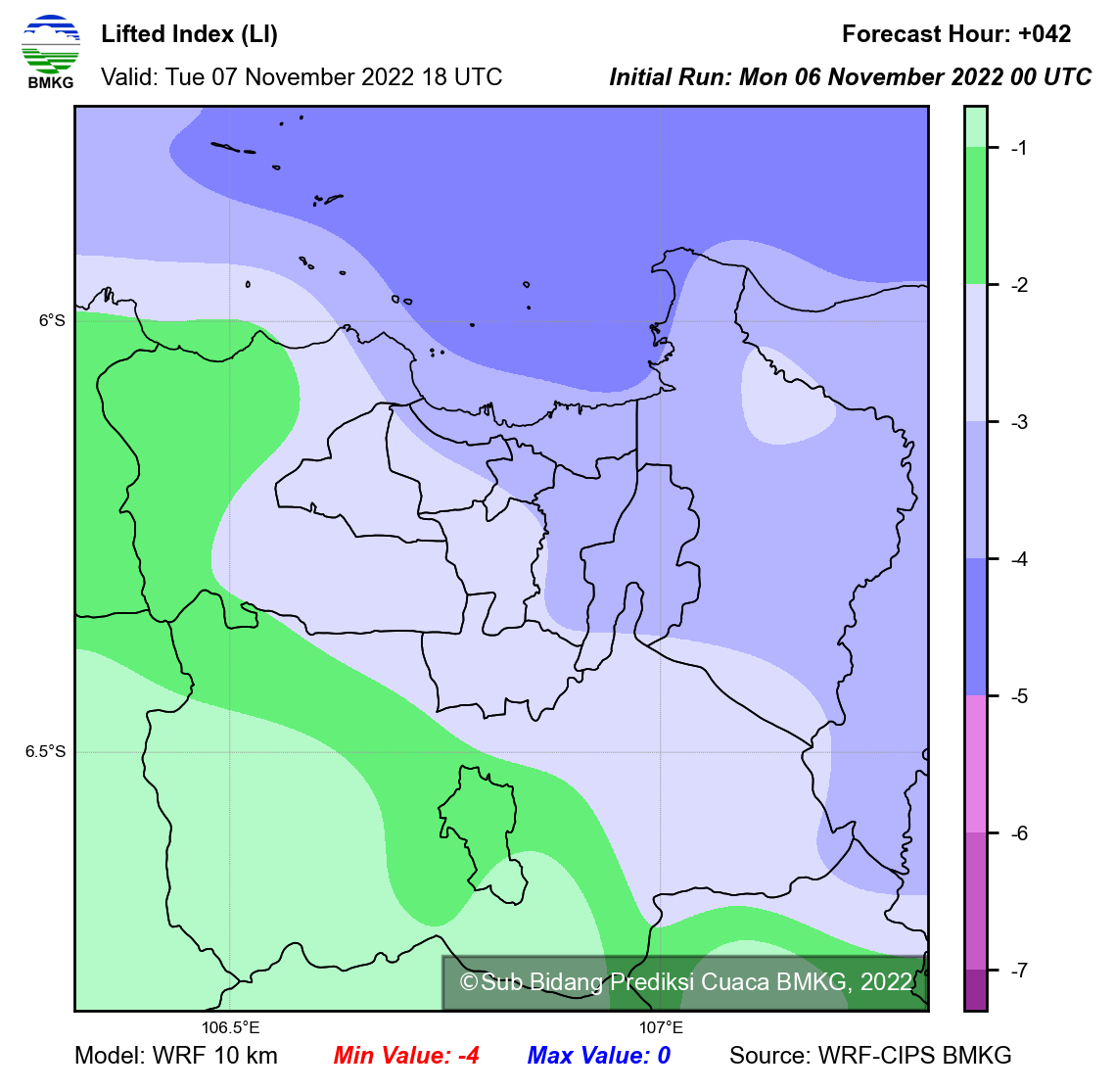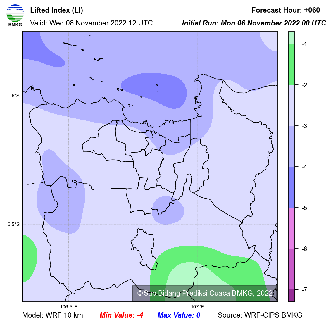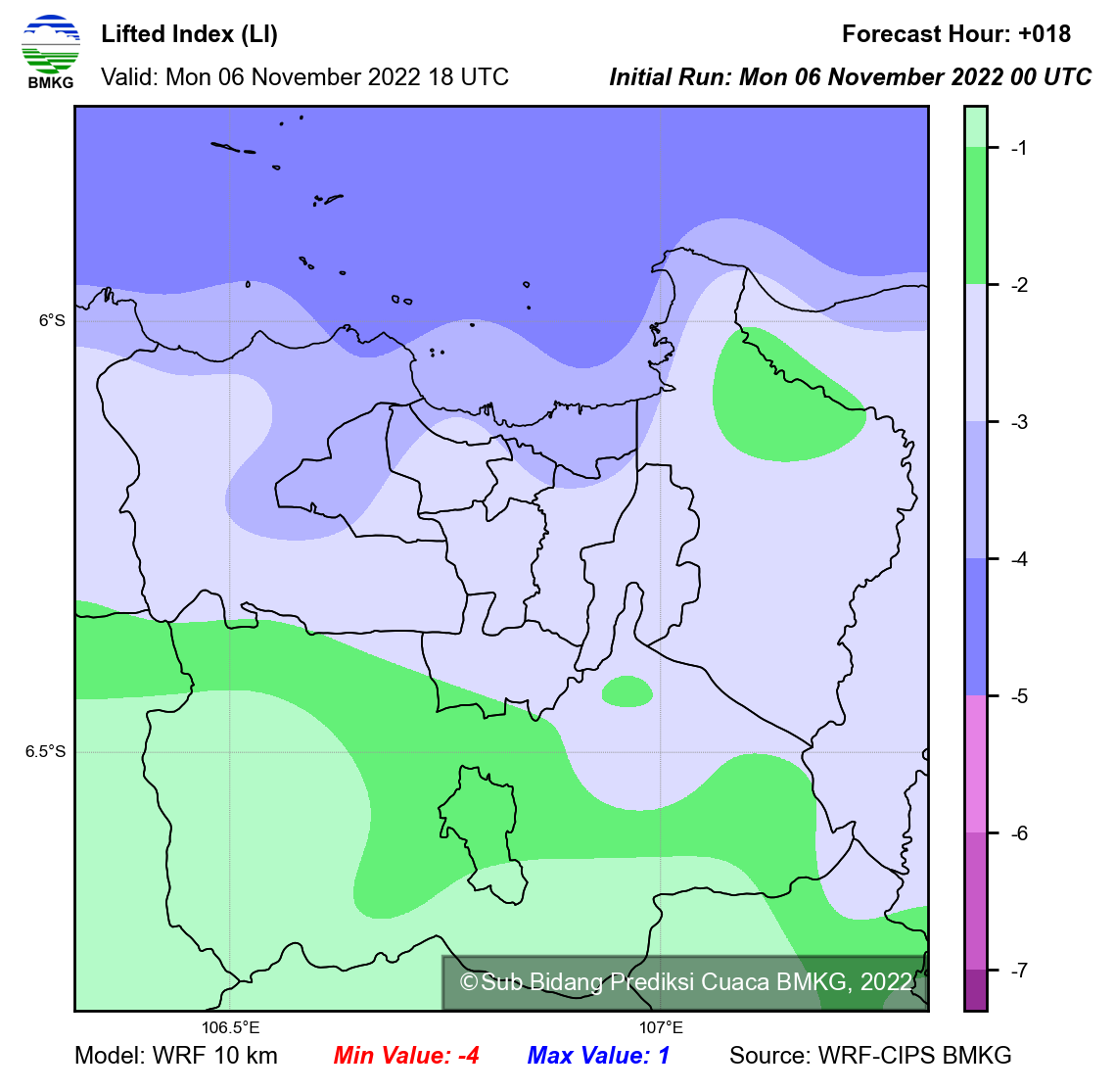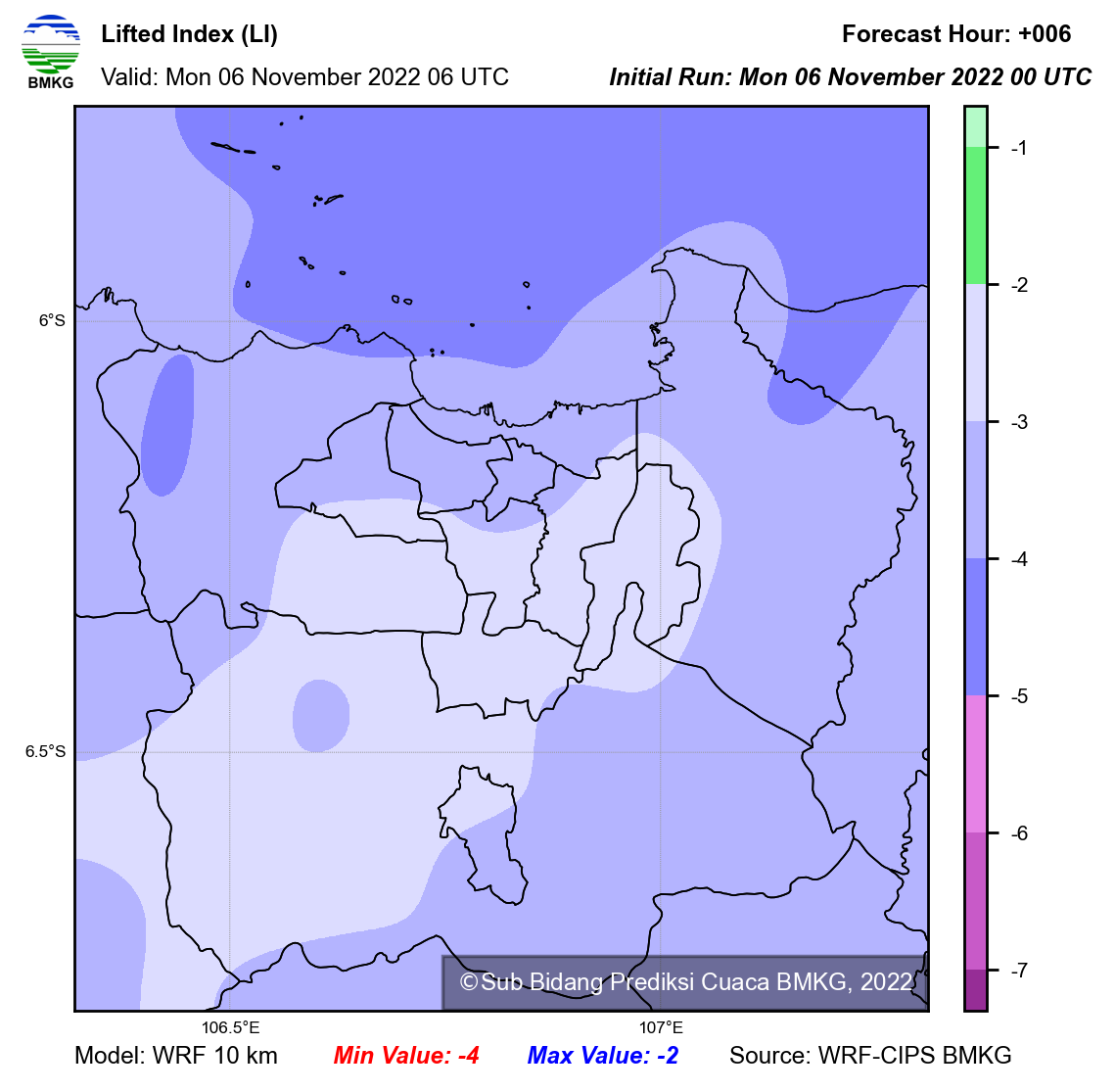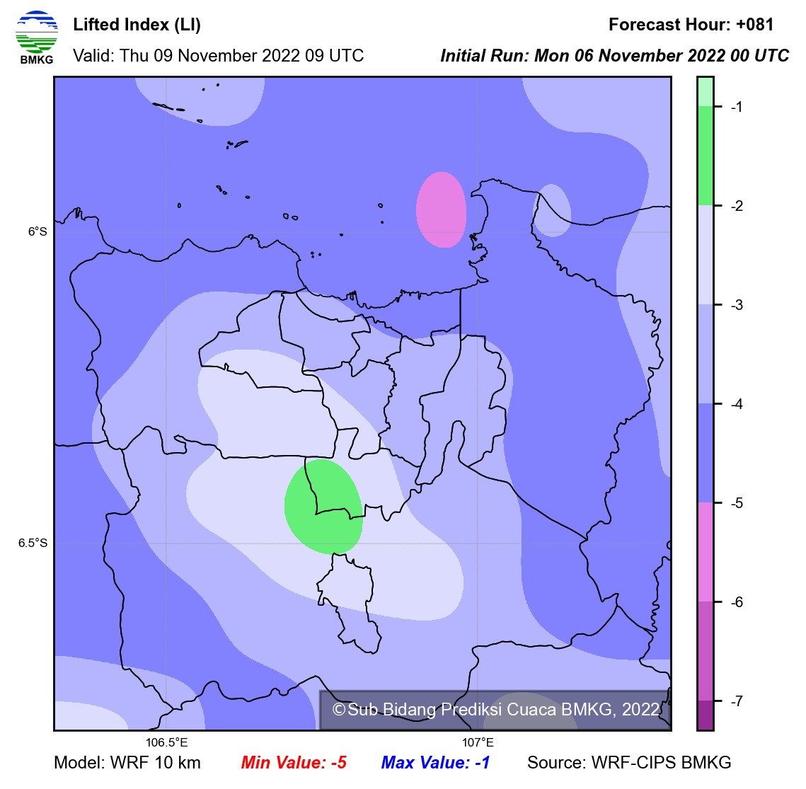WRF Lifted Index Forecast Jabodetabek