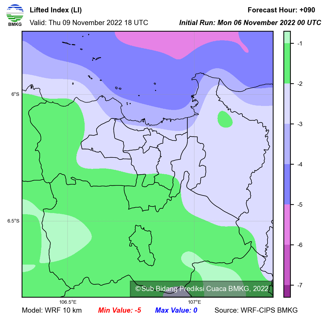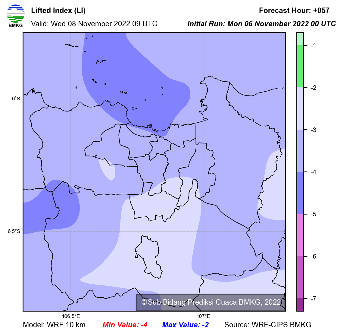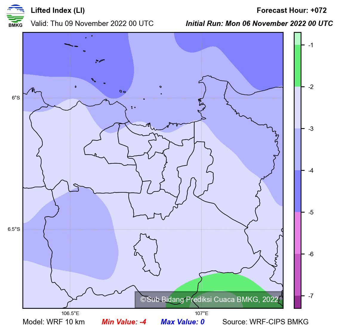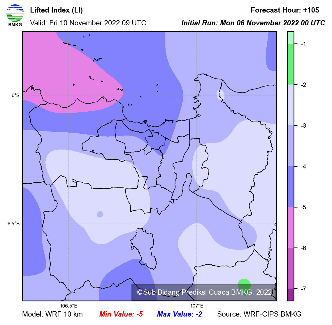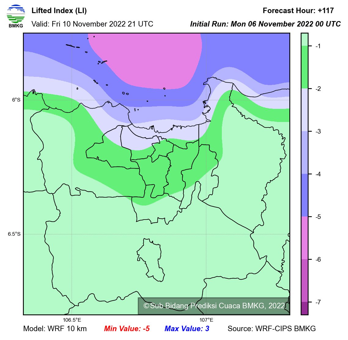 WRF Lifted Index Forecast Jabodetabek