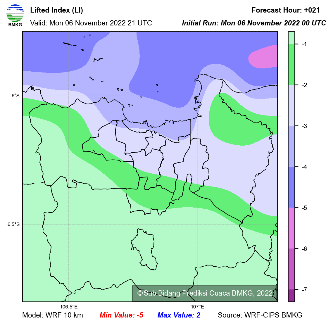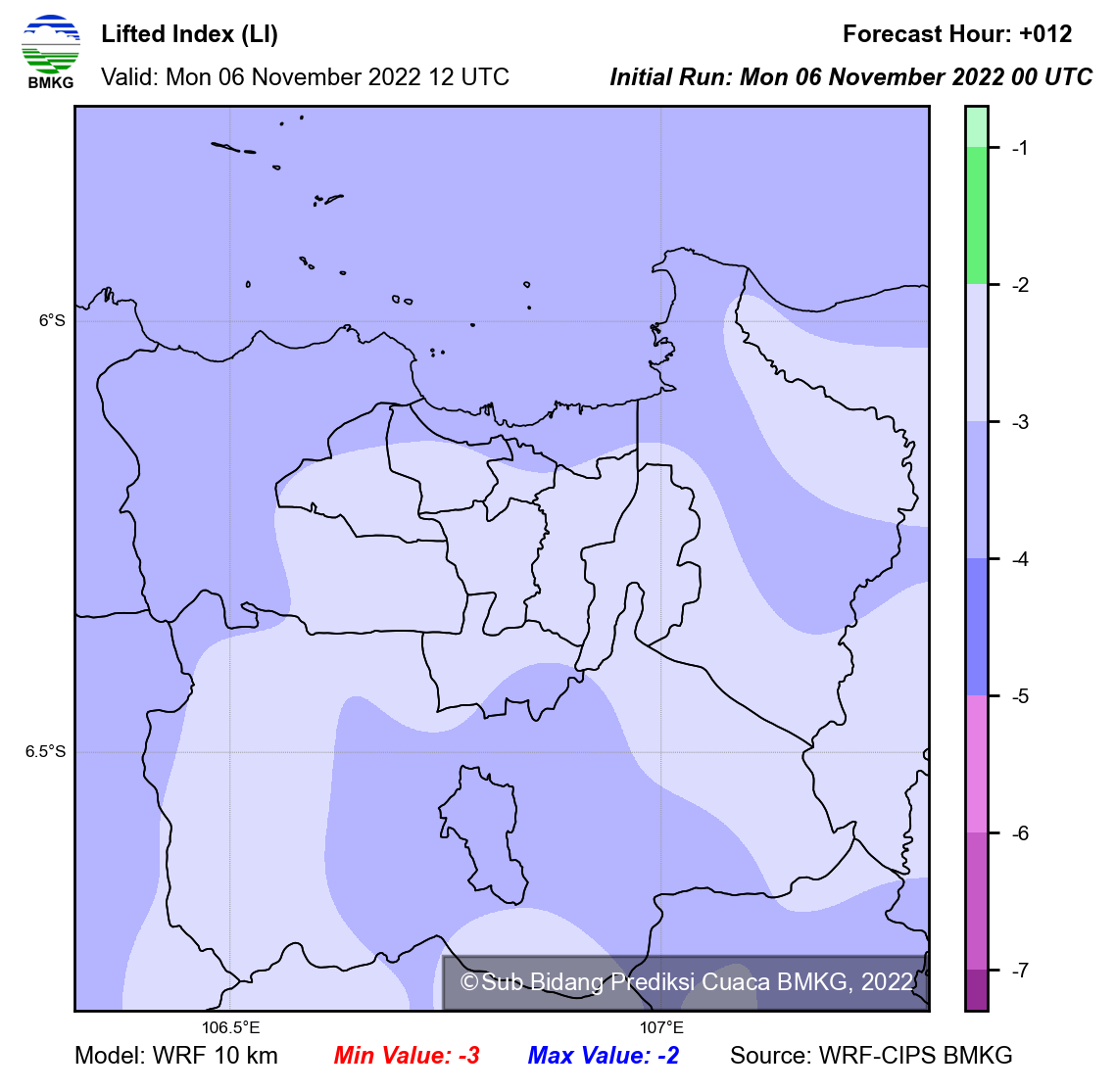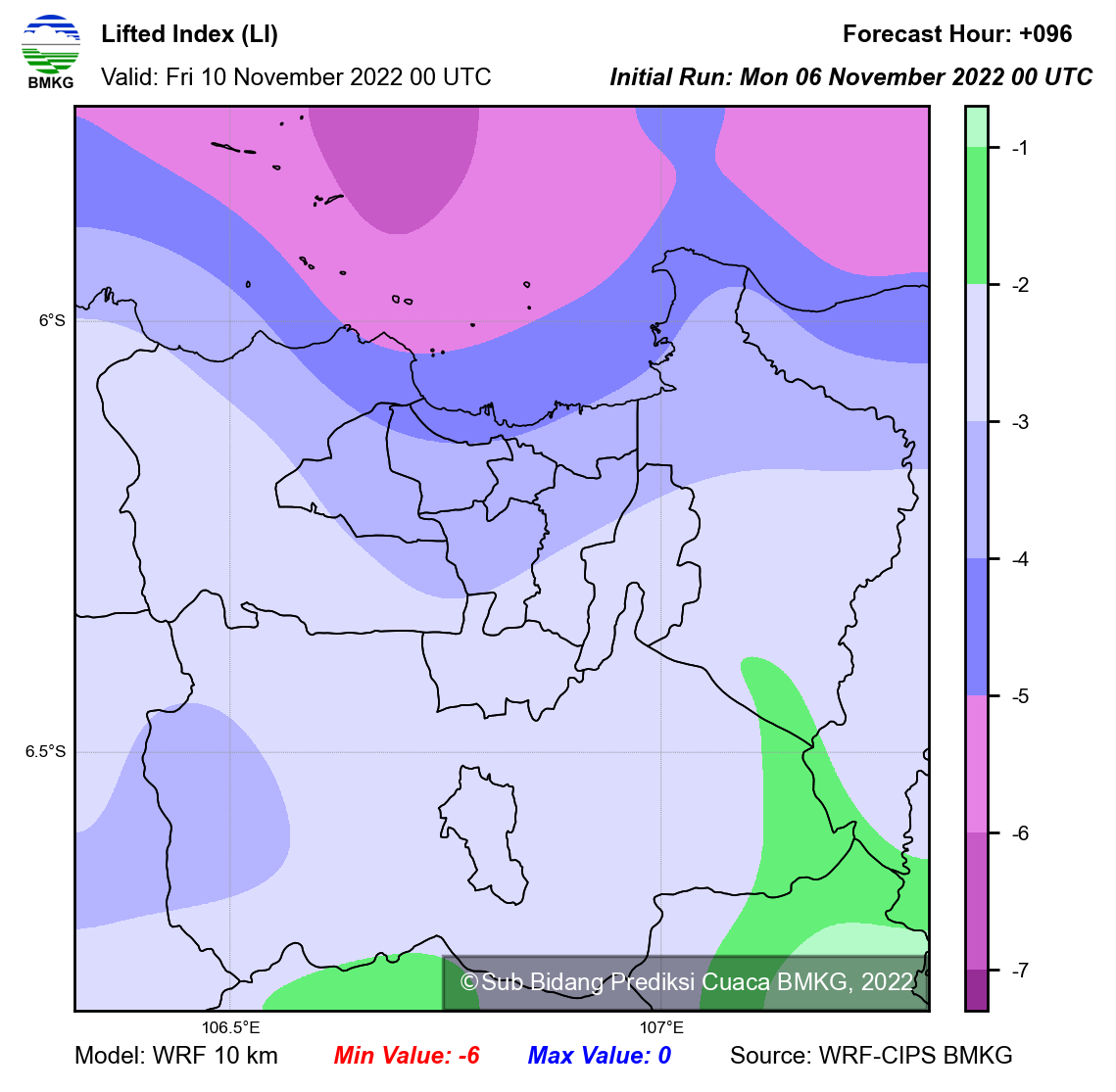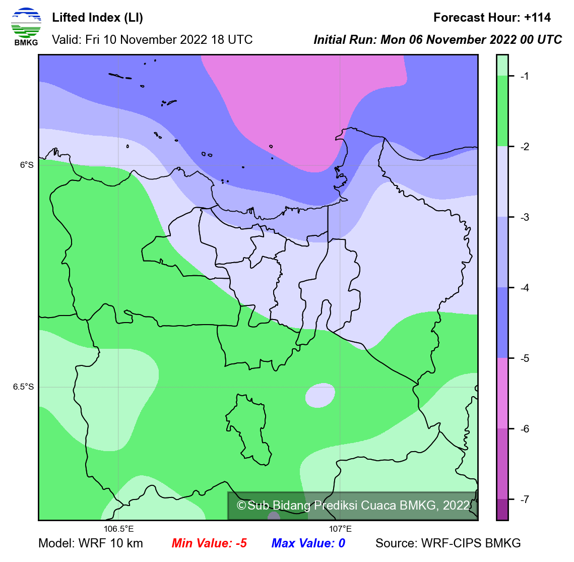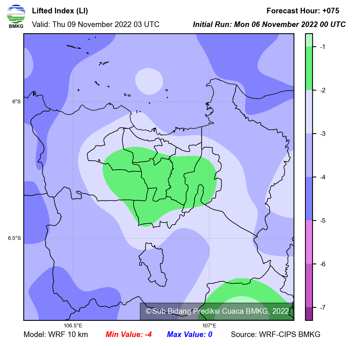 WRF Lifted Index Forecast Jabodetabek