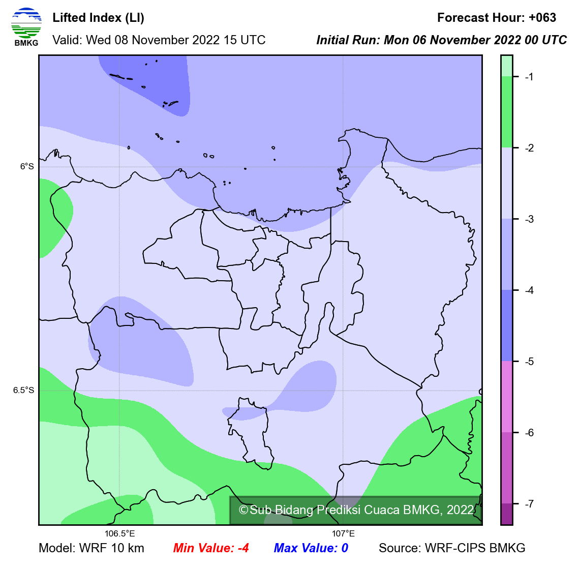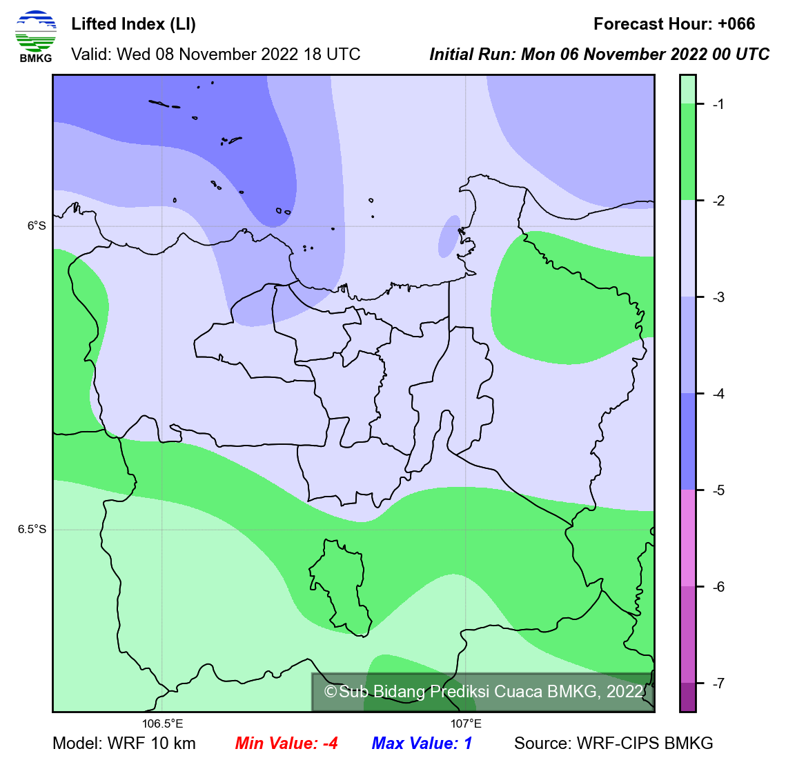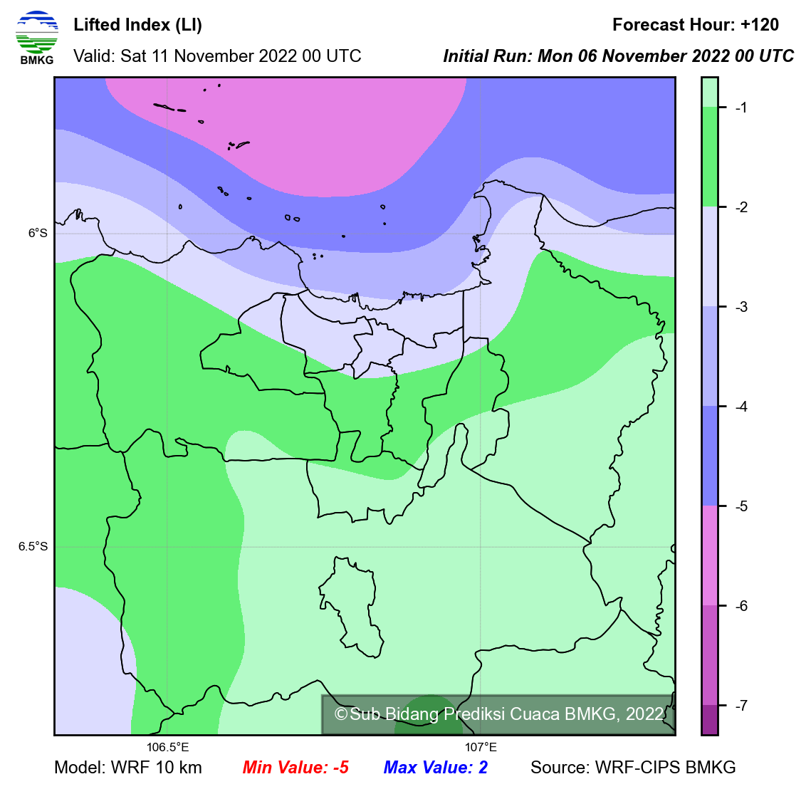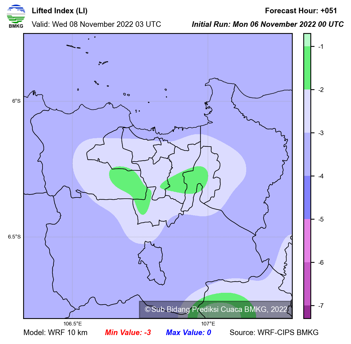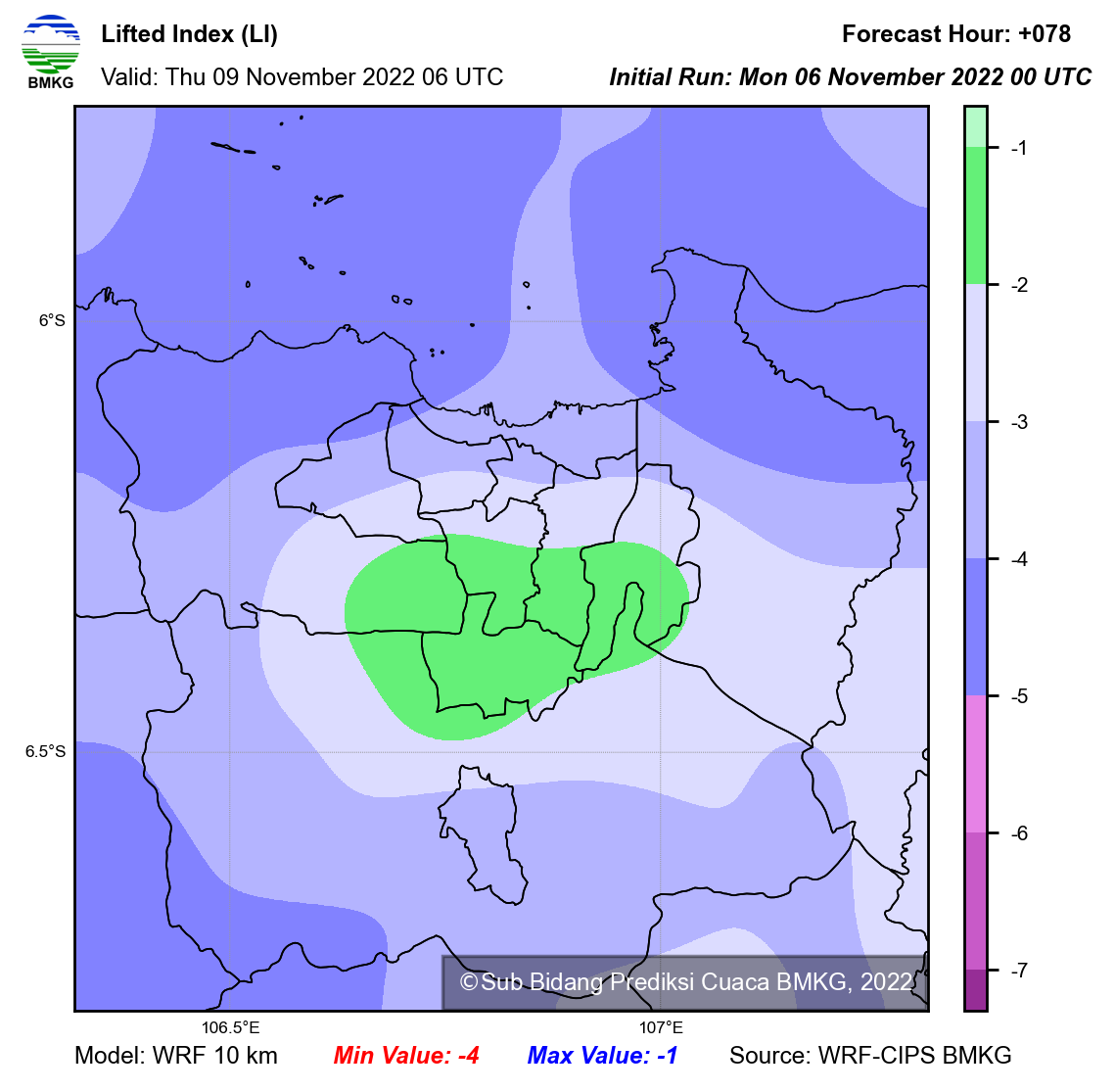 WRF Lifted Index Forecast Jabodetabek