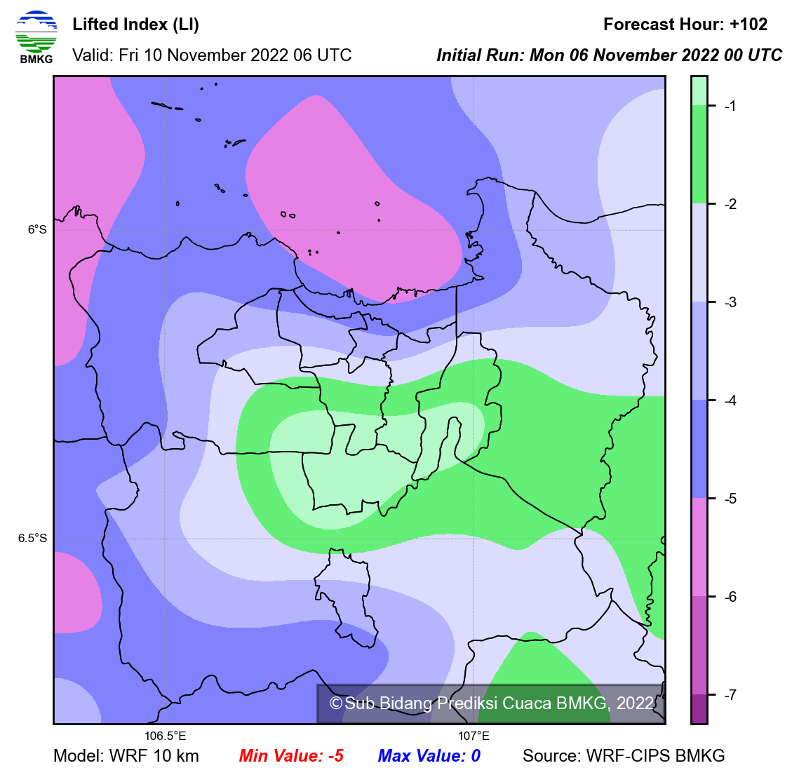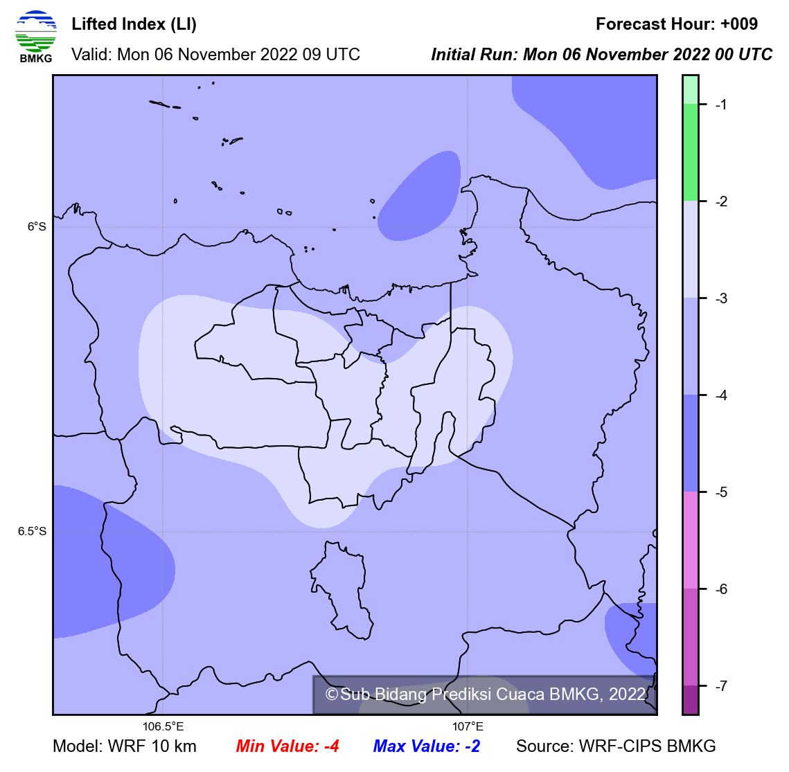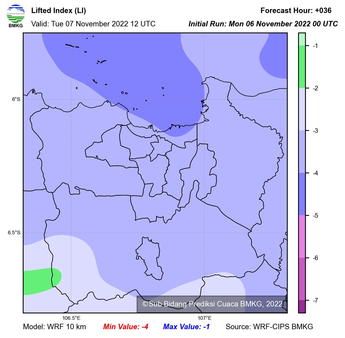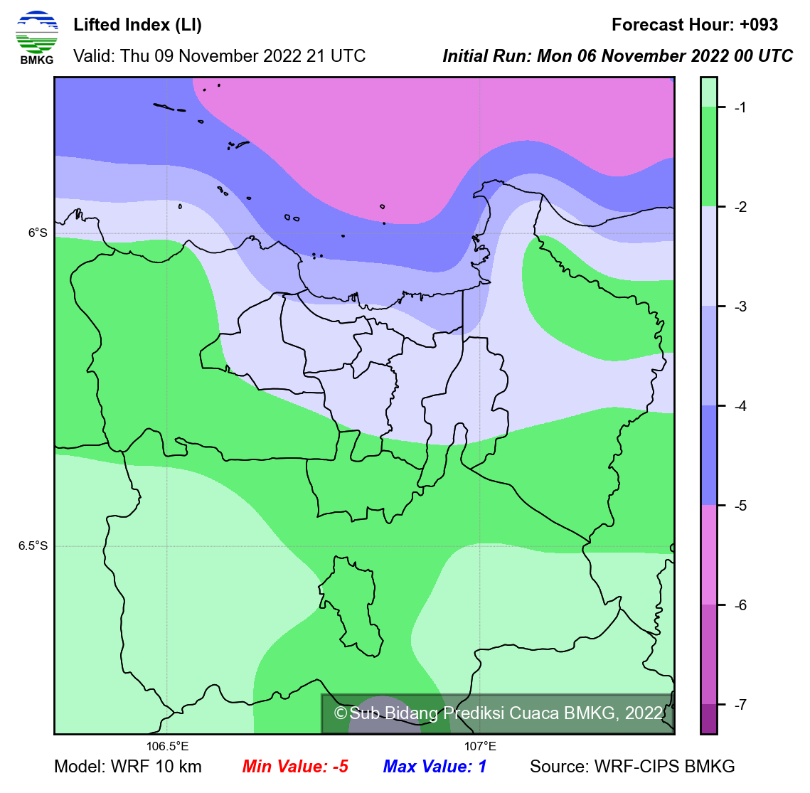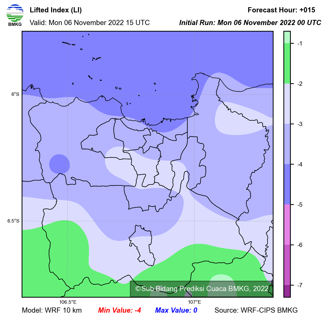 WRF Lifted Index Forecast Jabodetabek
