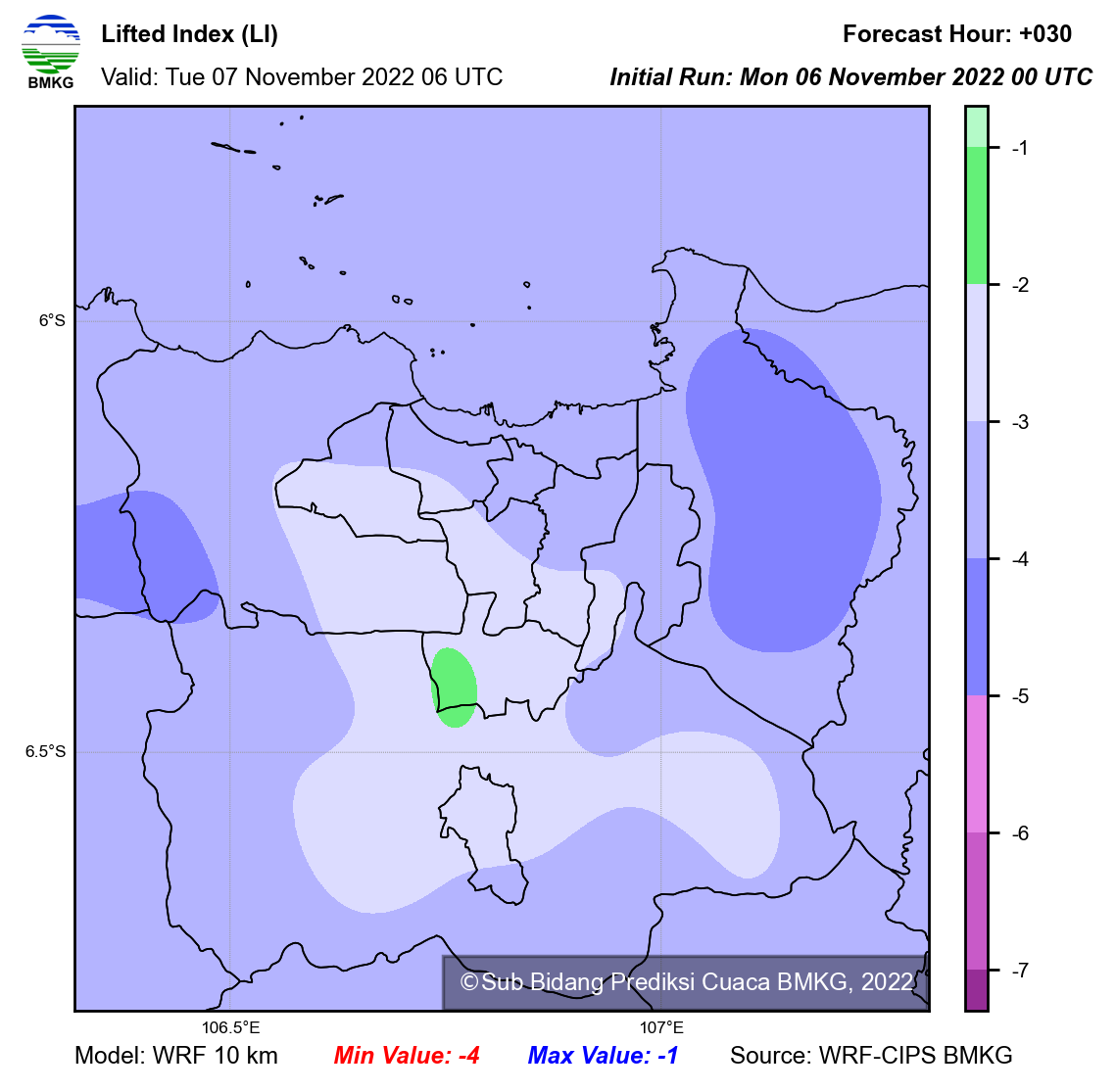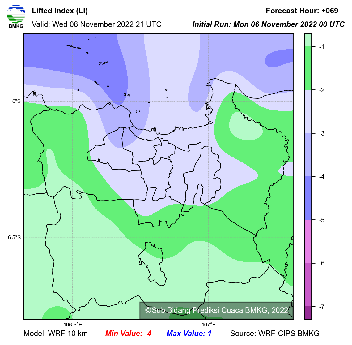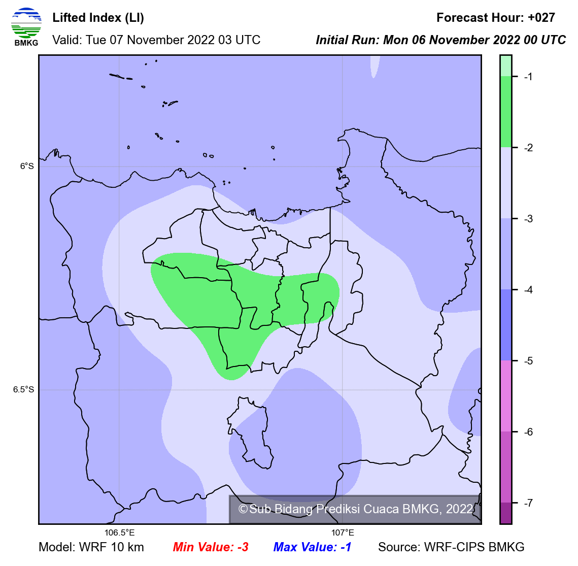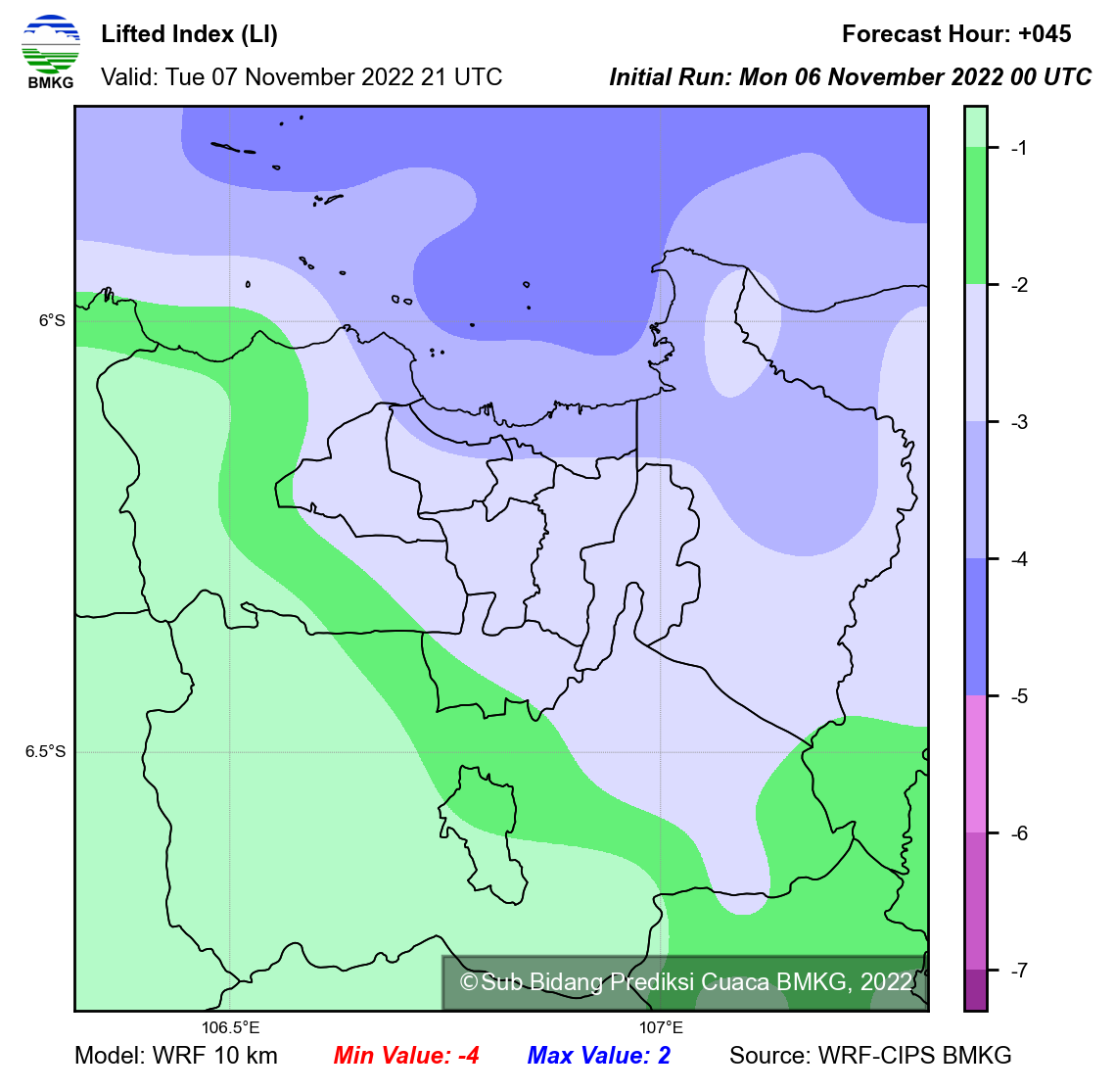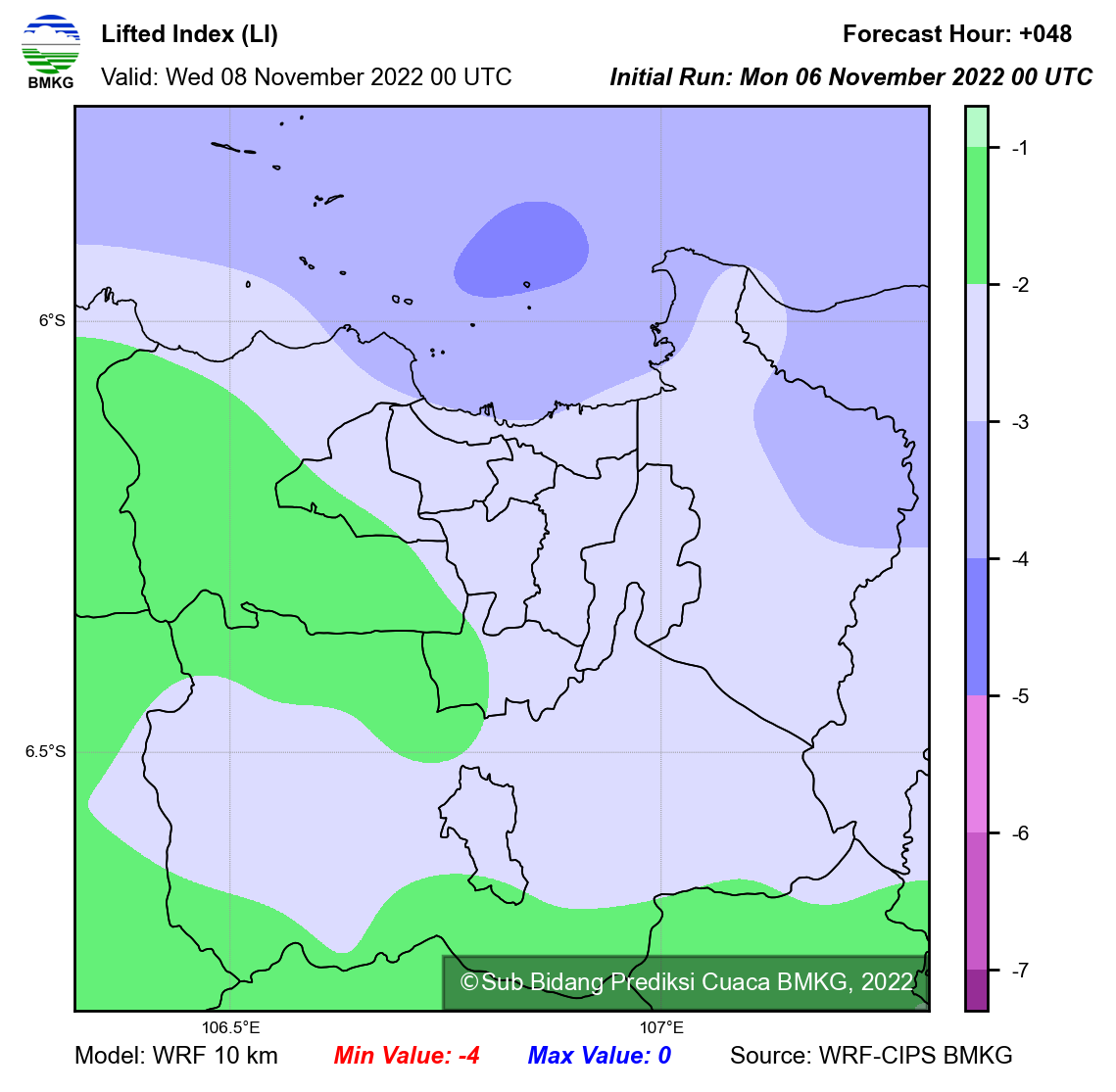 WRF Lifted Index Forecast Jabodetabek
