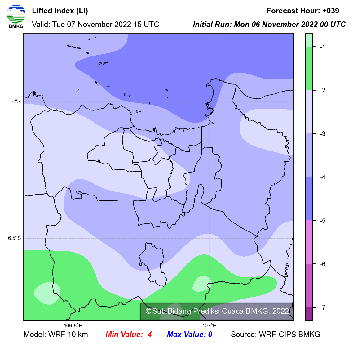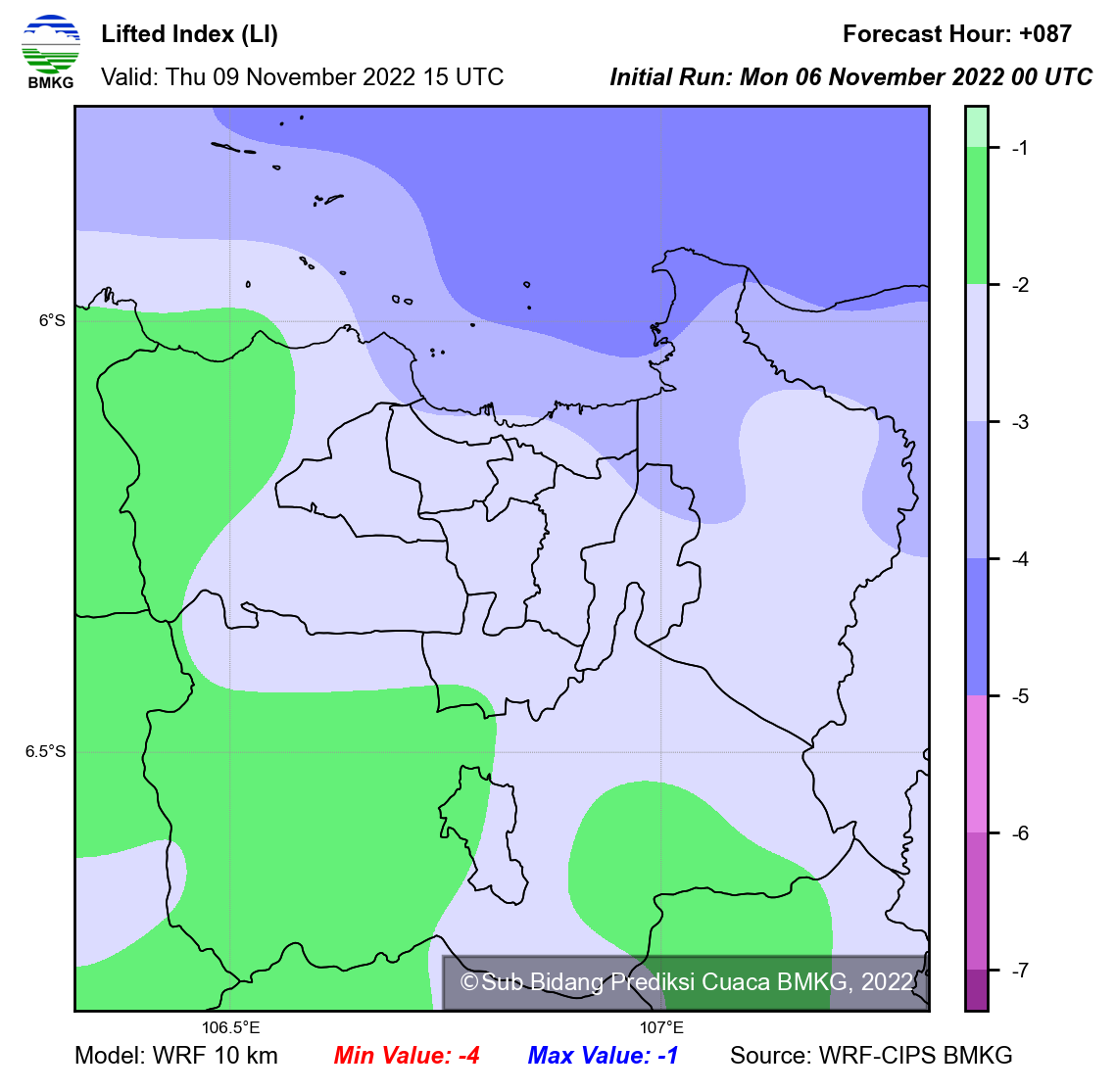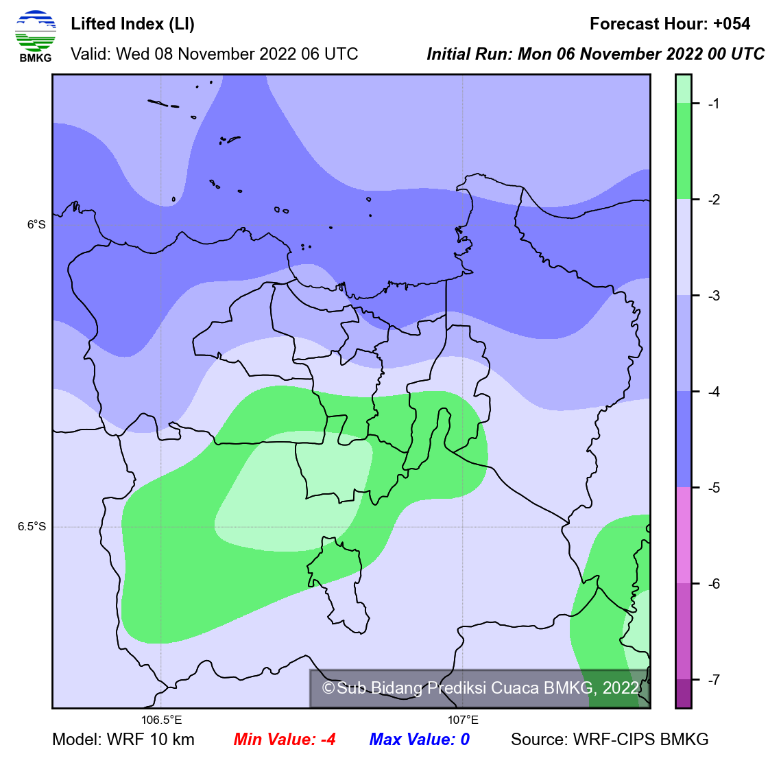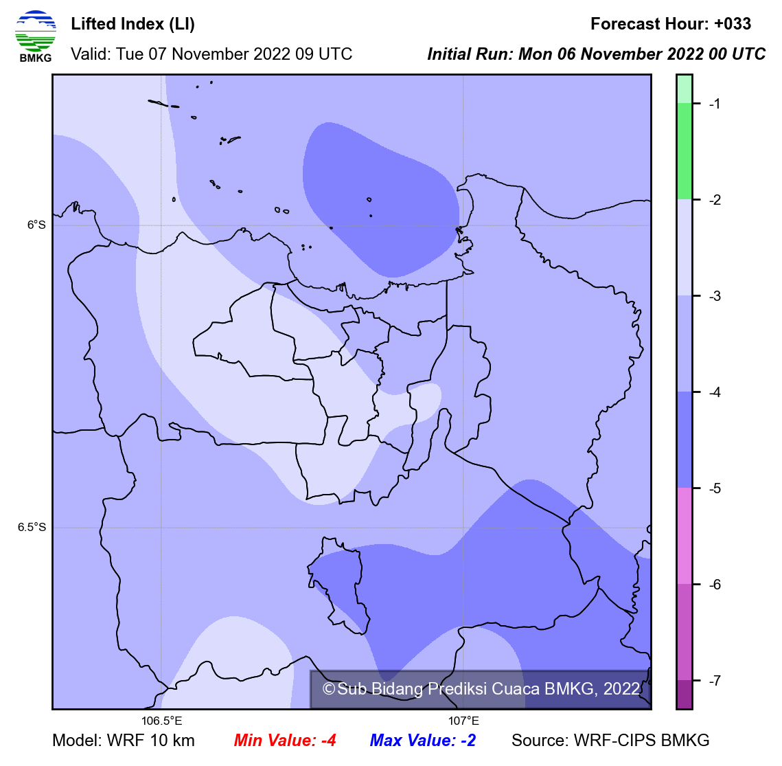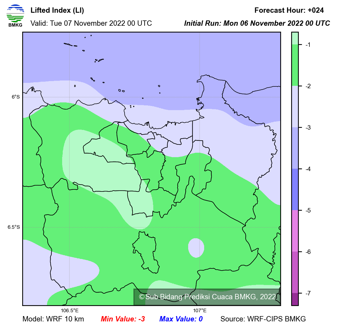 WRF Lifted Index Forecast Jabodetabek