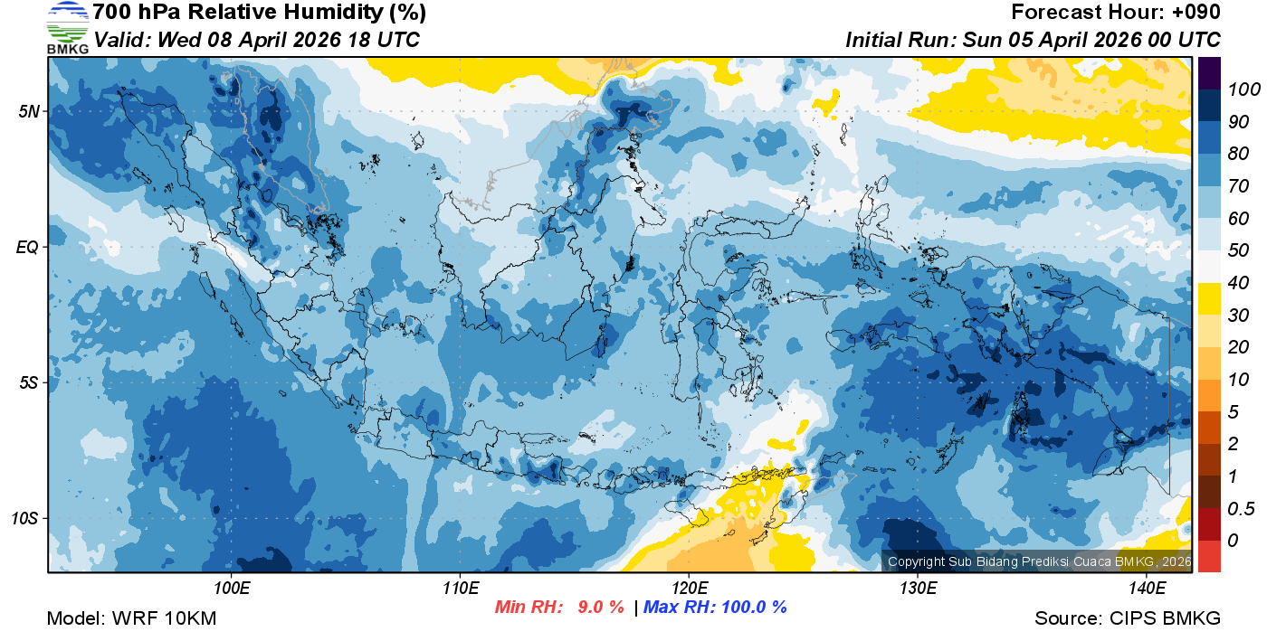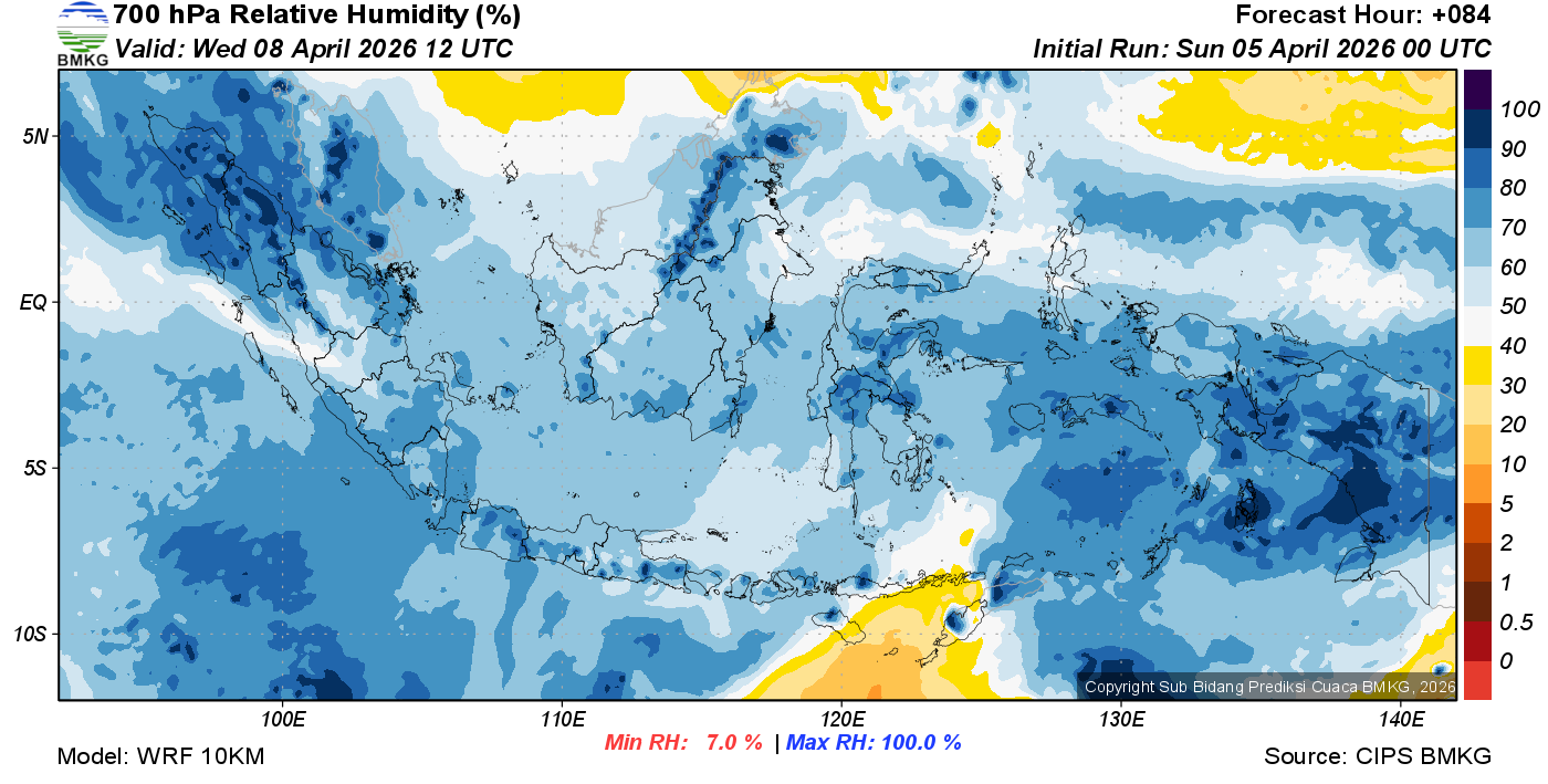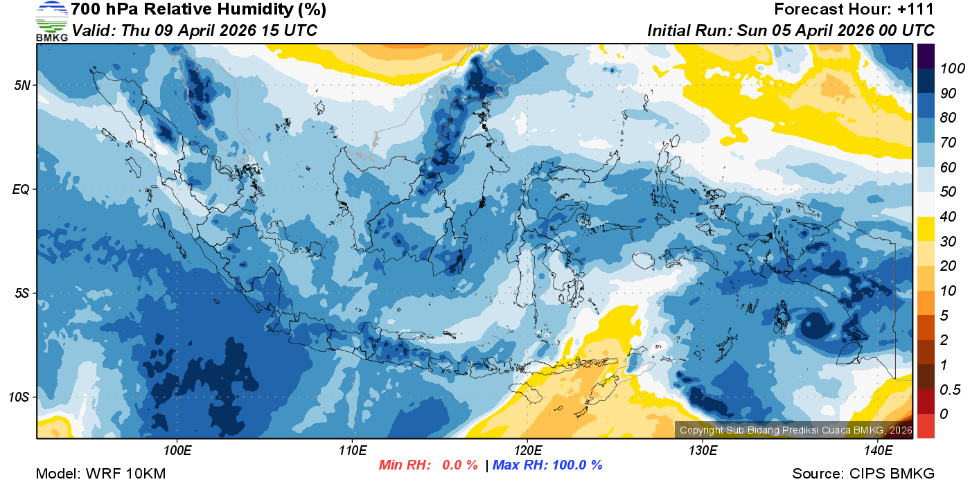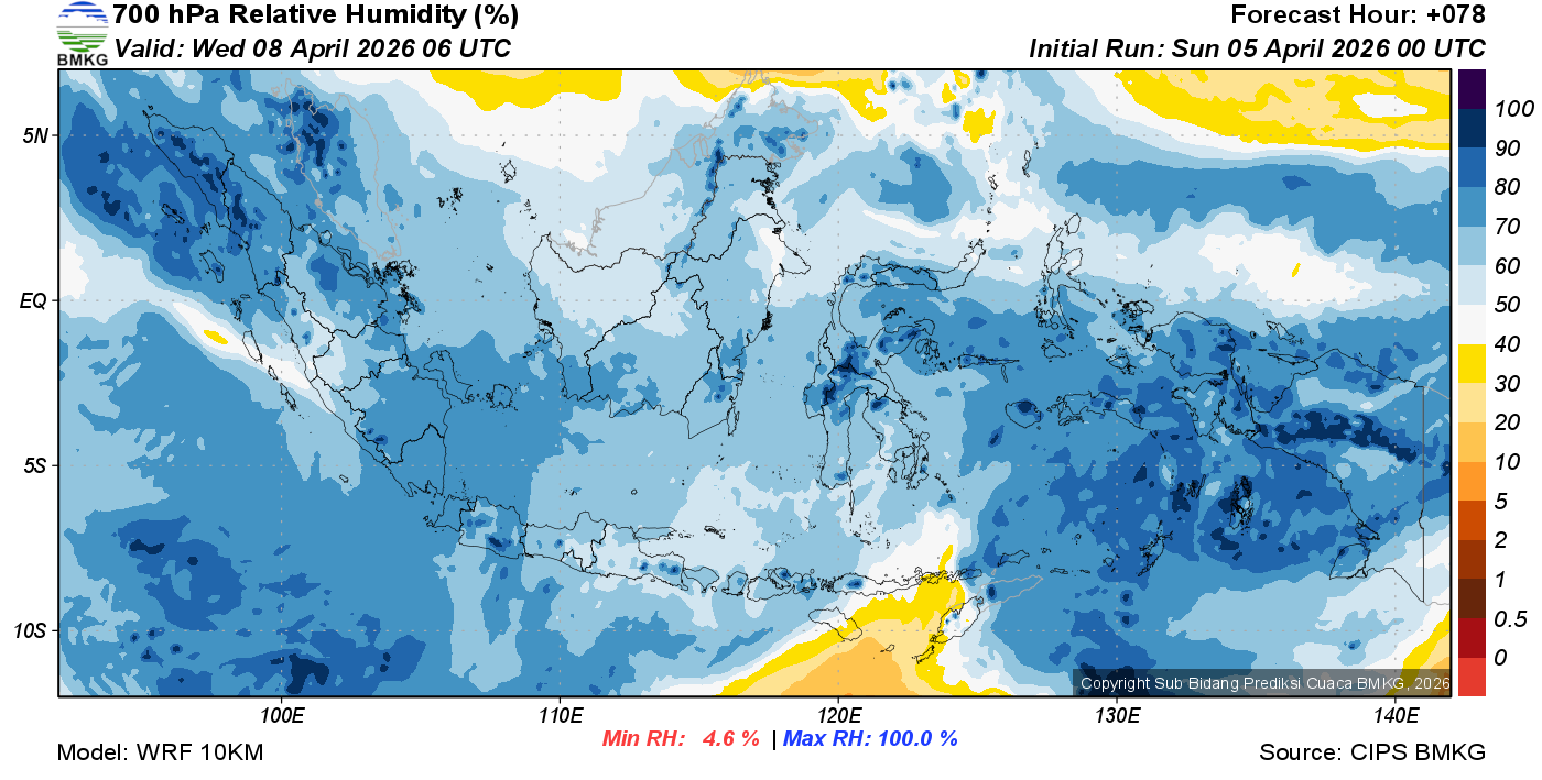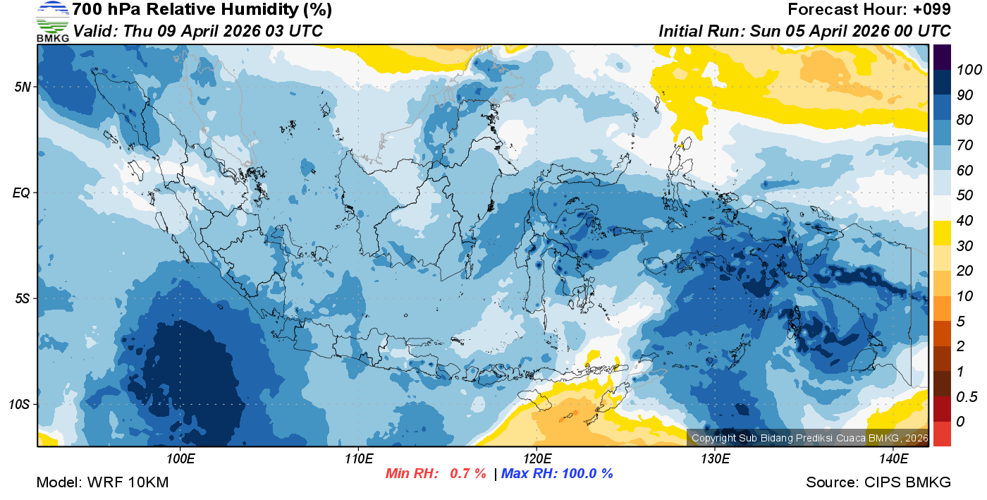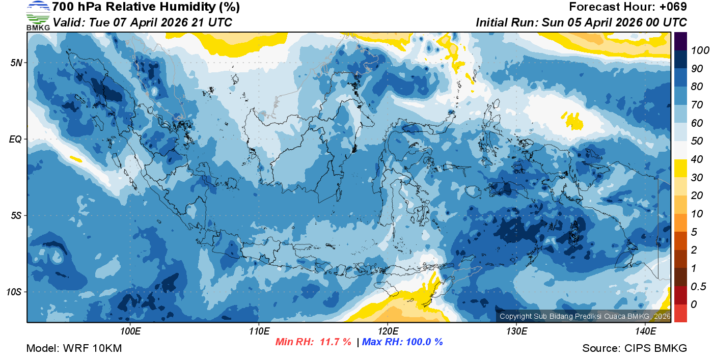 Prediksi Suhu Titik Embun 700 hPa NTT