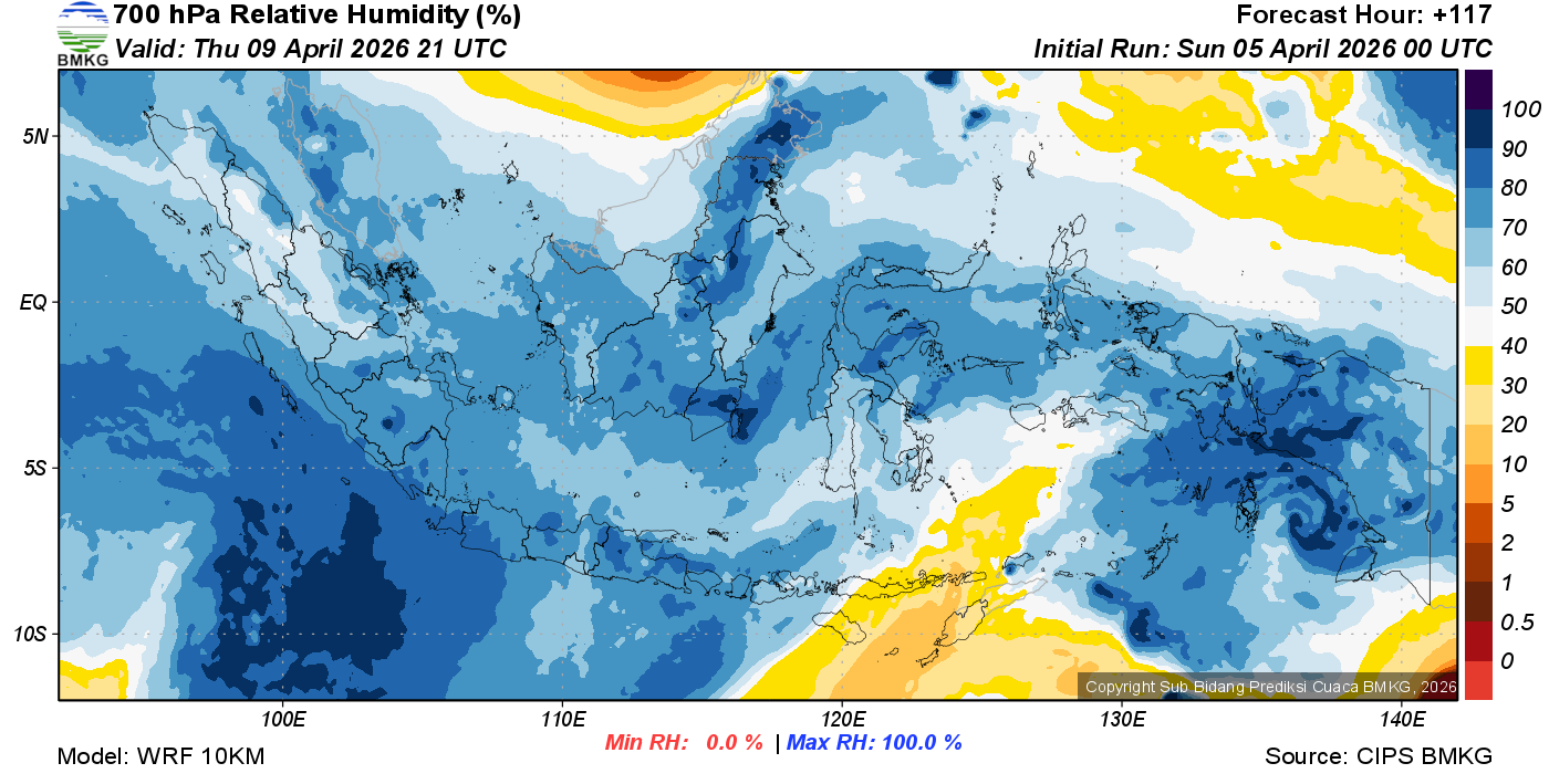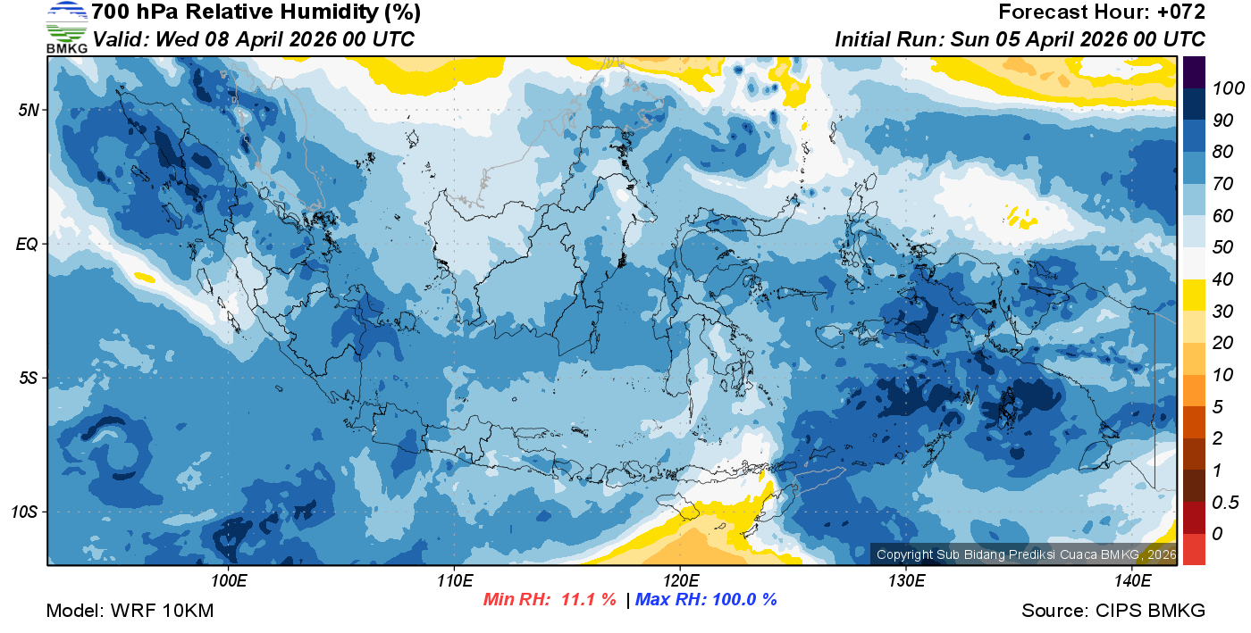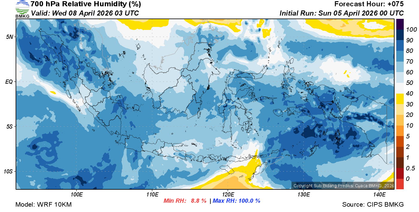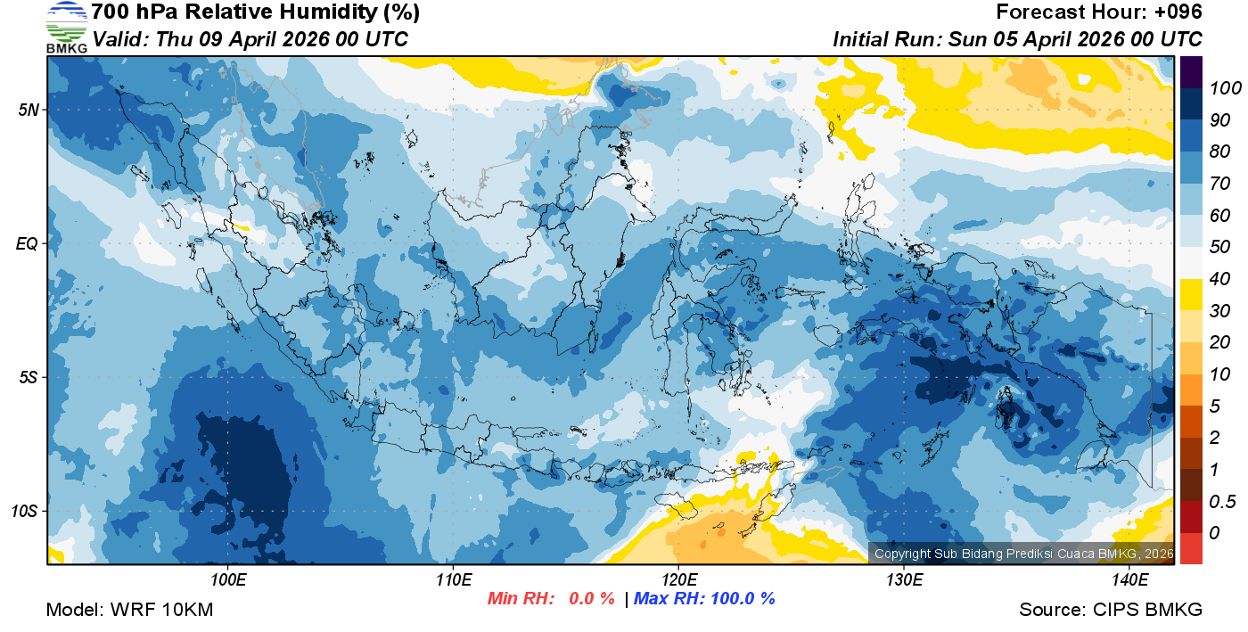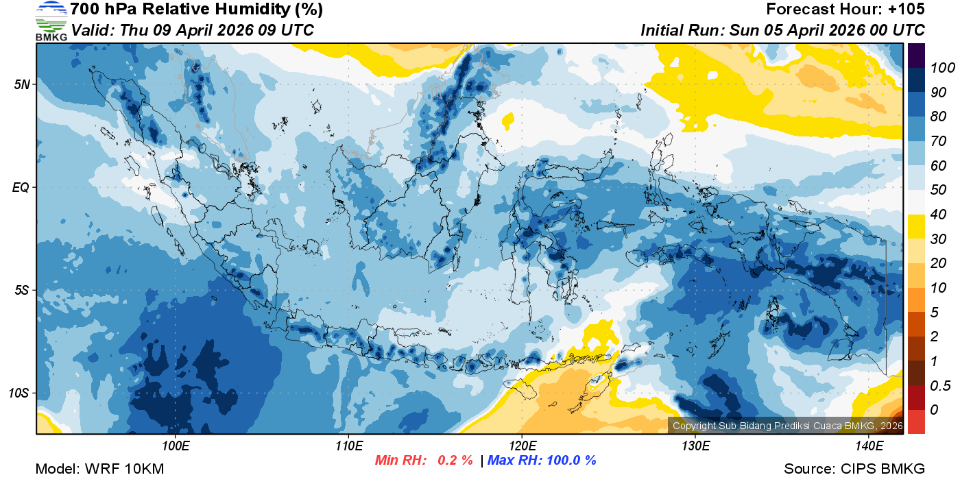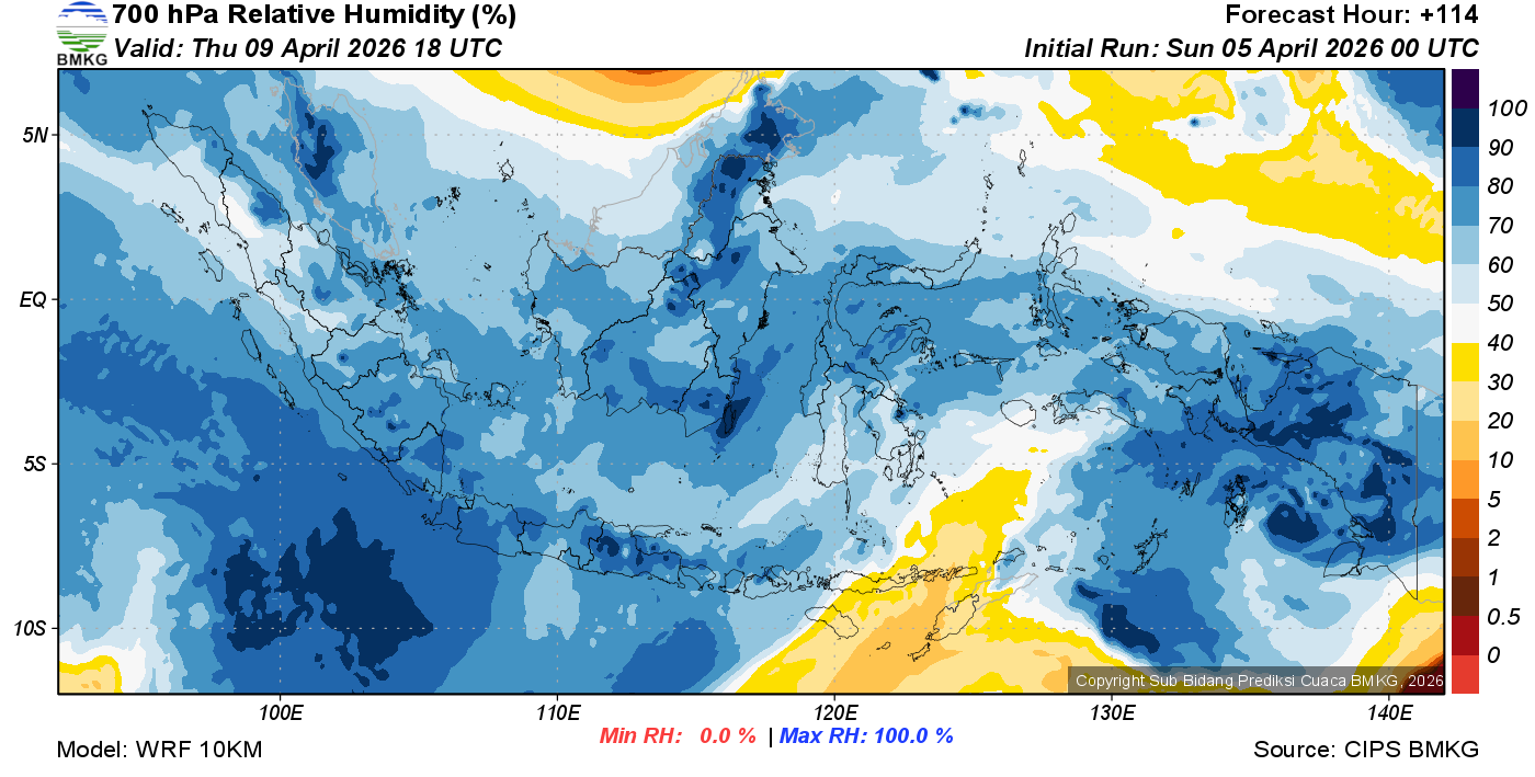 Prediksi Suhu Titik Embun 700 hPa NTT
