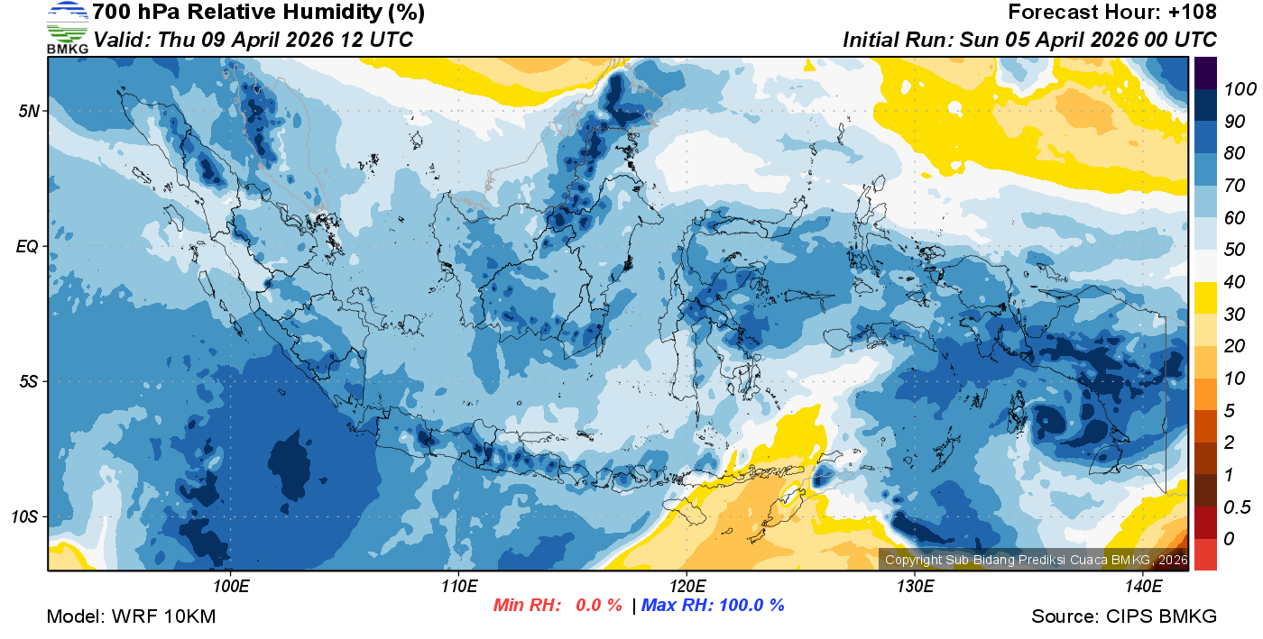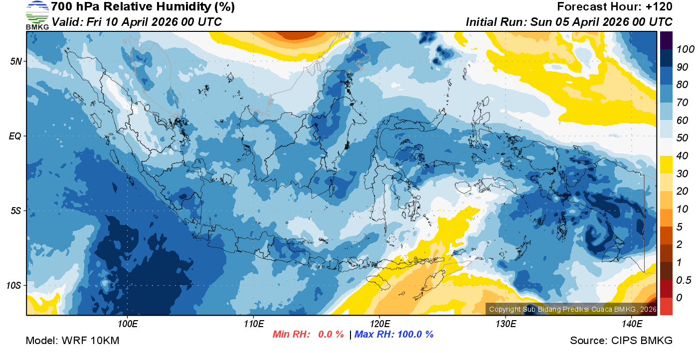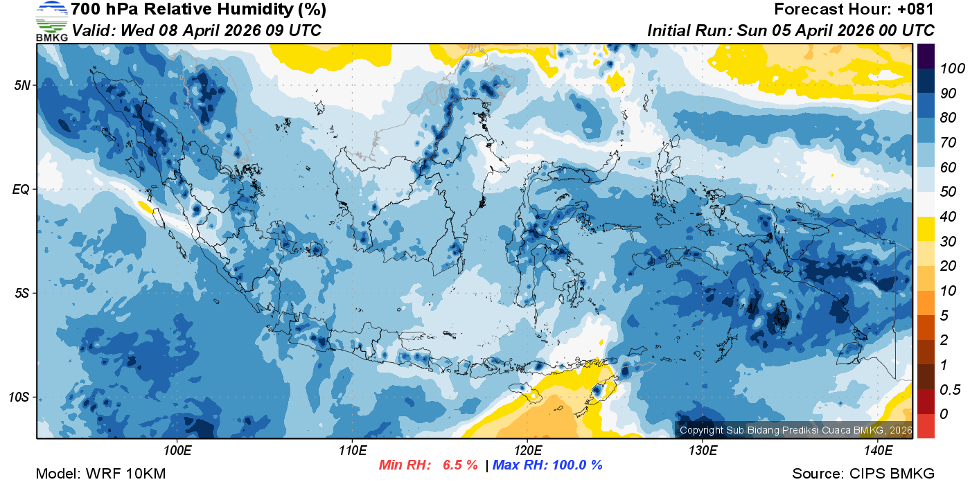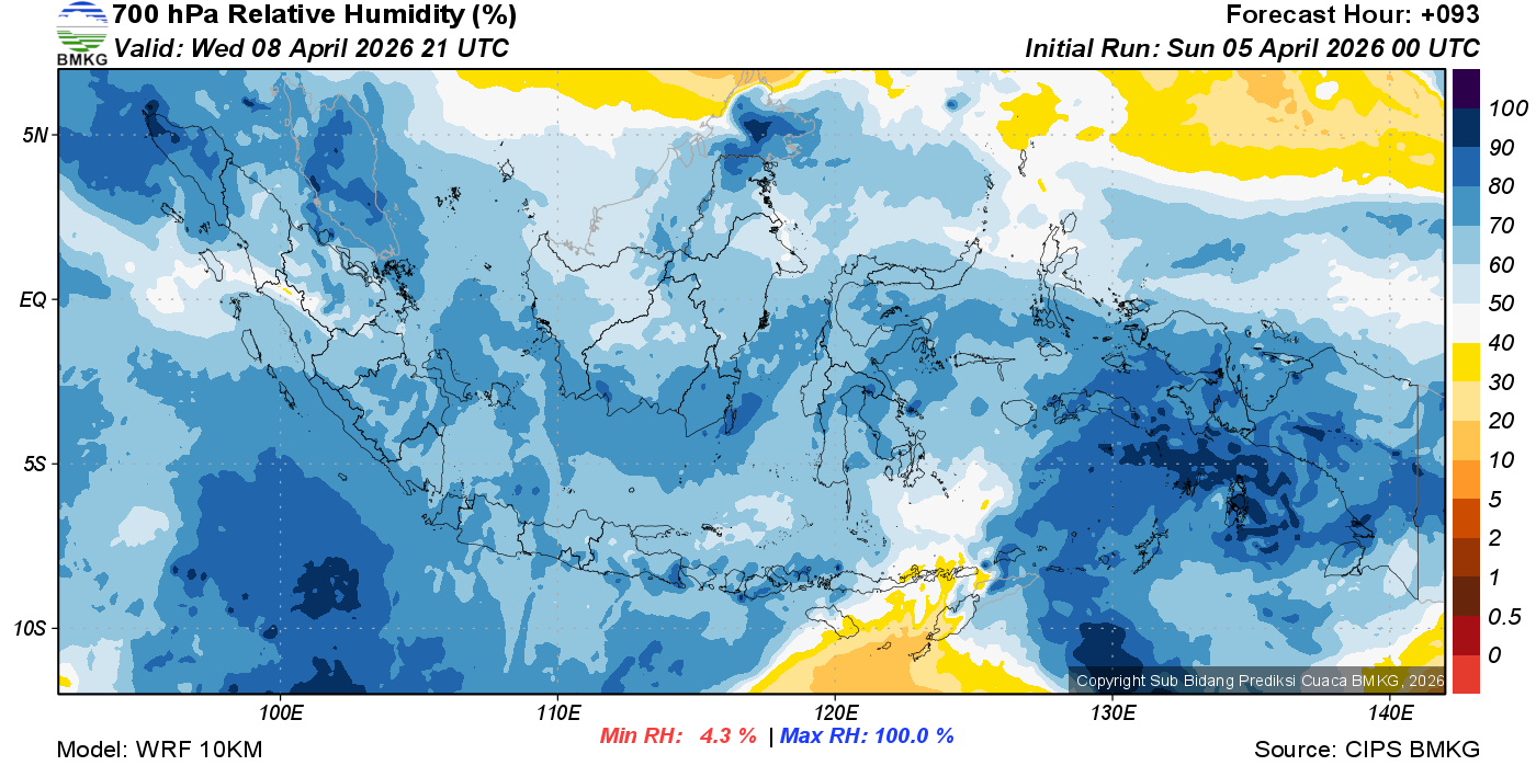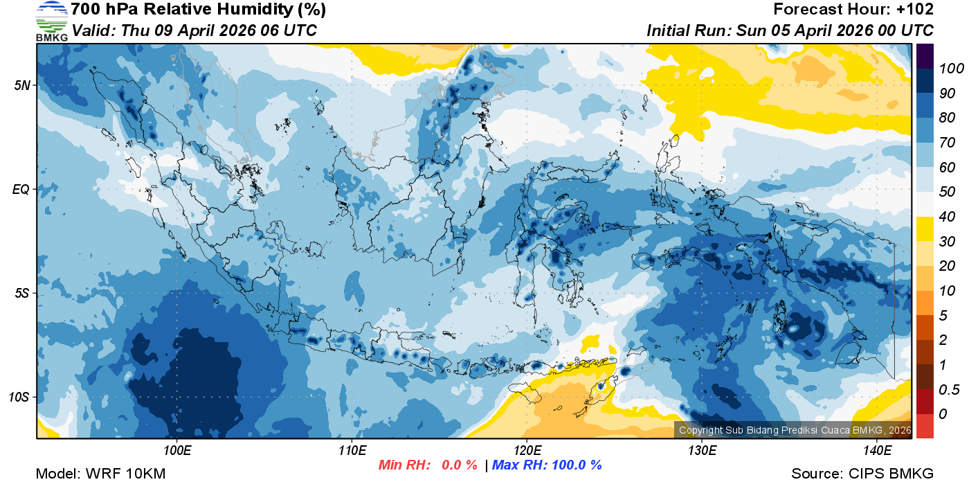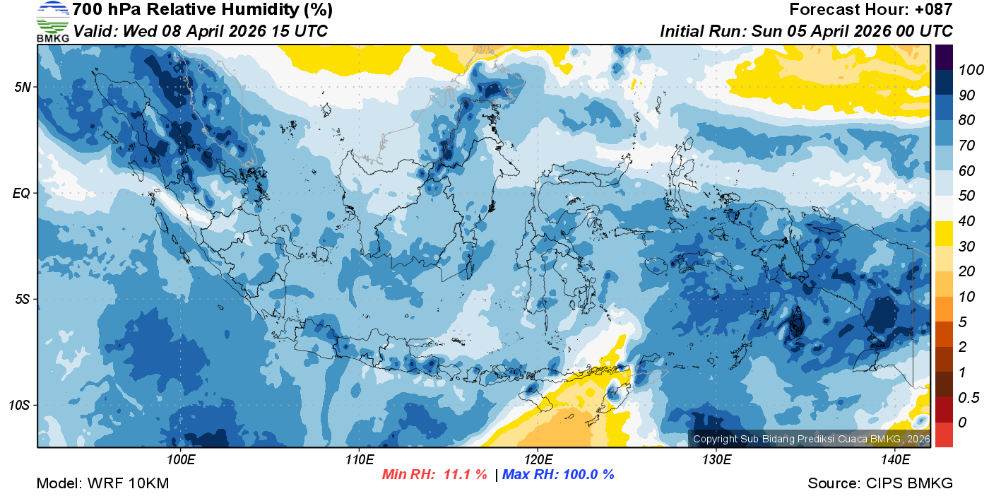 Prediksi Suhu Titik Embun 700 hPa NTT