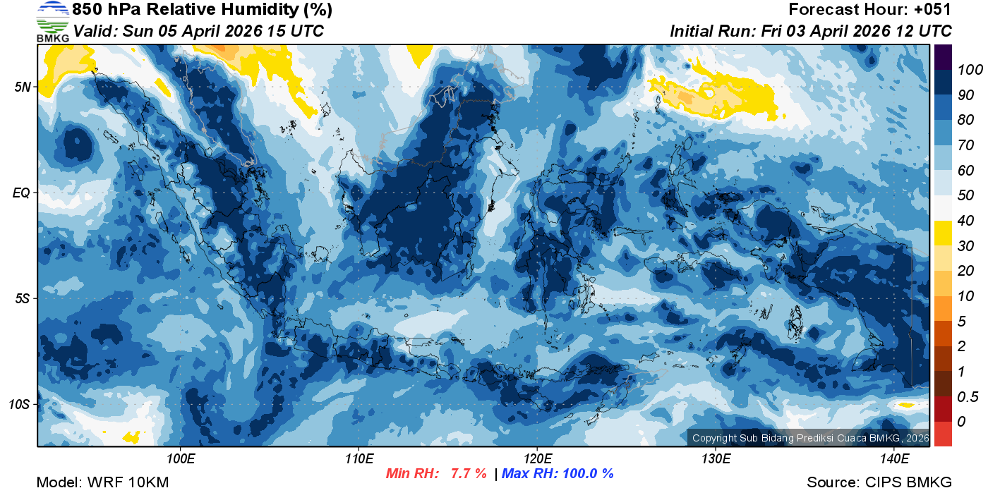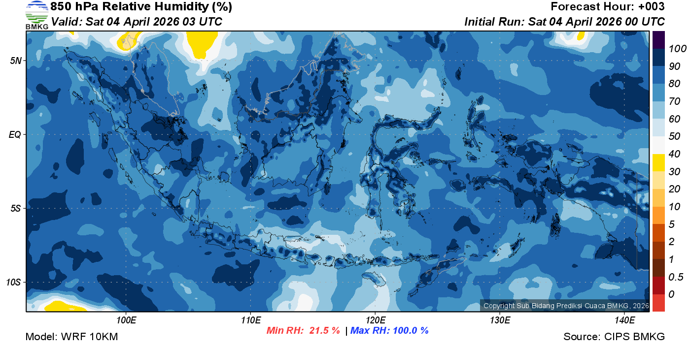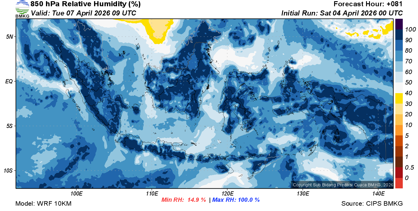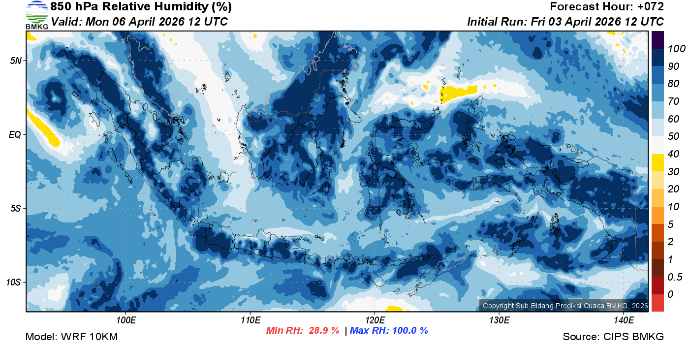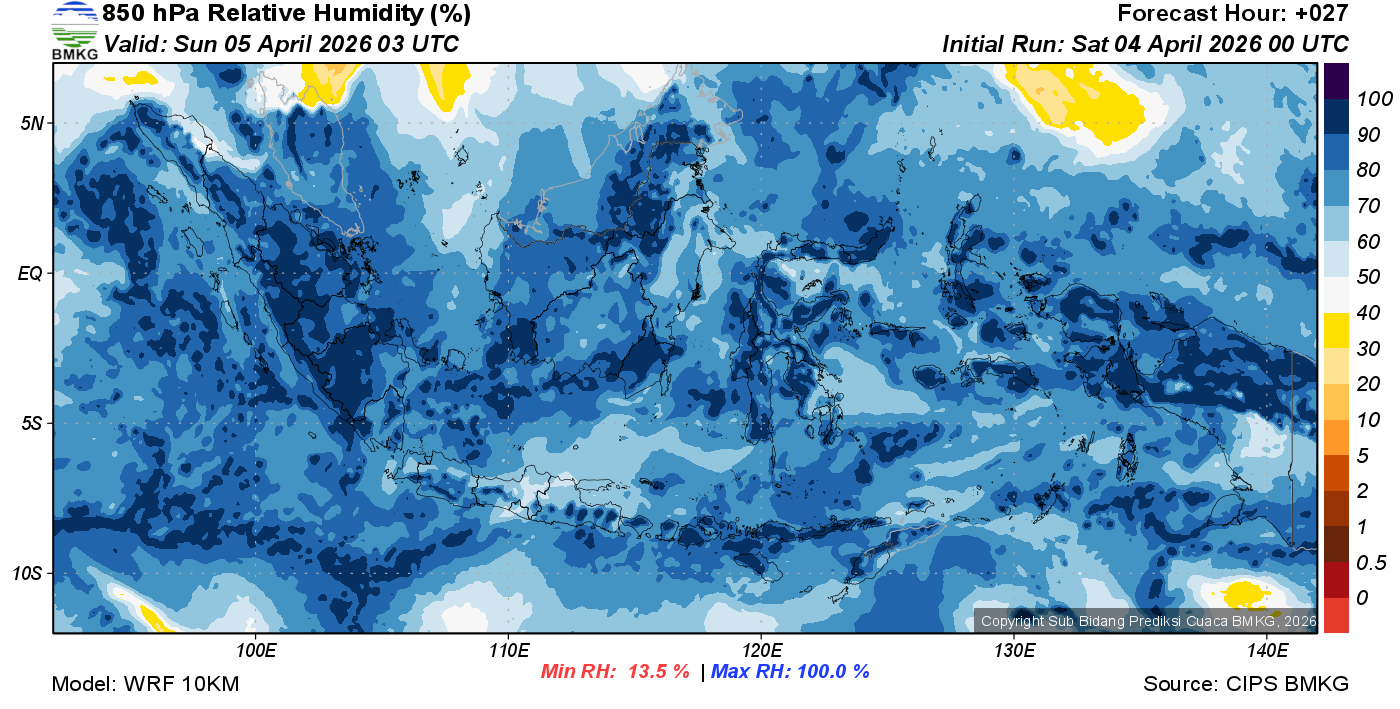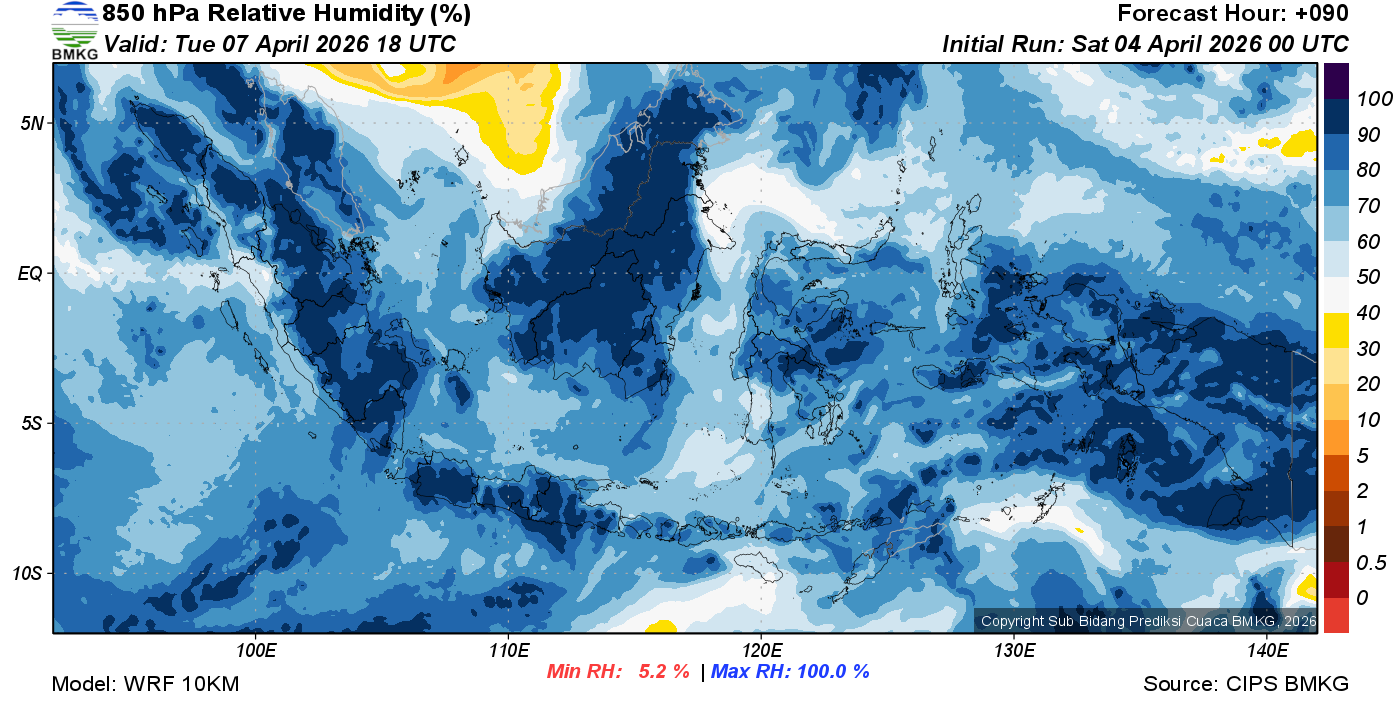 Prediksi Kelembapan 850 hPa NTT