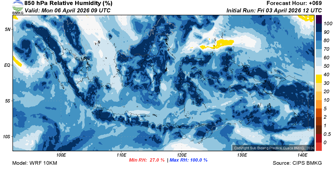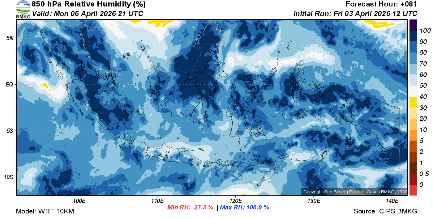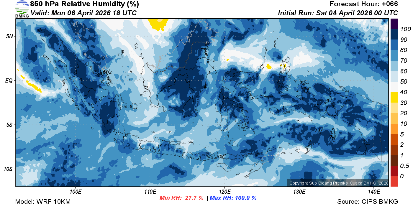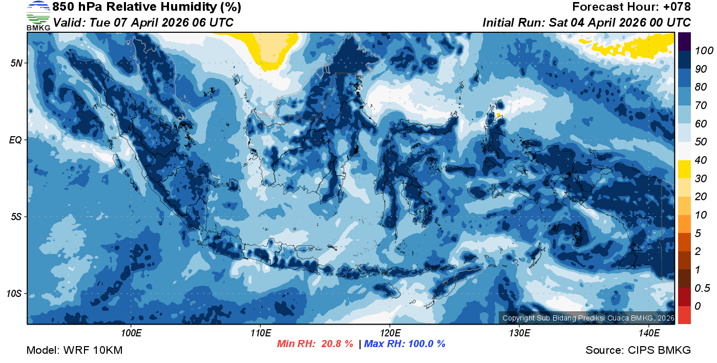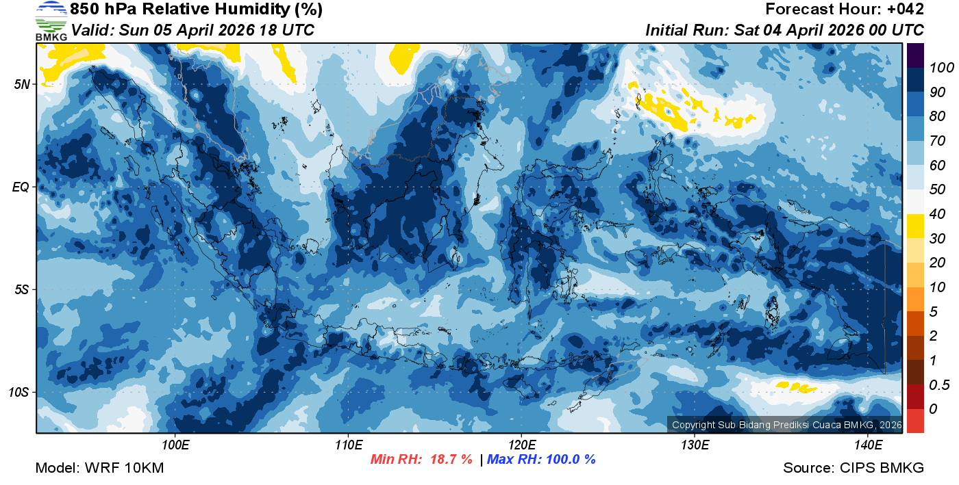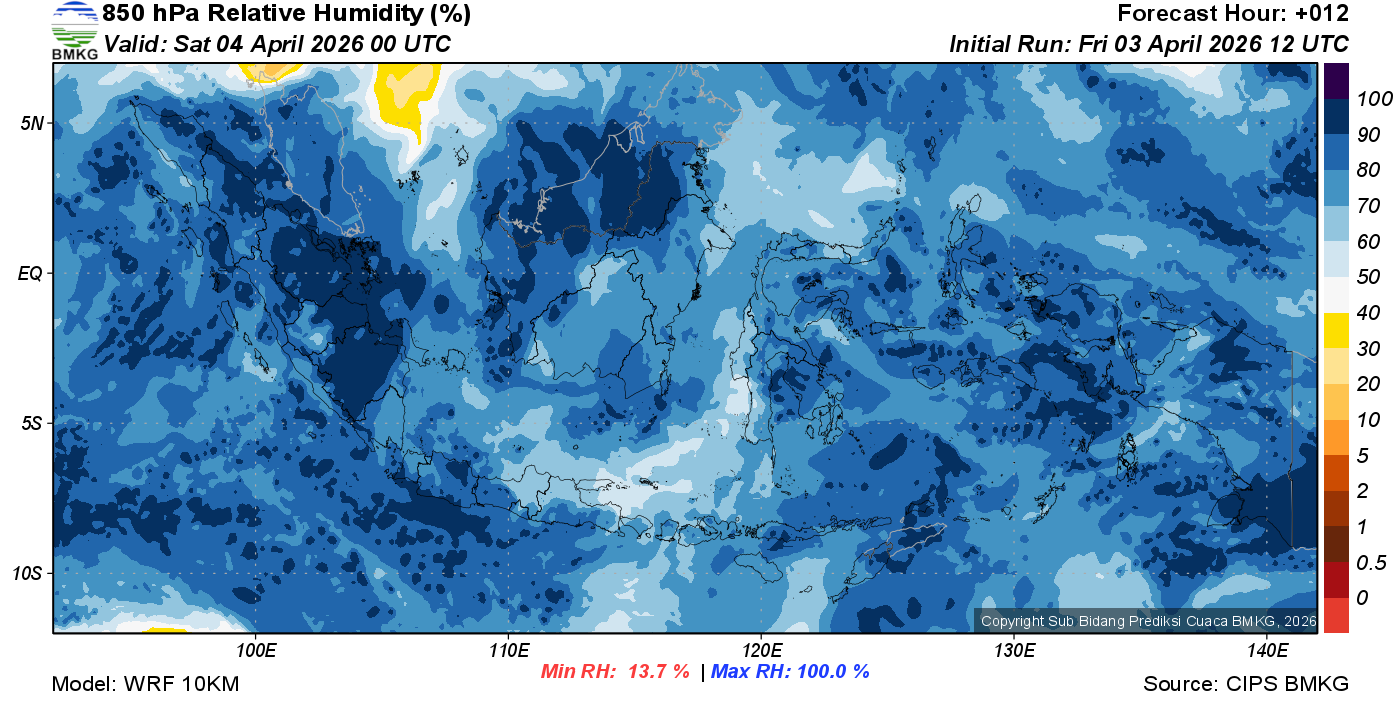 Prediksi Kelembapan 850 hPa NTT