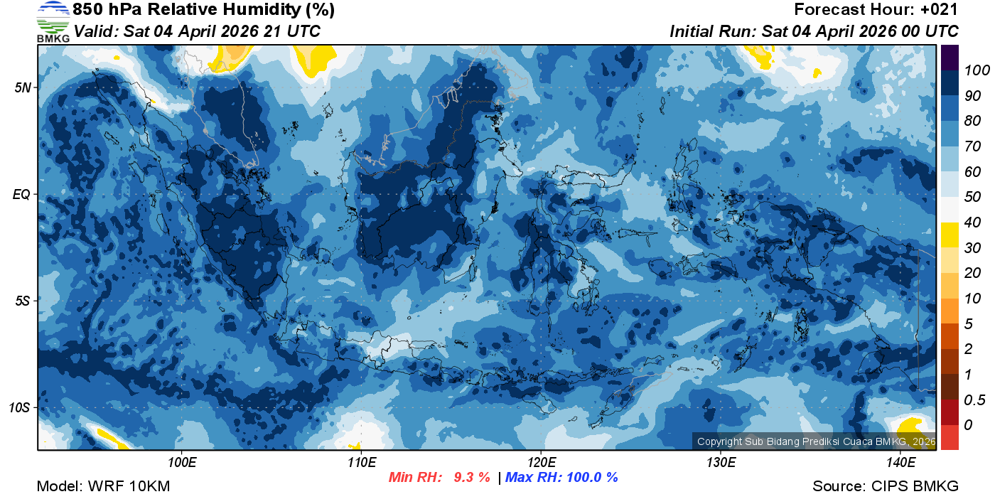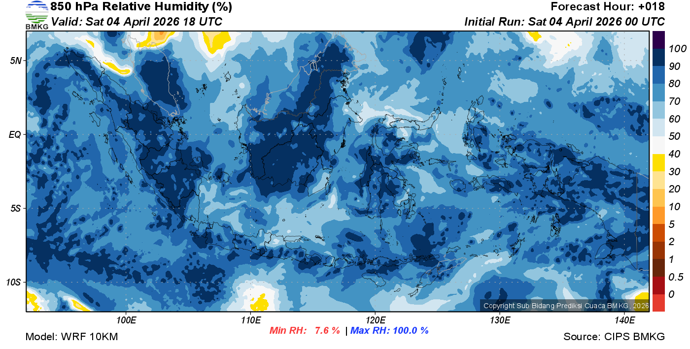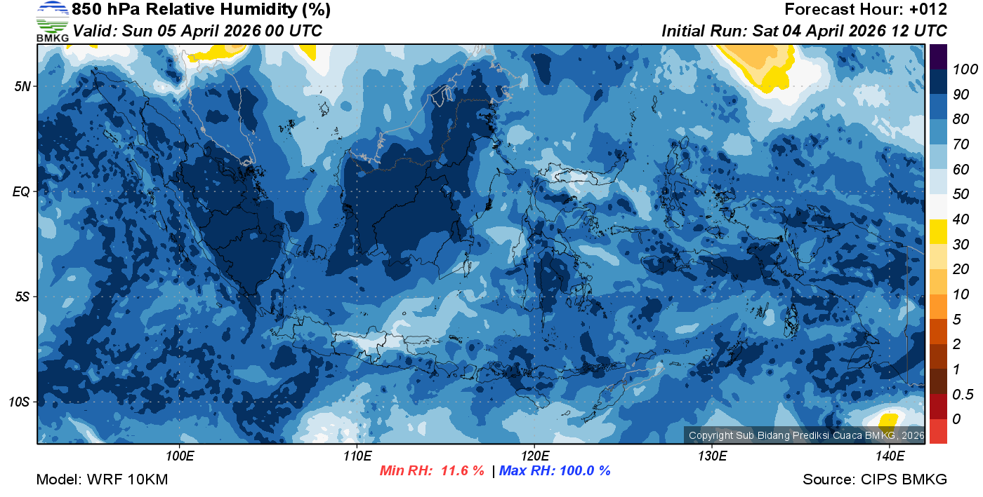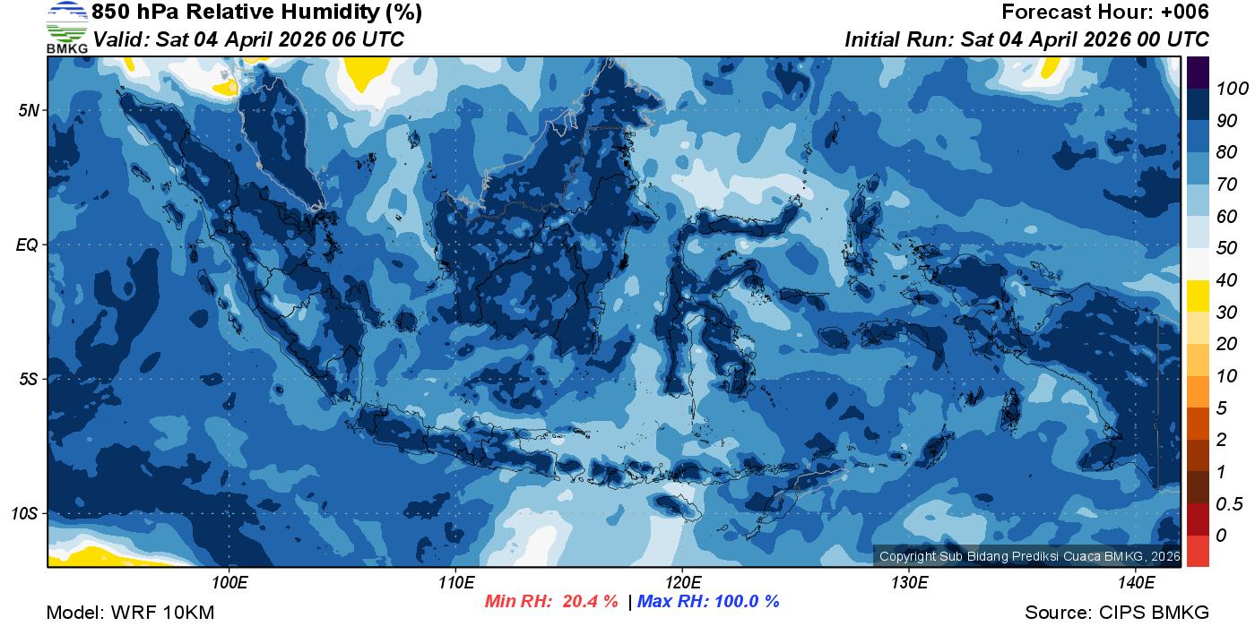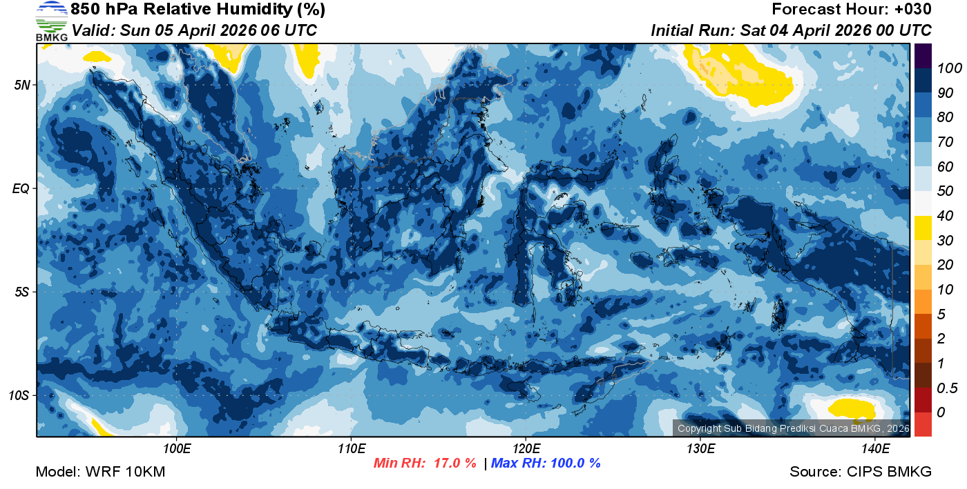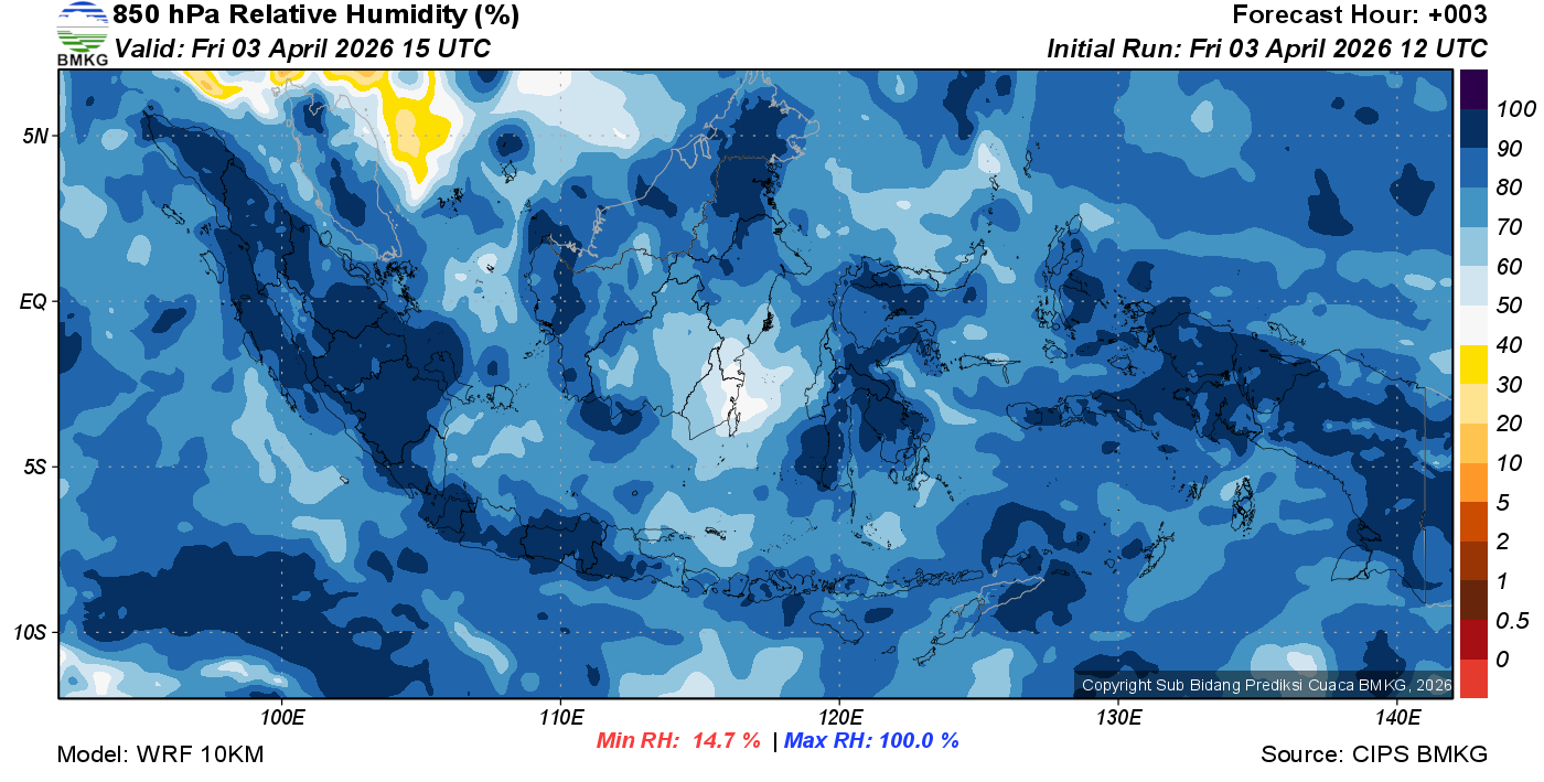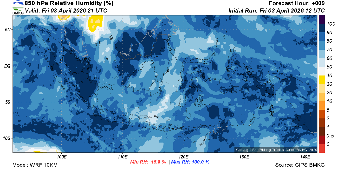 Prediksi Kelembapan 850 hPa NTT