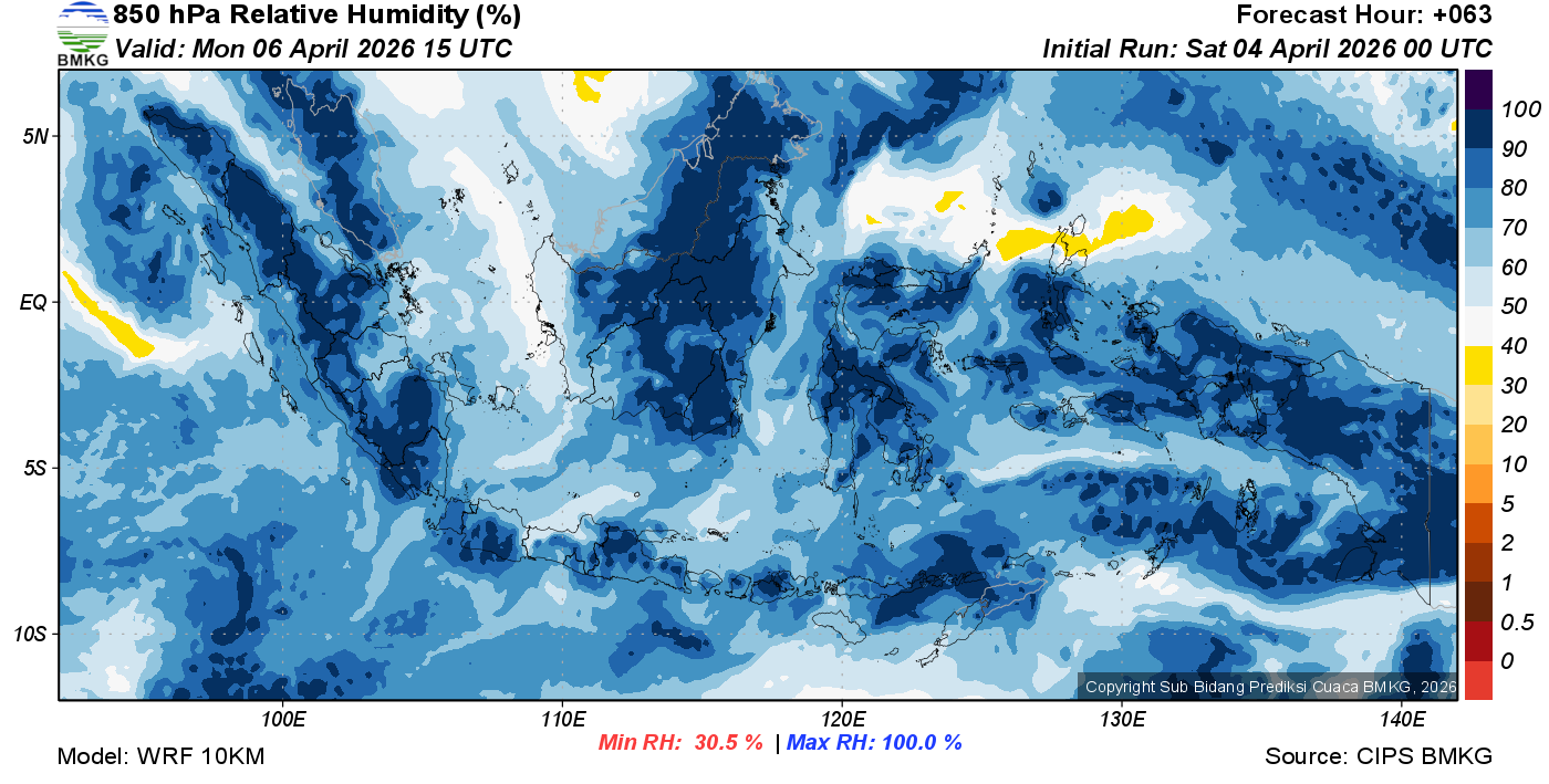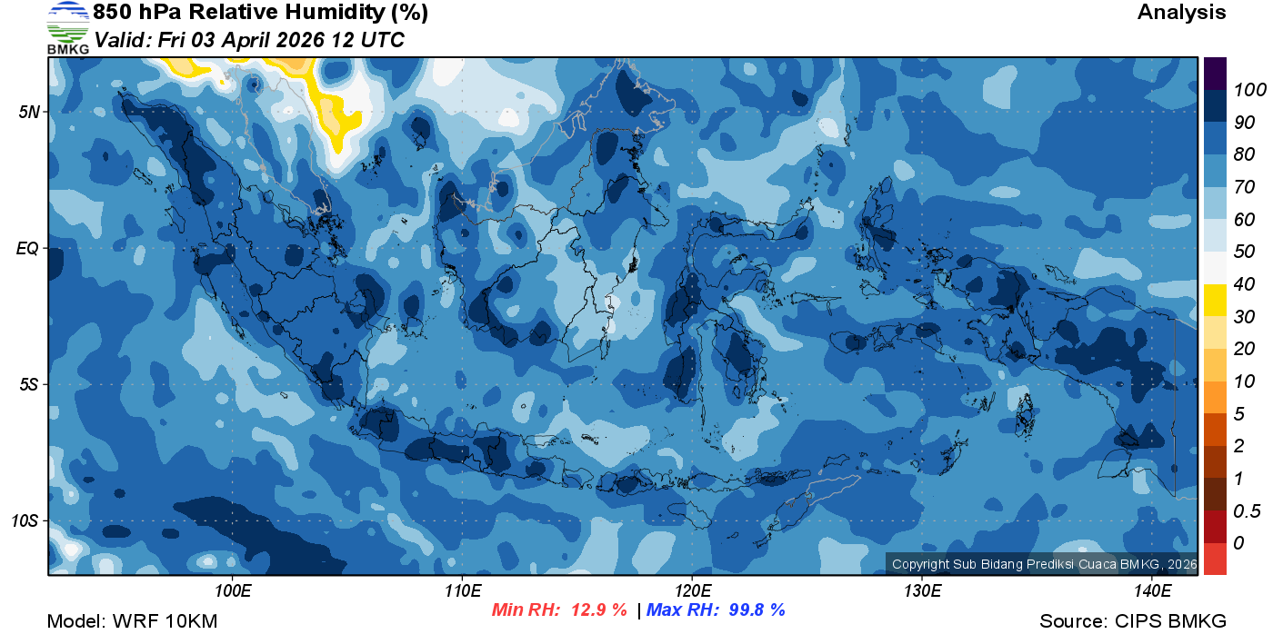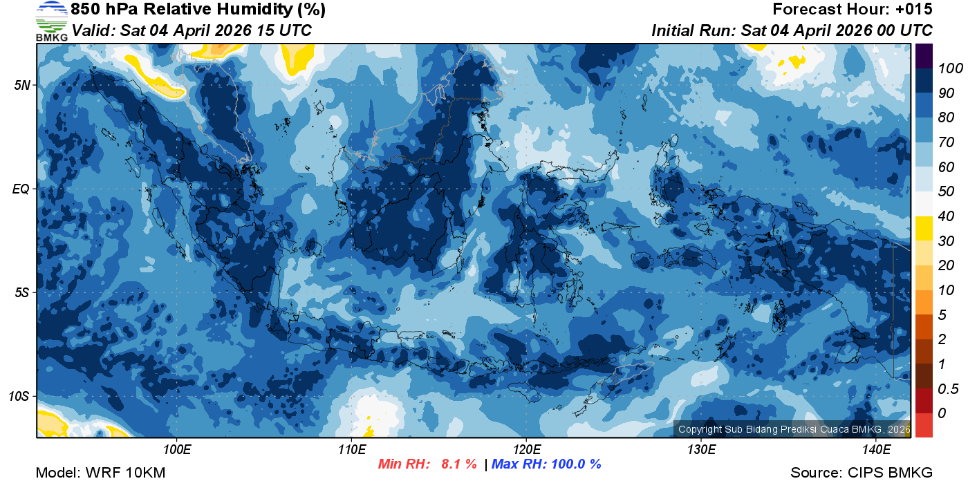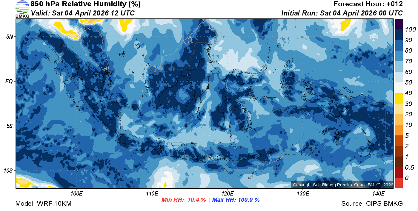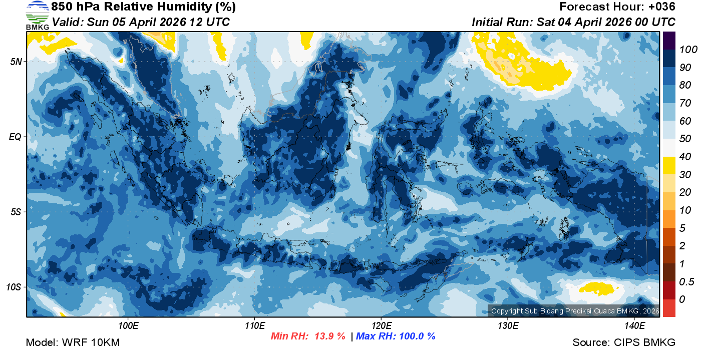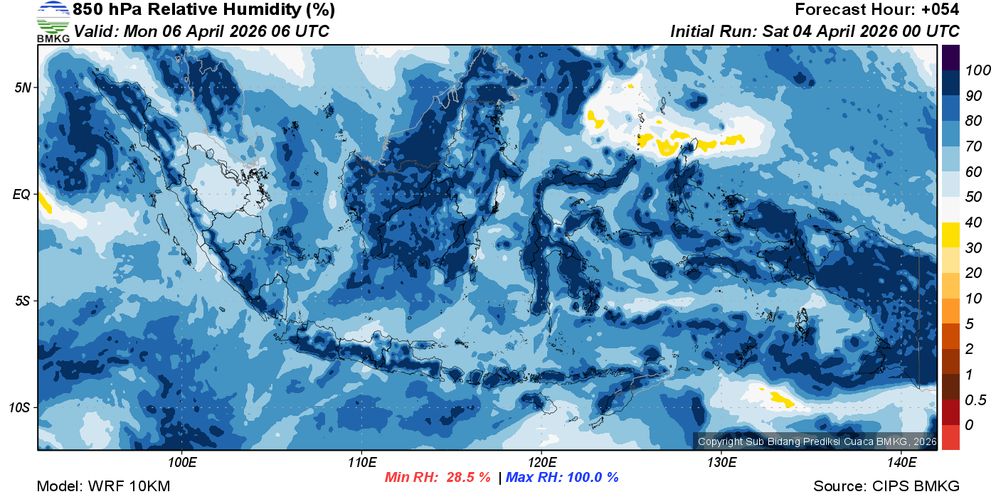 Prediksi Kelembapan 850 hPa NTT