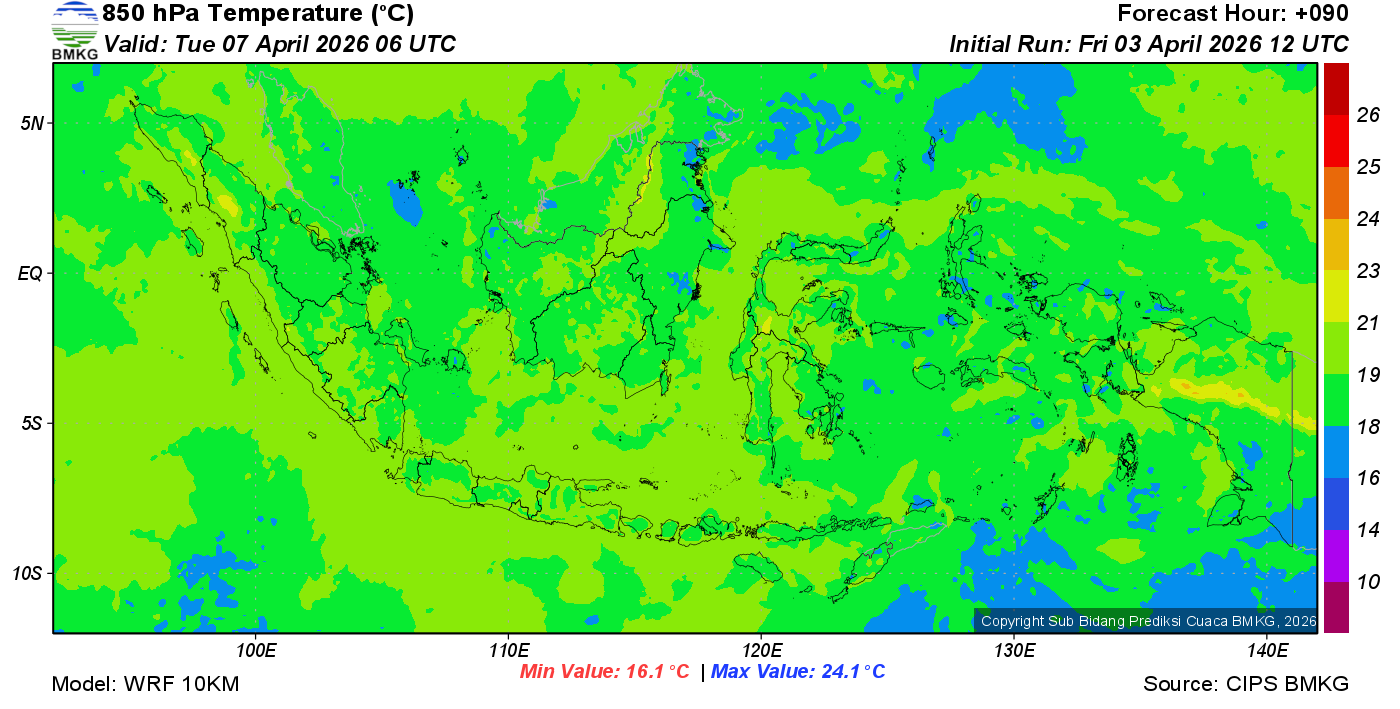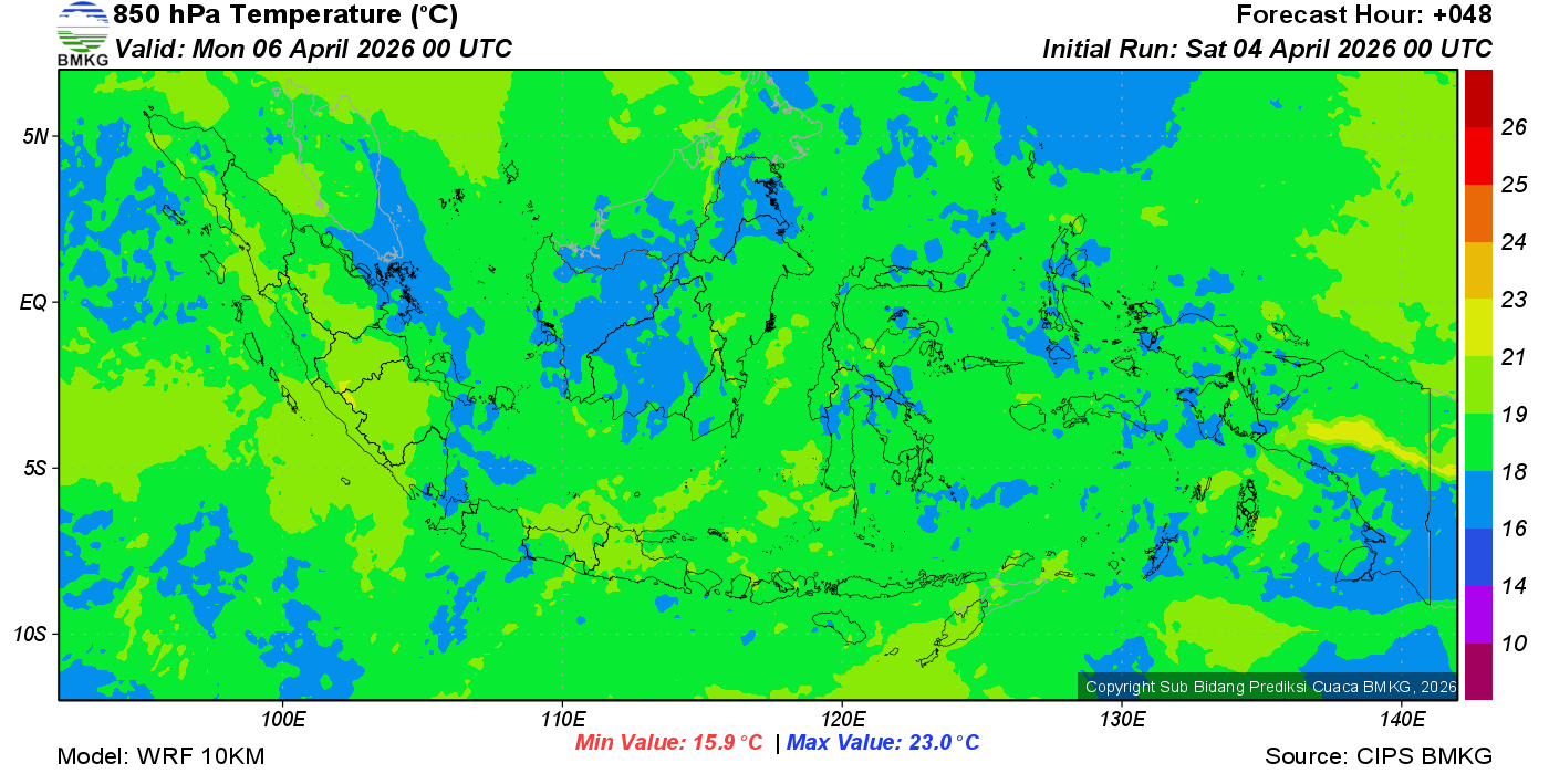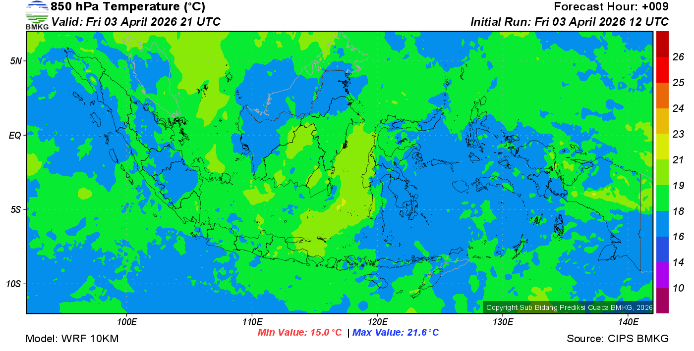 Prediksi Suhu Titik Embun 850 hPa NTT
