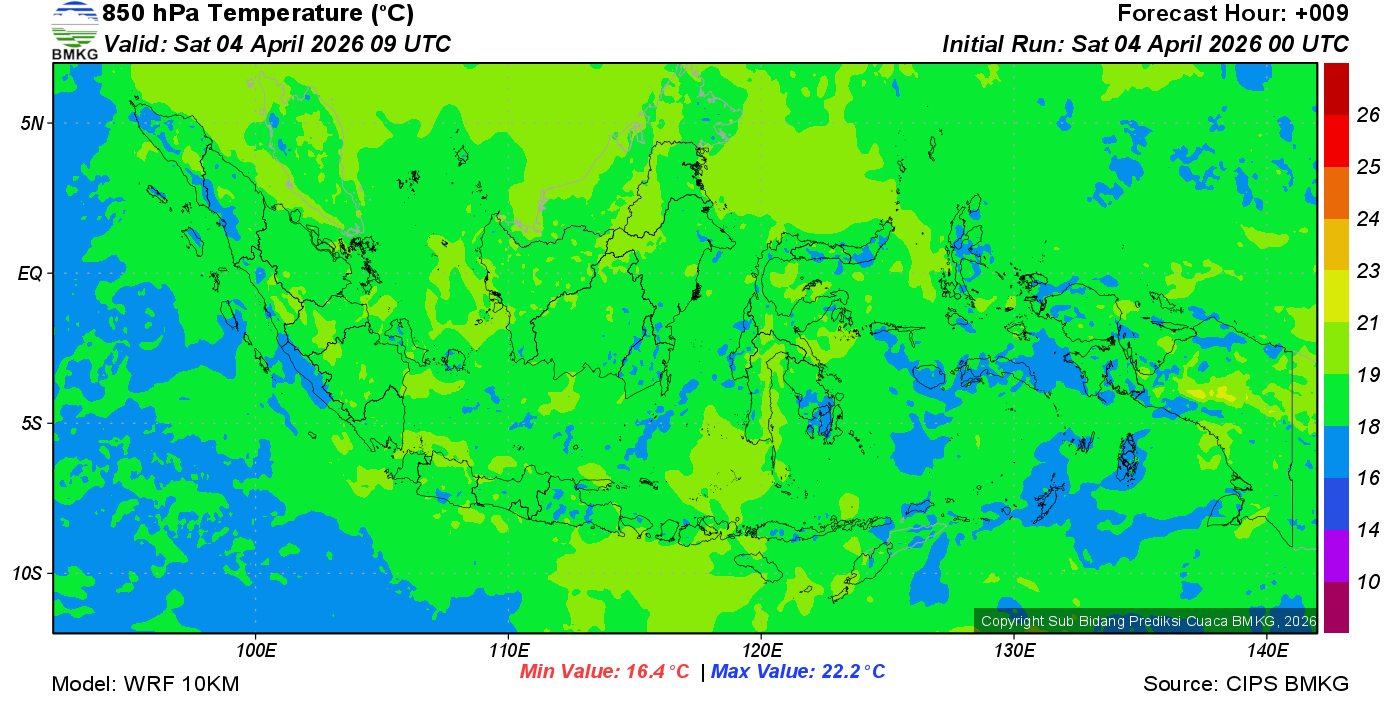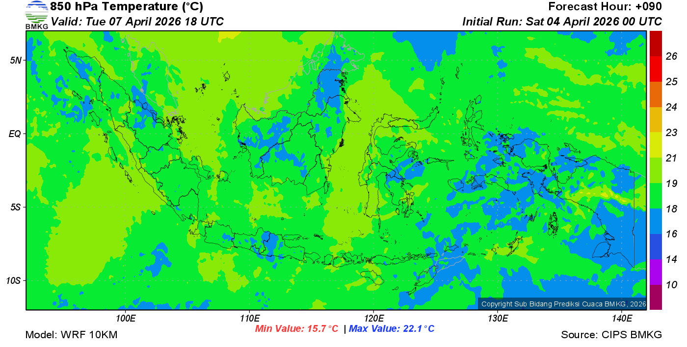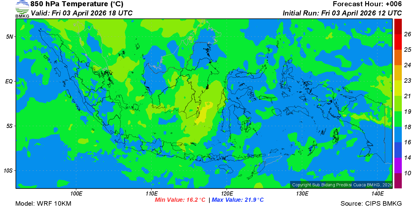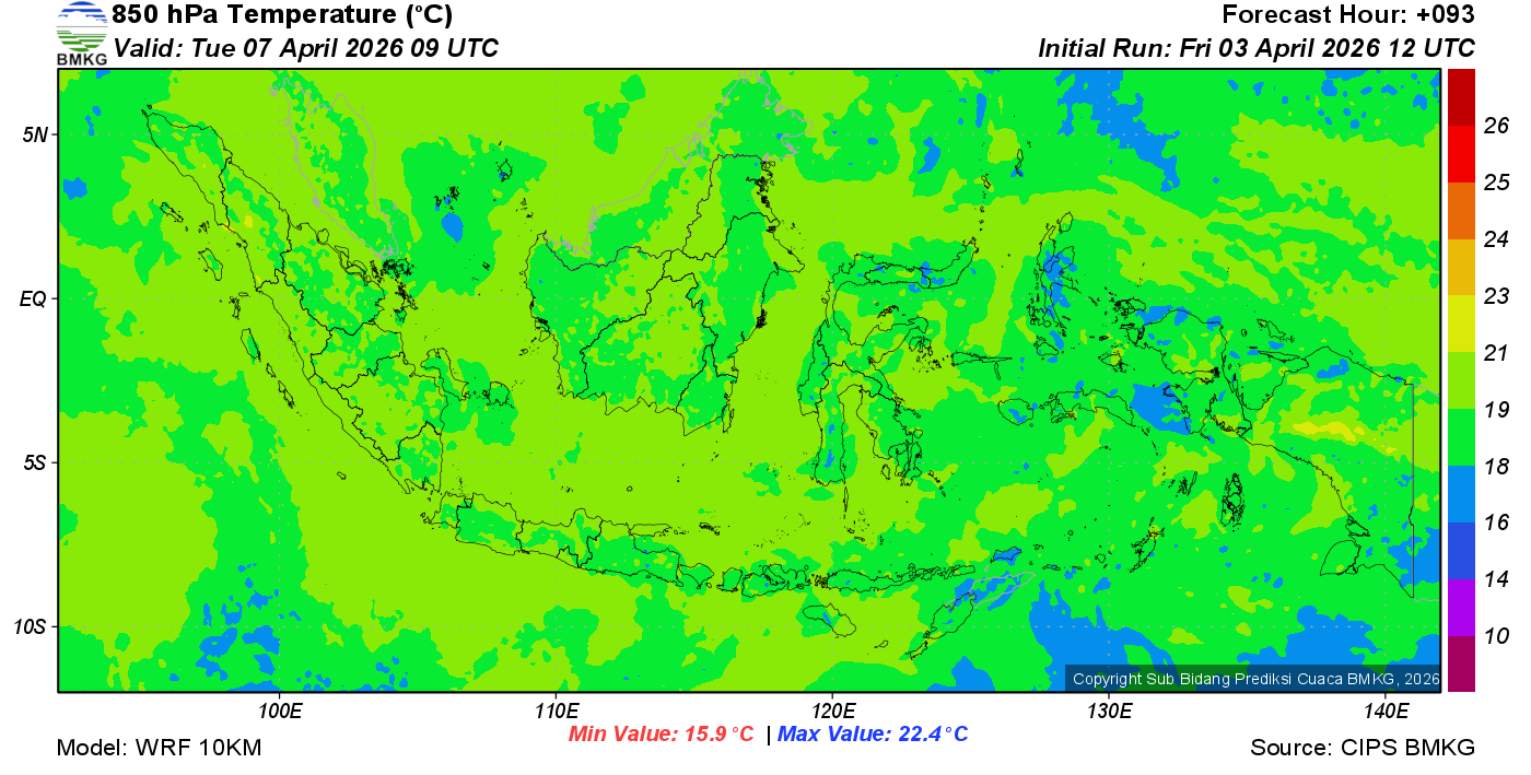 Prediksi Suhu Titik Embun 850 hPa NTT