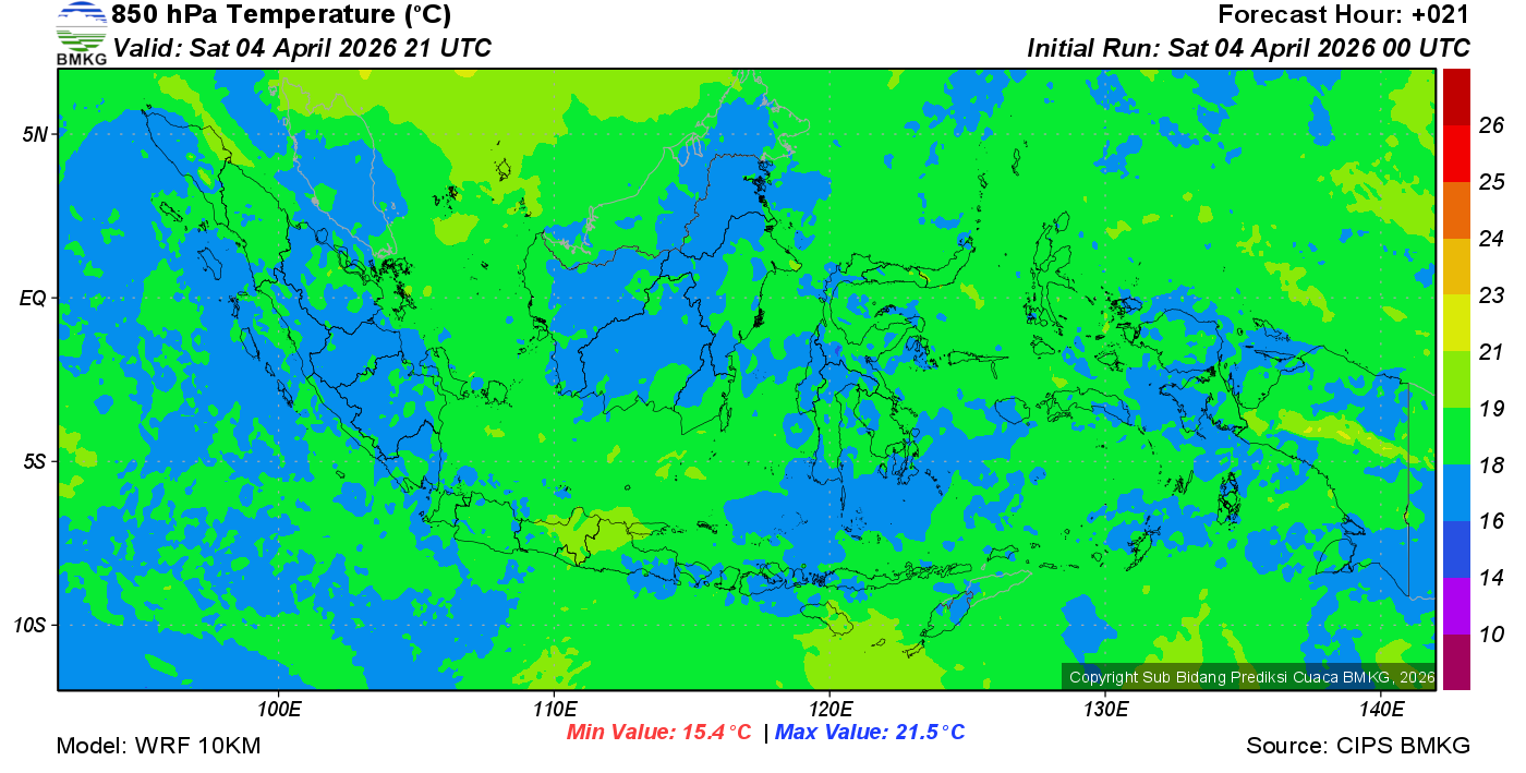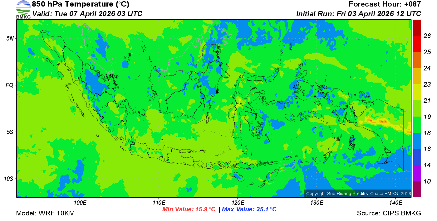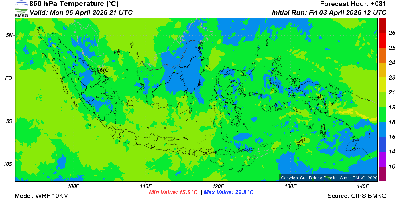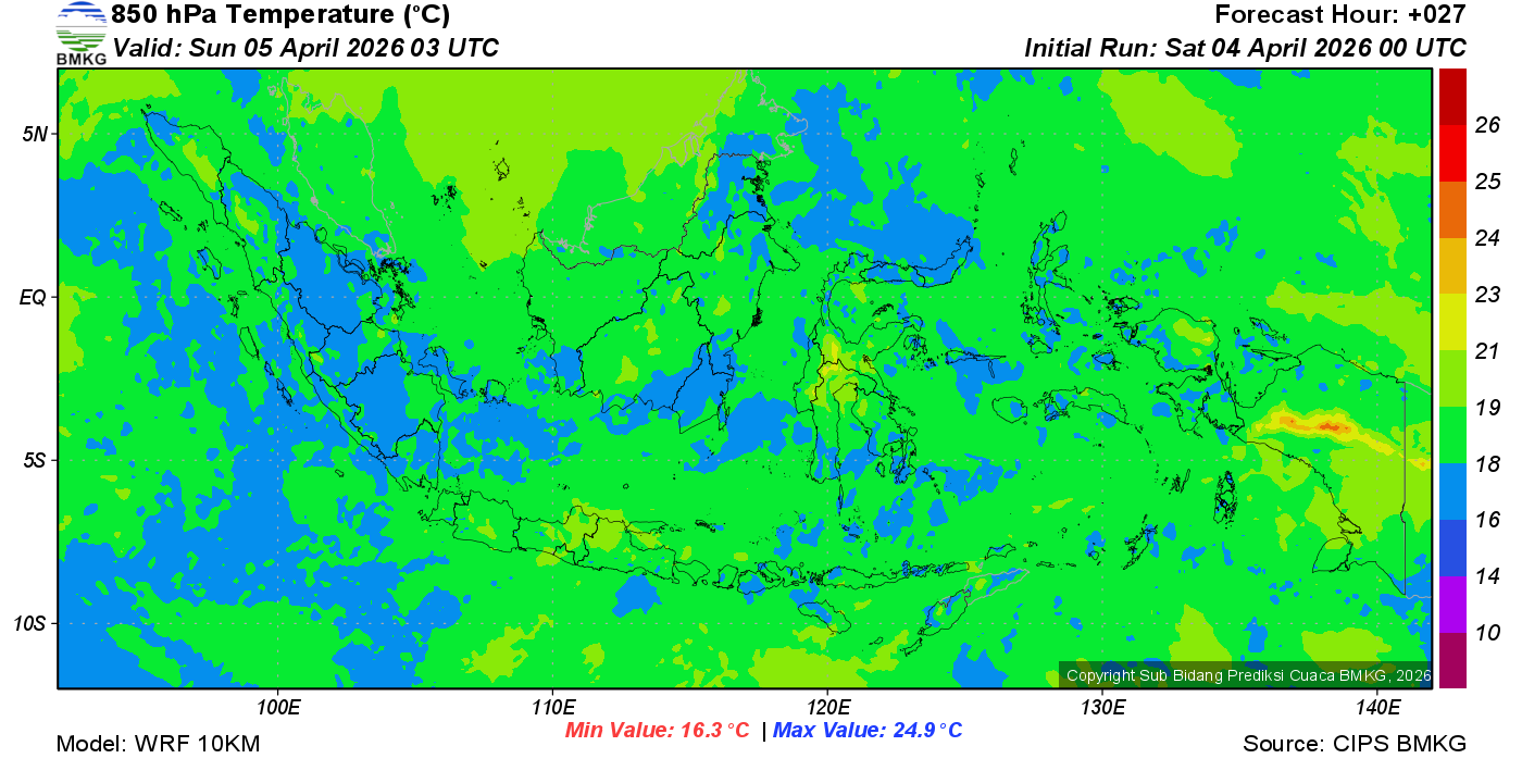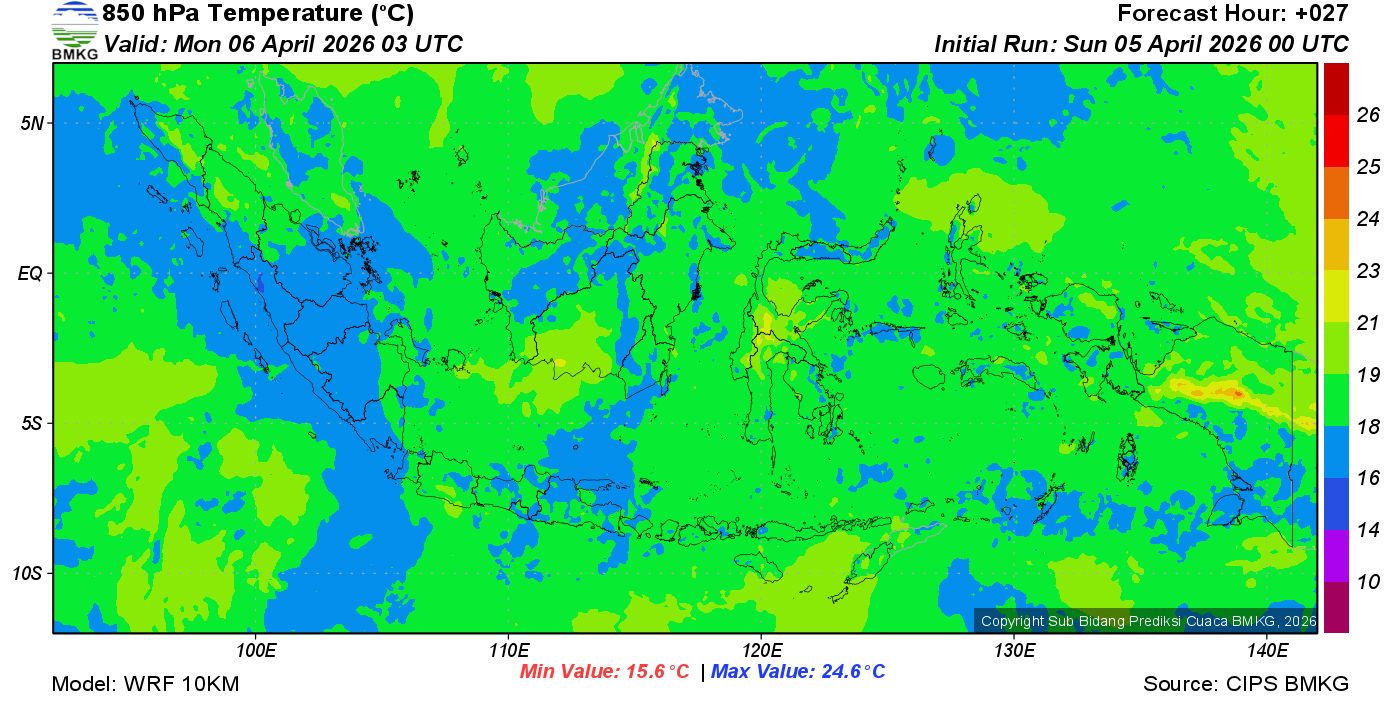 Prakiraan Angin Lapisan 850 Gunung Awu