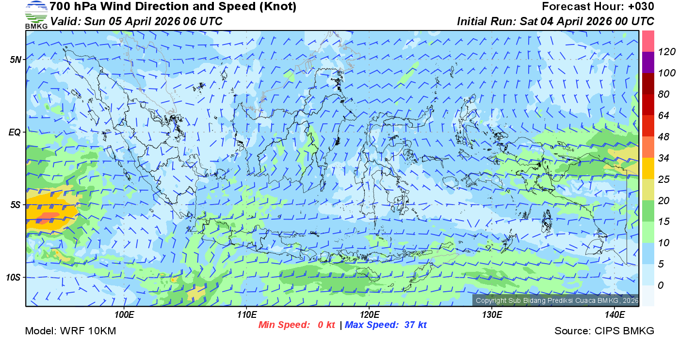 Prakiraan Angin Lapisan 700 Gunung Awu
