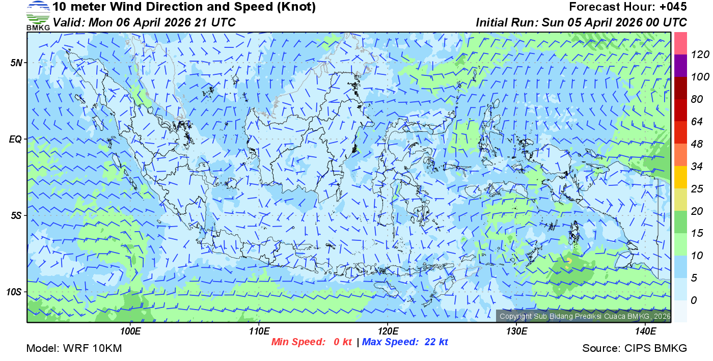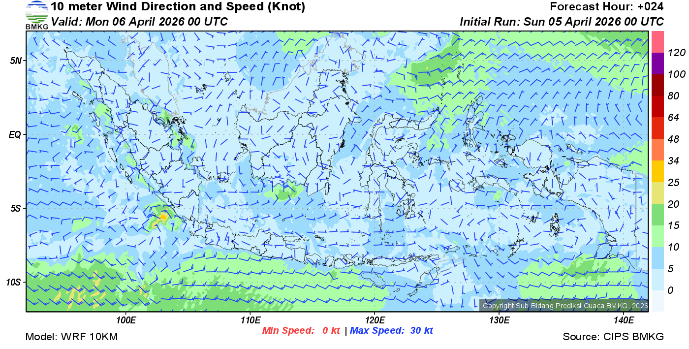 Prakiraan Angin Lapisan 10m Gunung Awu