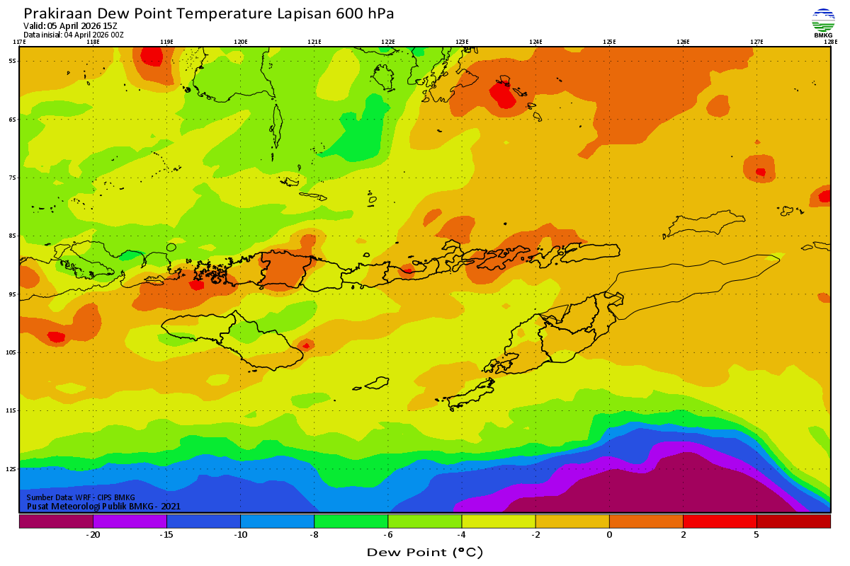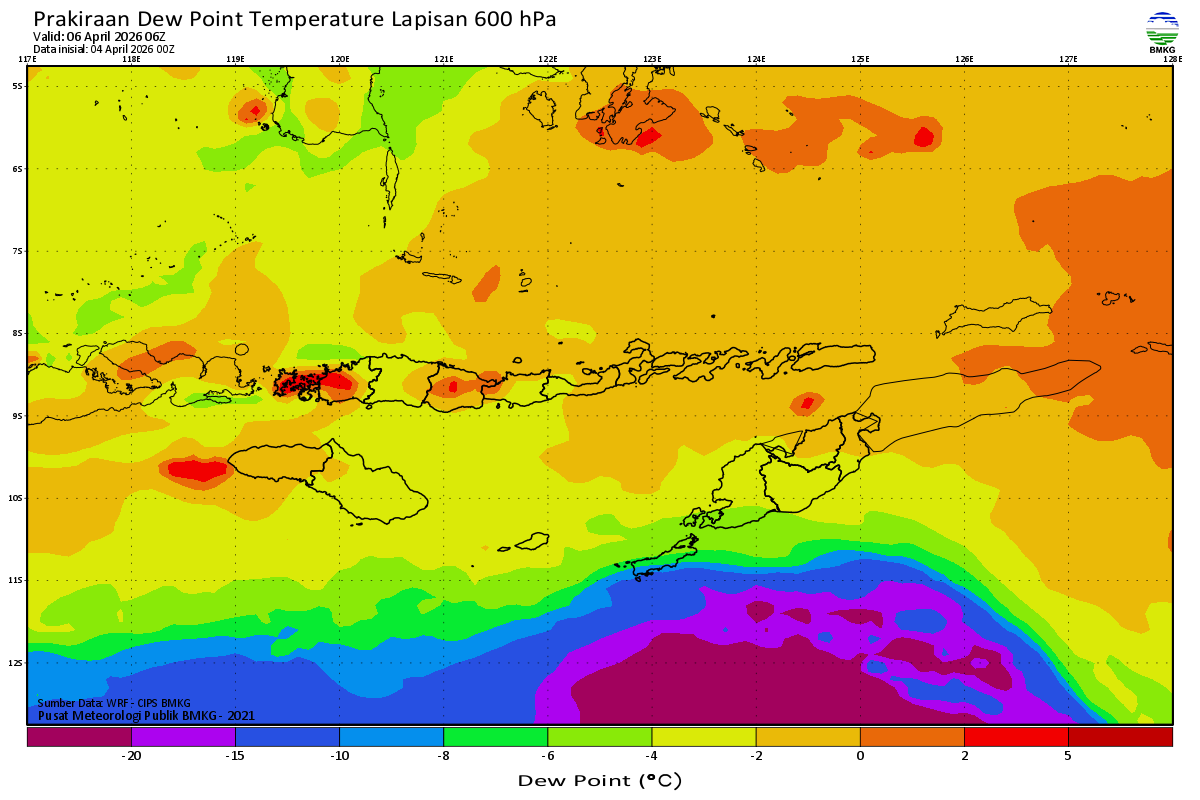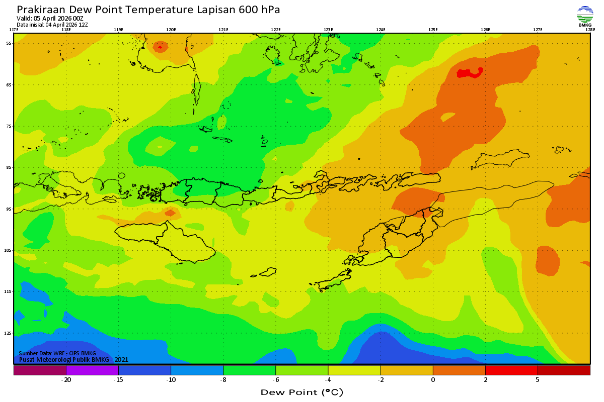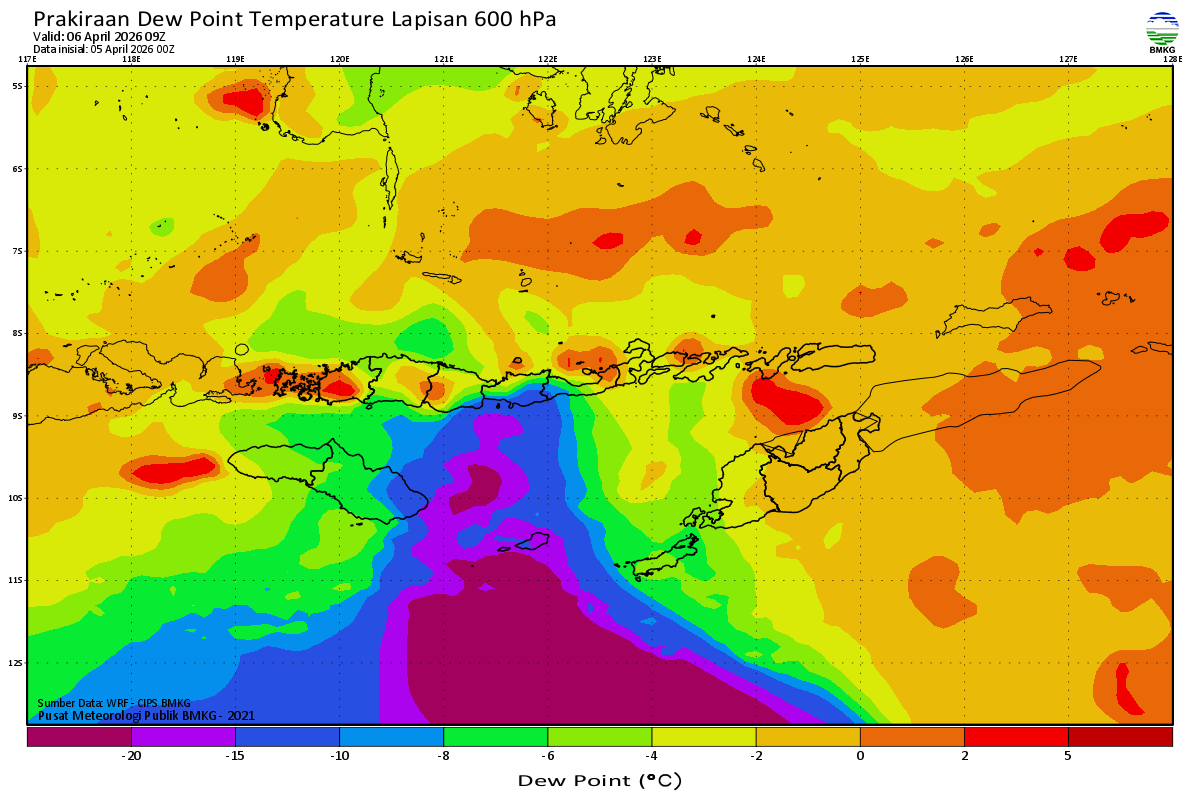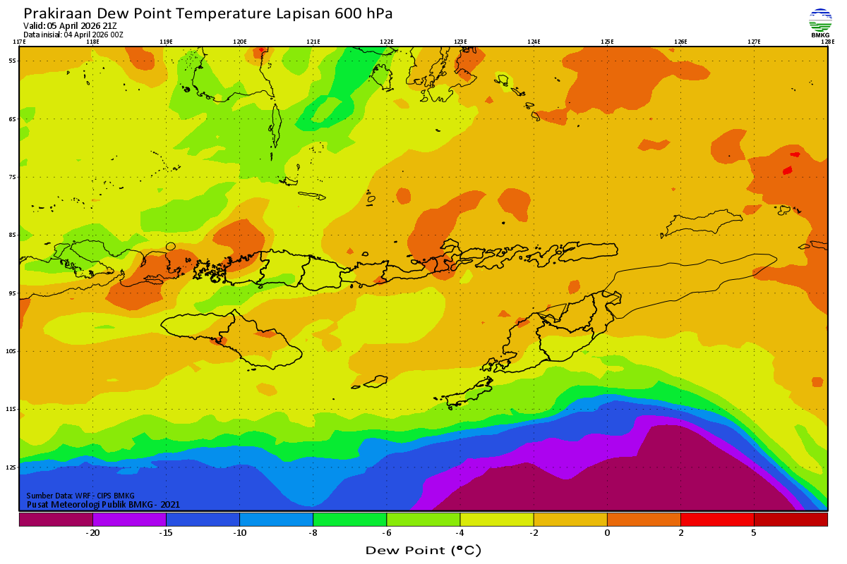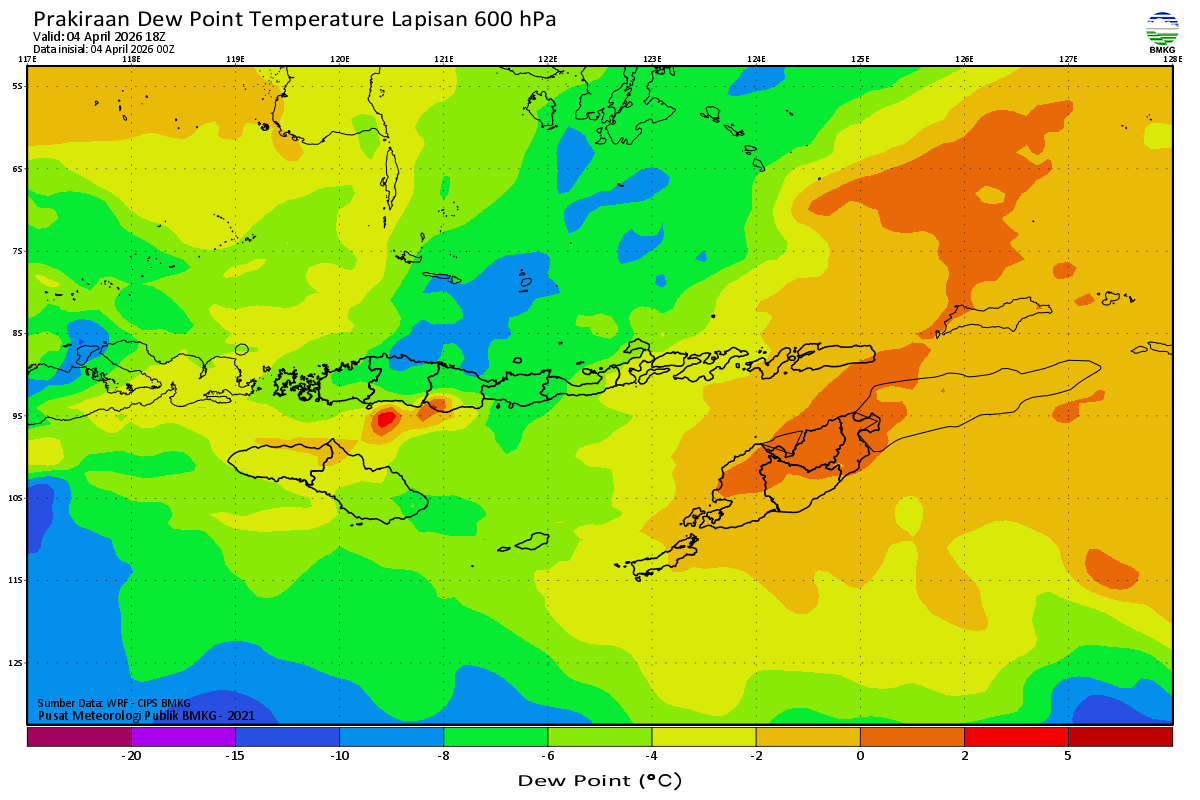 Prediksi Suhu Titik Embun 600 hPa NTT