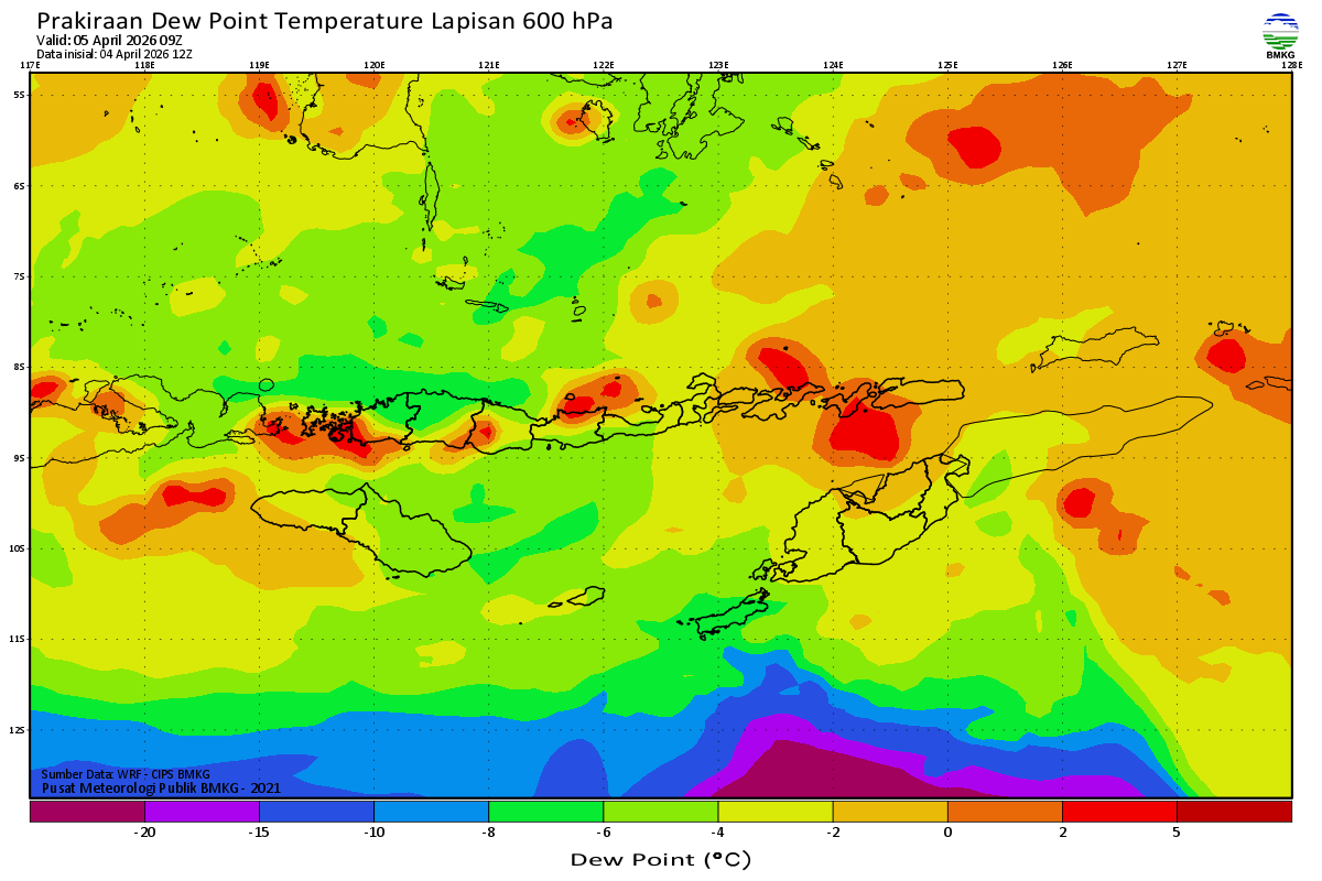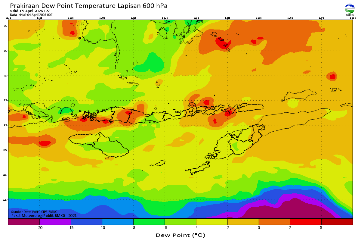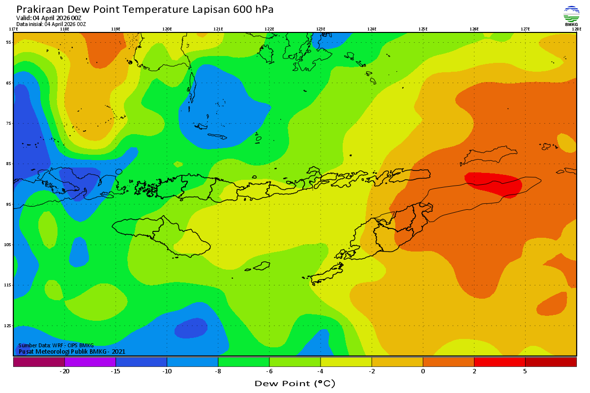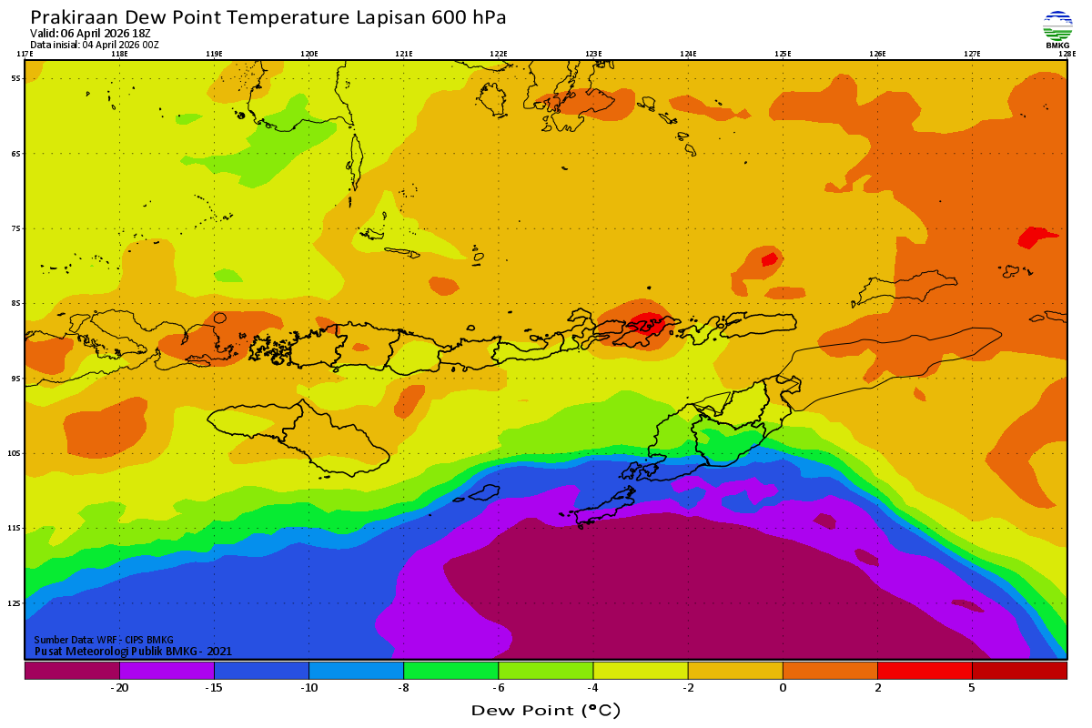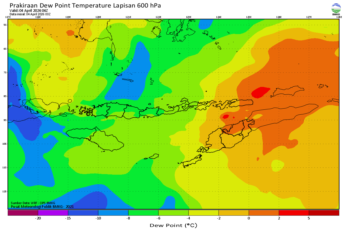 Prediksi Suhu Titik Embun 600 hPa NTT