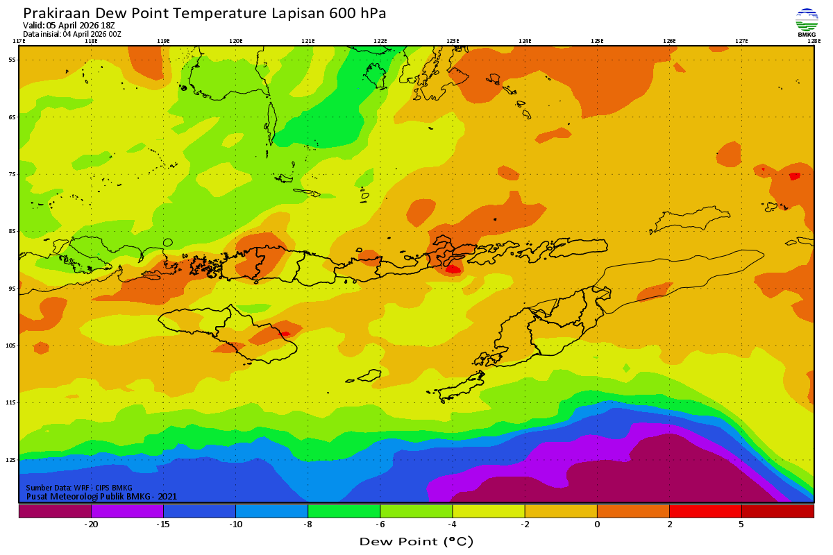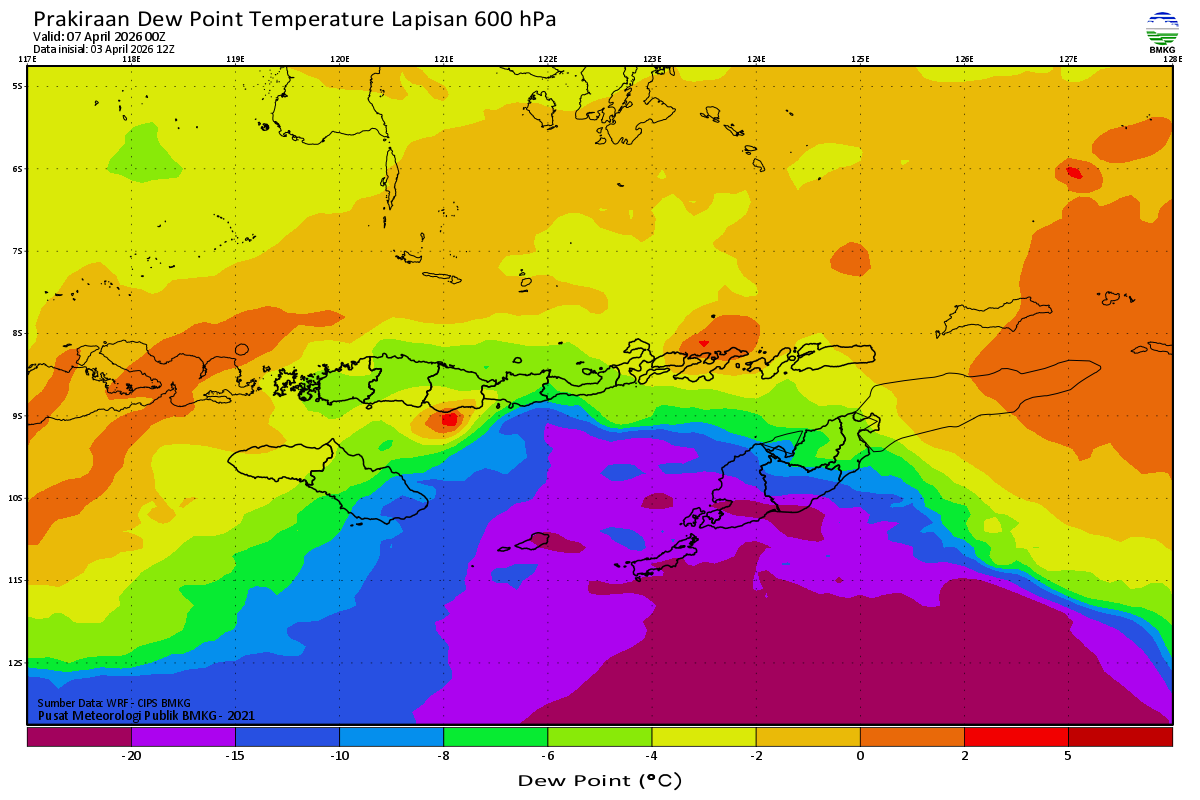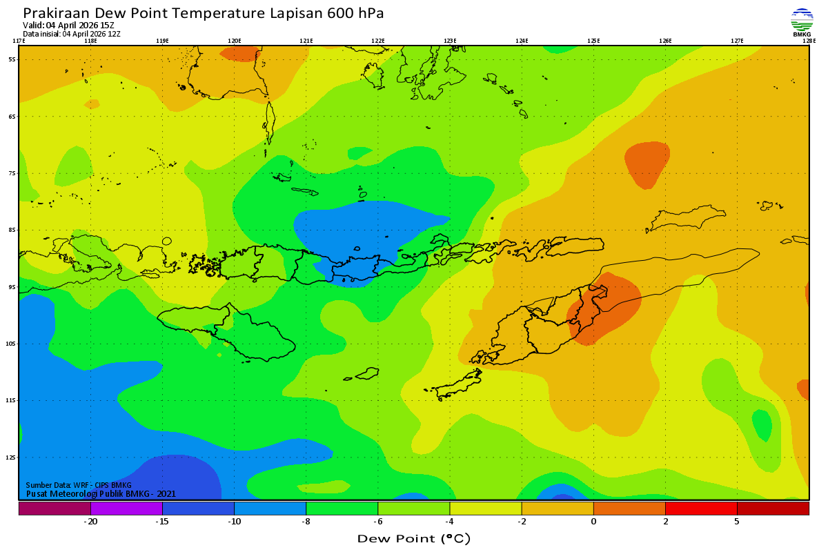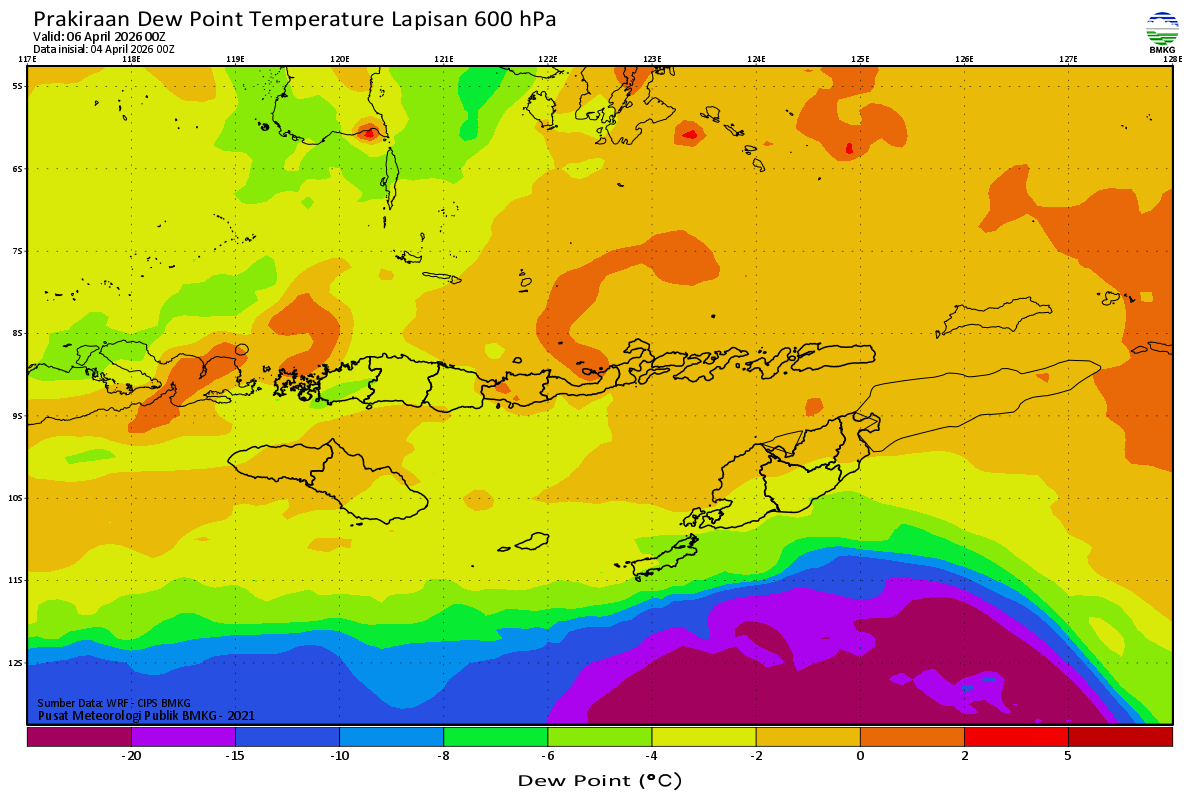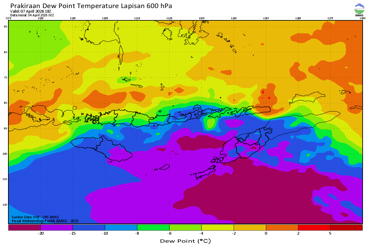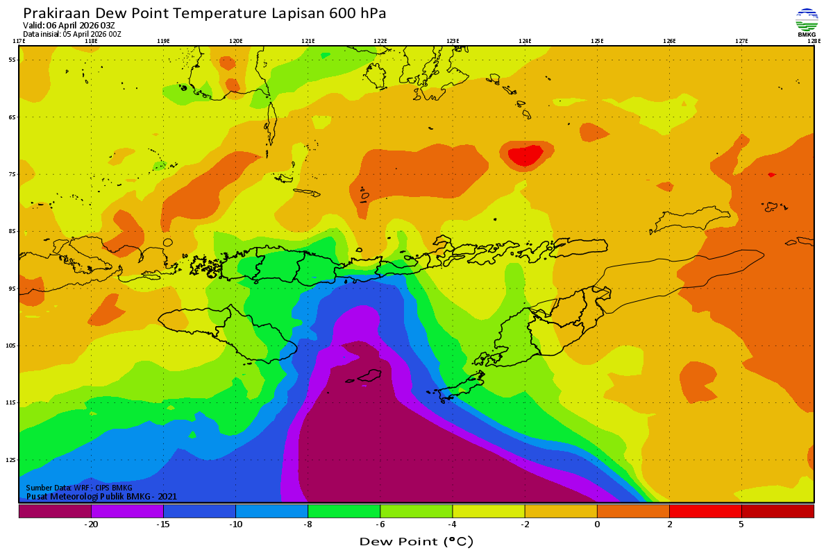 Prediksi Suhu Titik Embun 600 hPa NTT