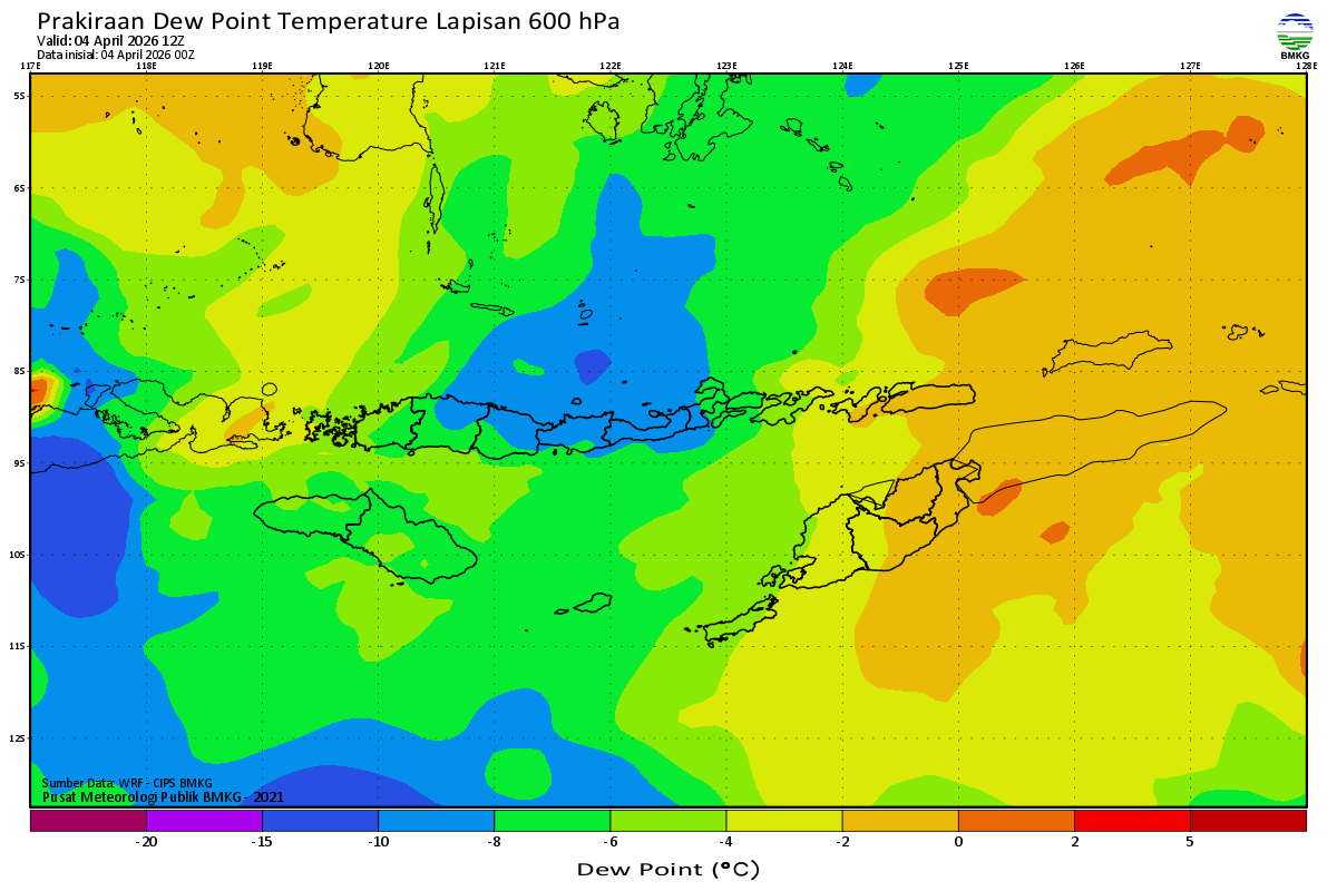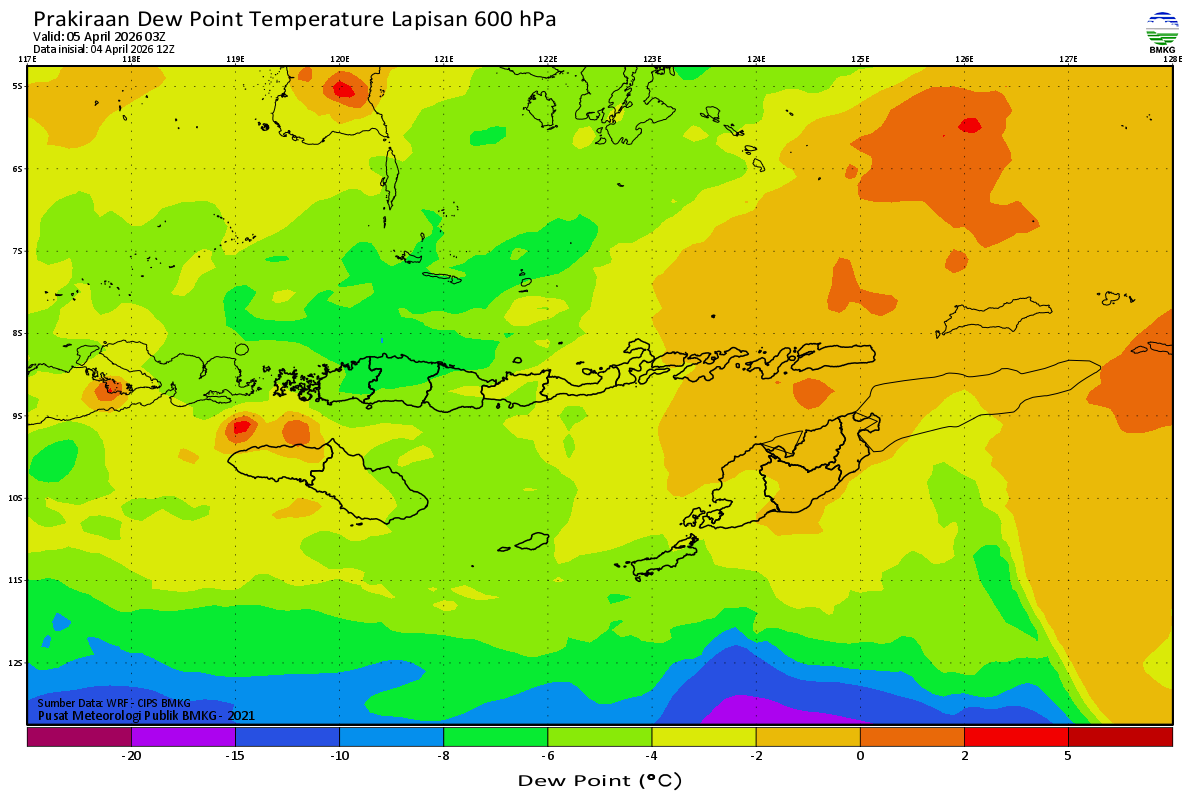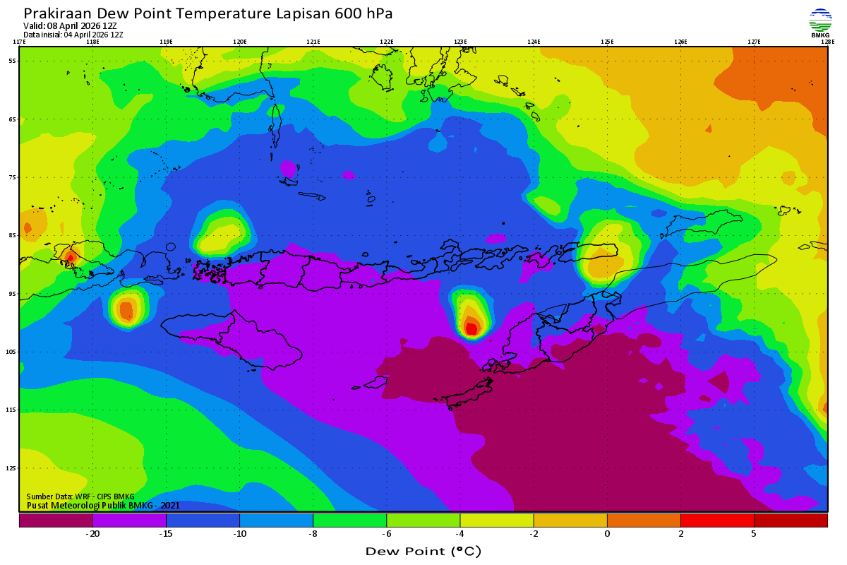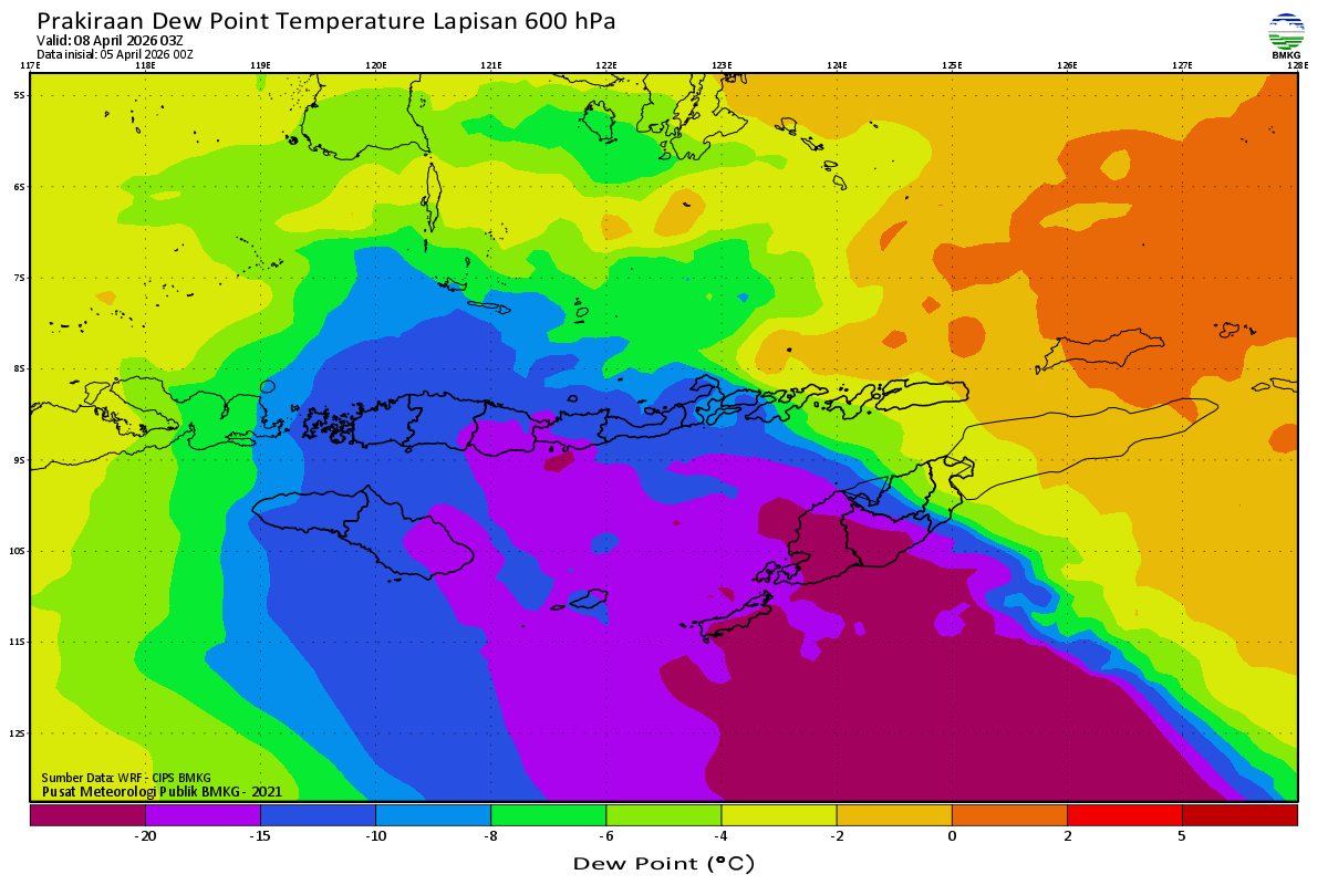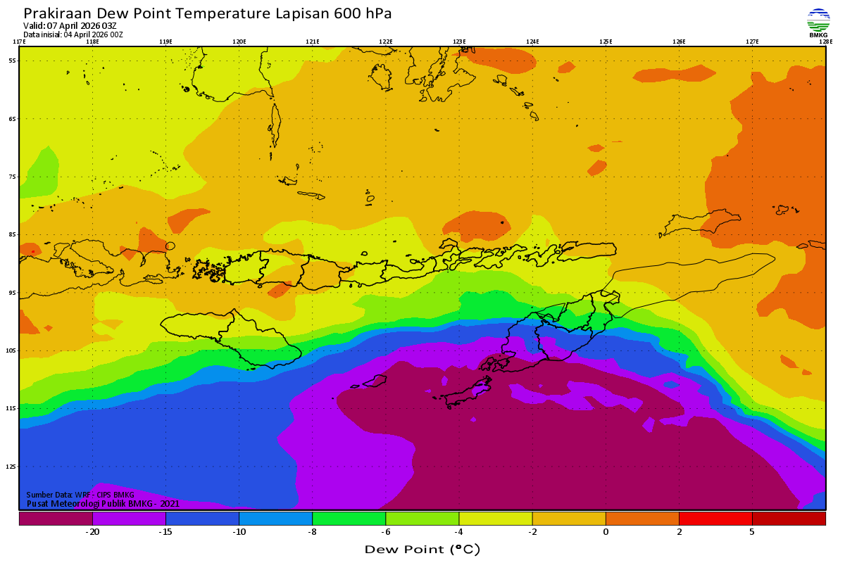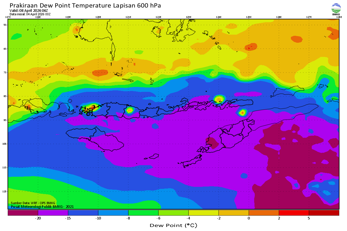 Prediksi Suhu Titik Embun 600 hPa NTT