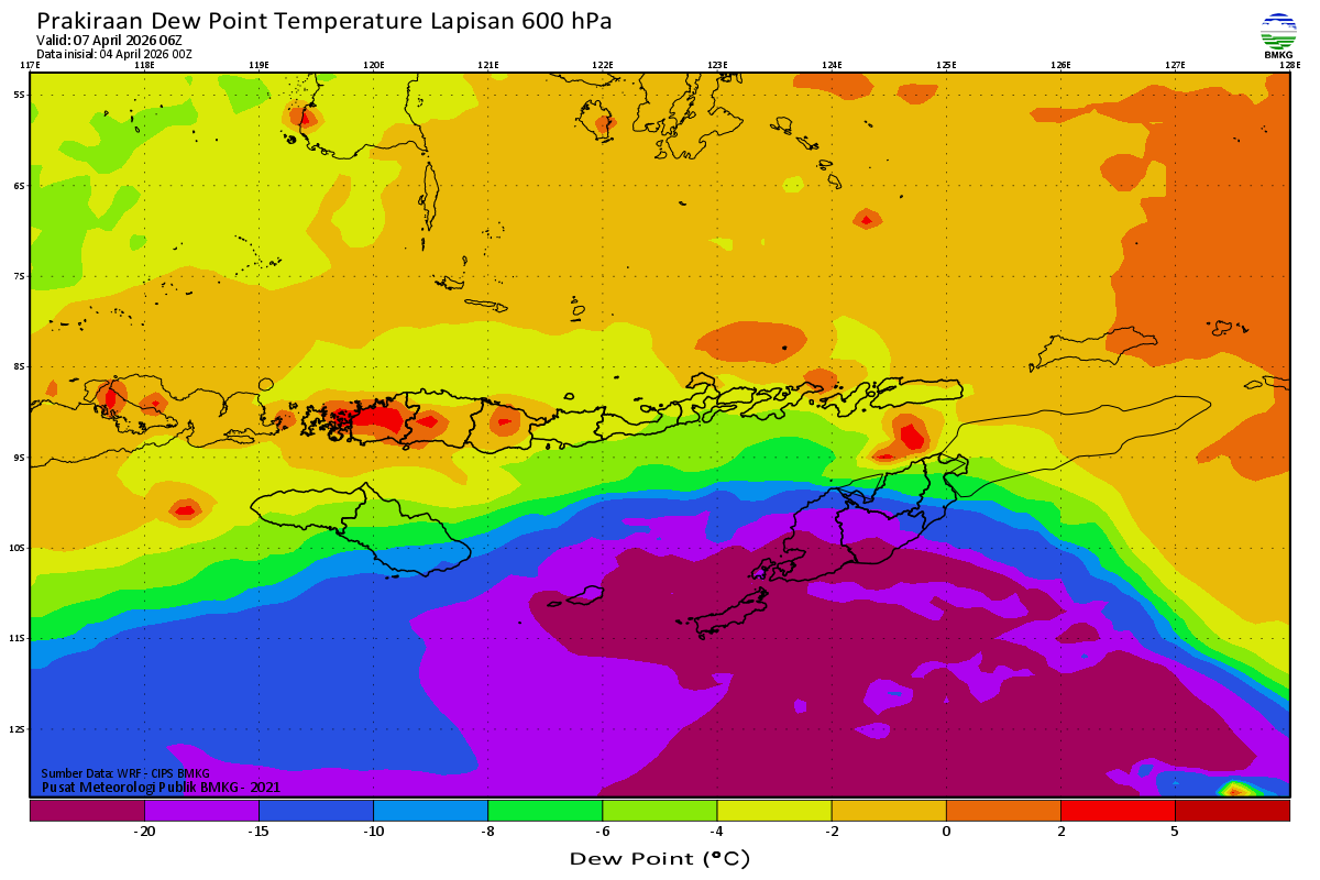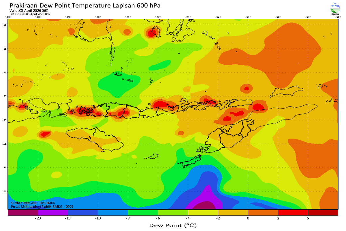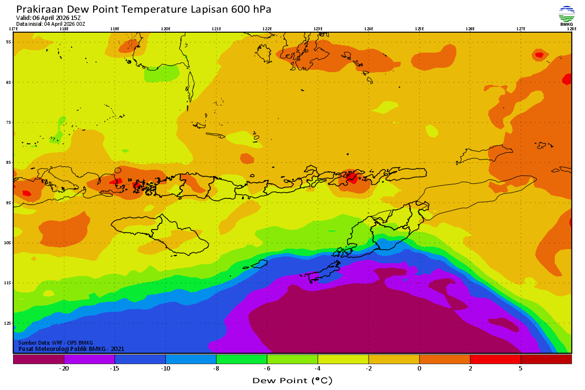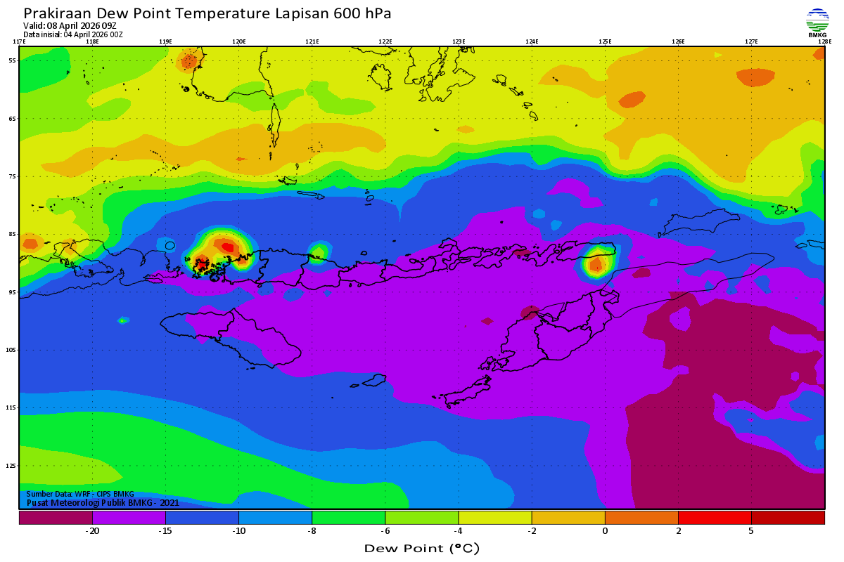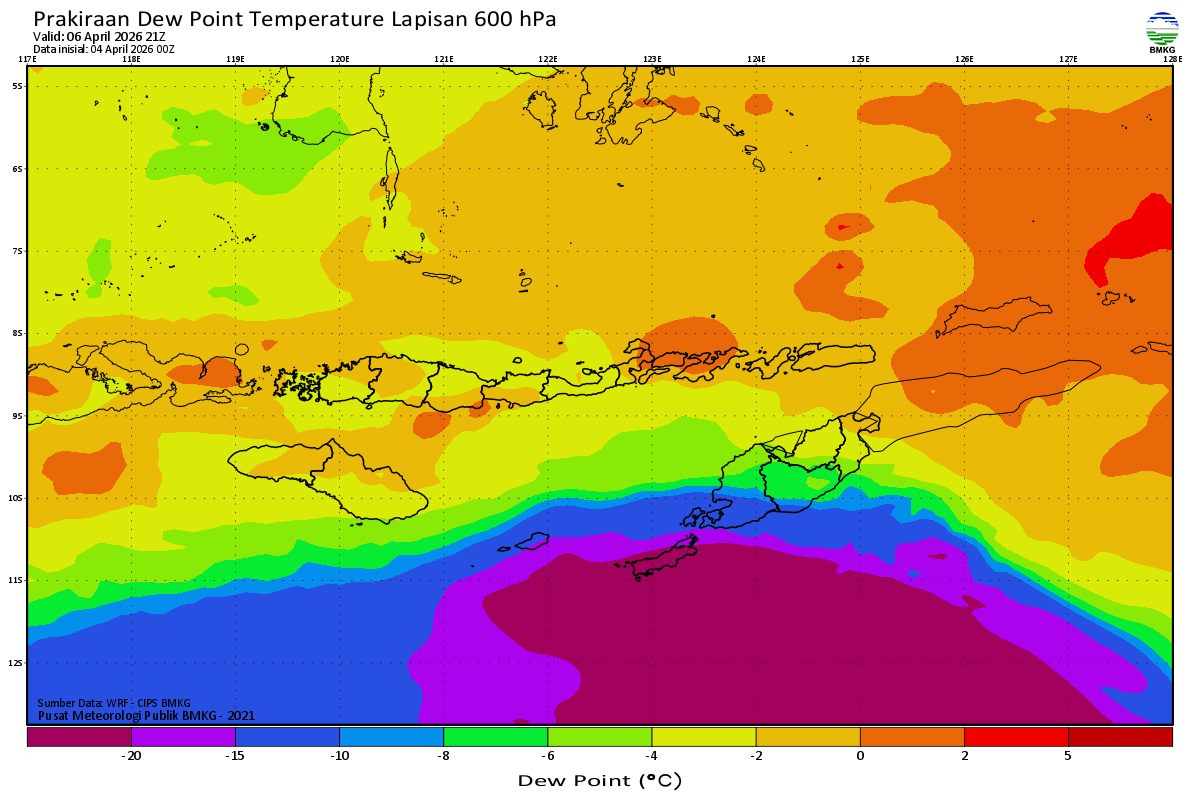 Prediksi Suhu Titik Embun 600 hPa NTT