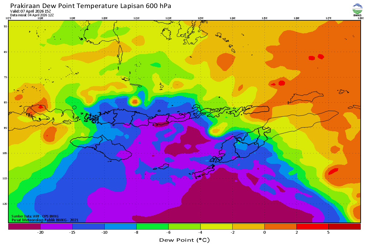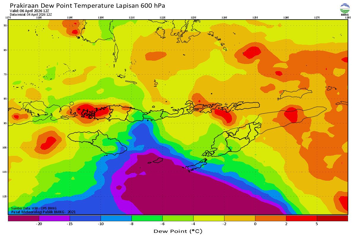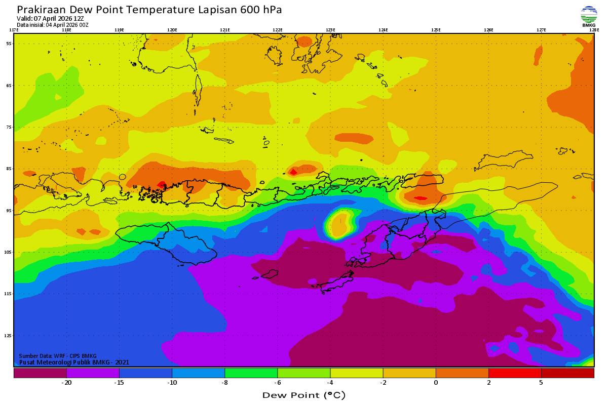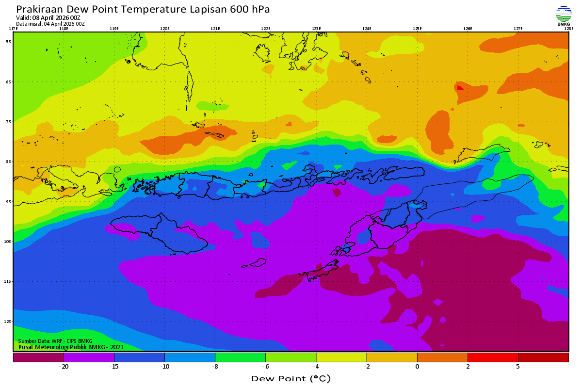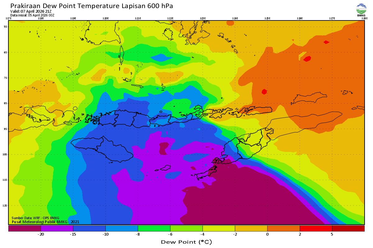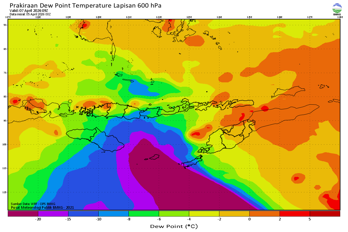 Prediksi Suhu Titik Embun 600 hPa NTT