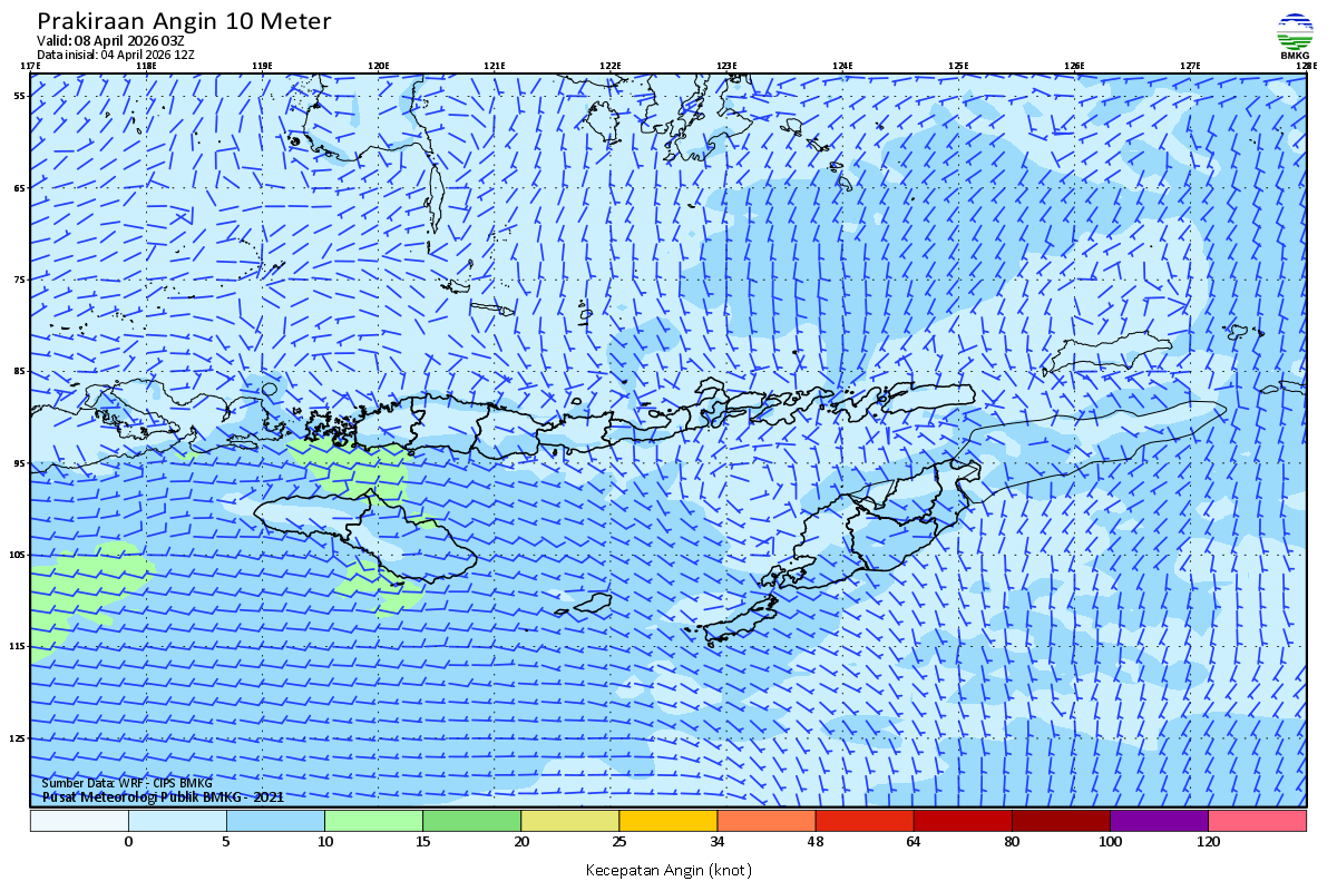 Prakiraan Angin Lapisan 10m Gunung Awu