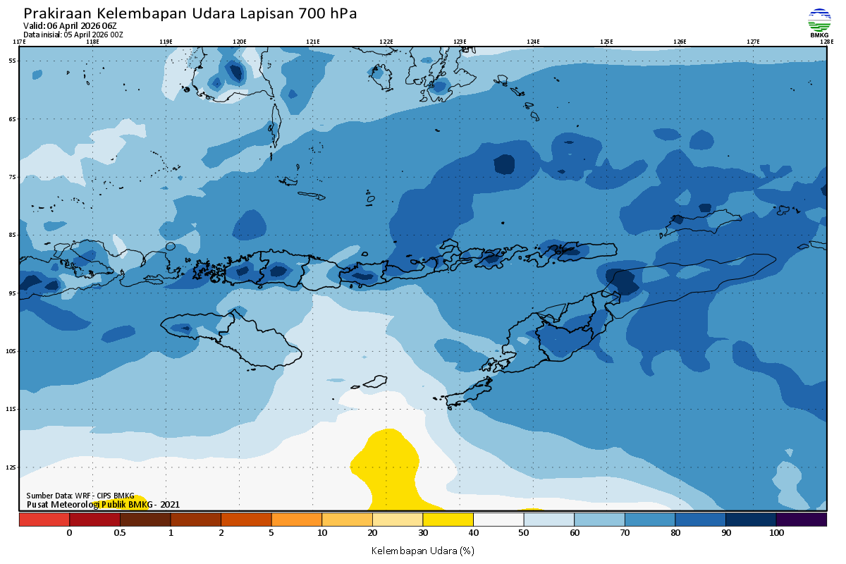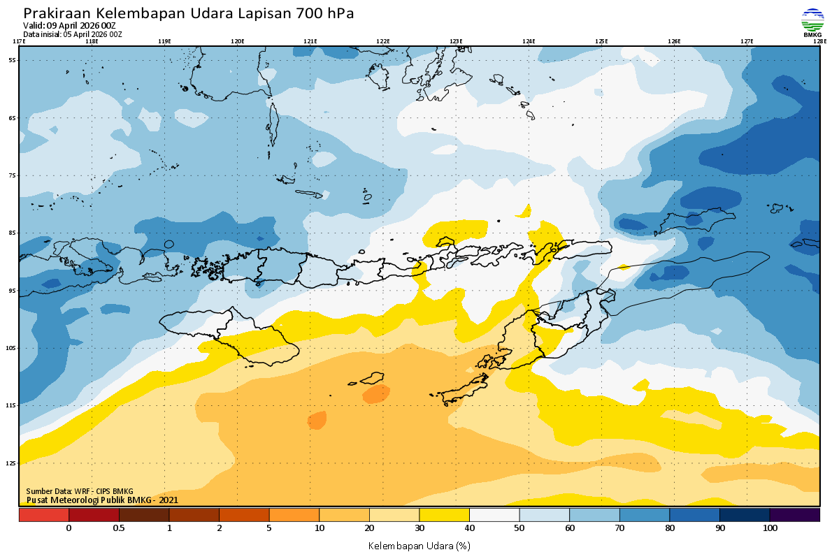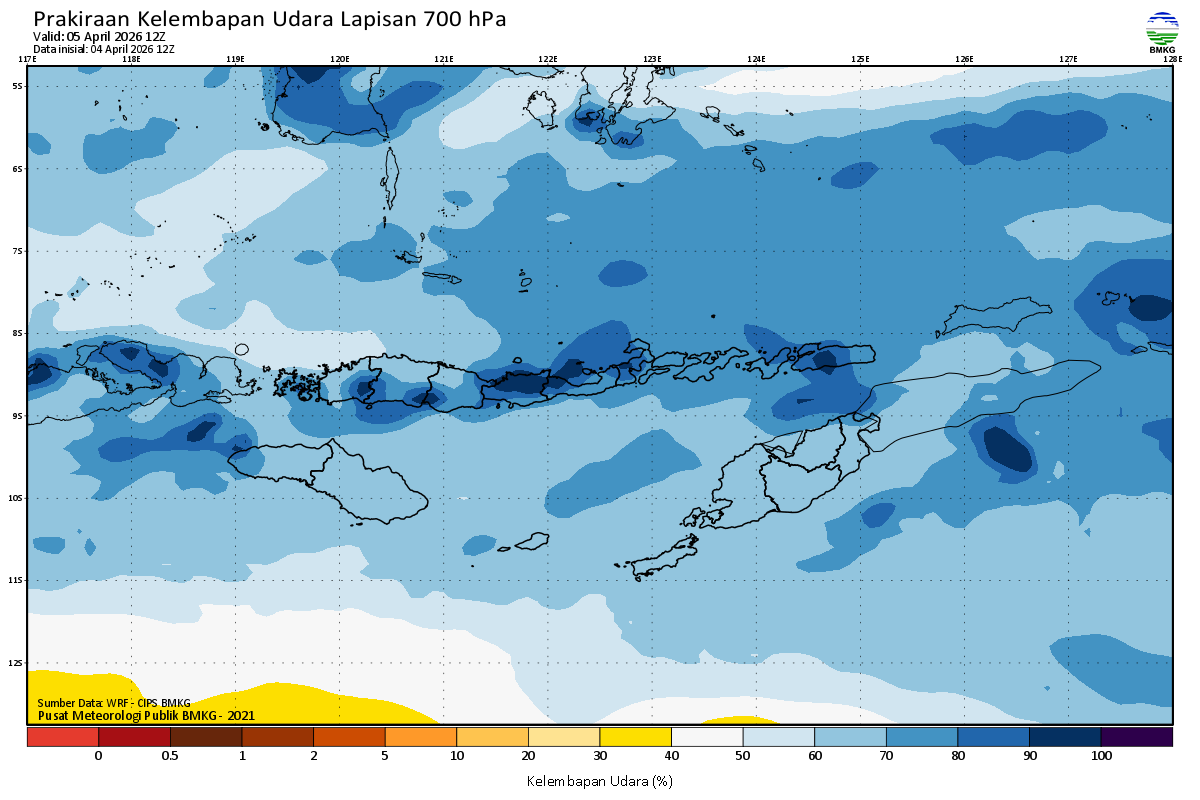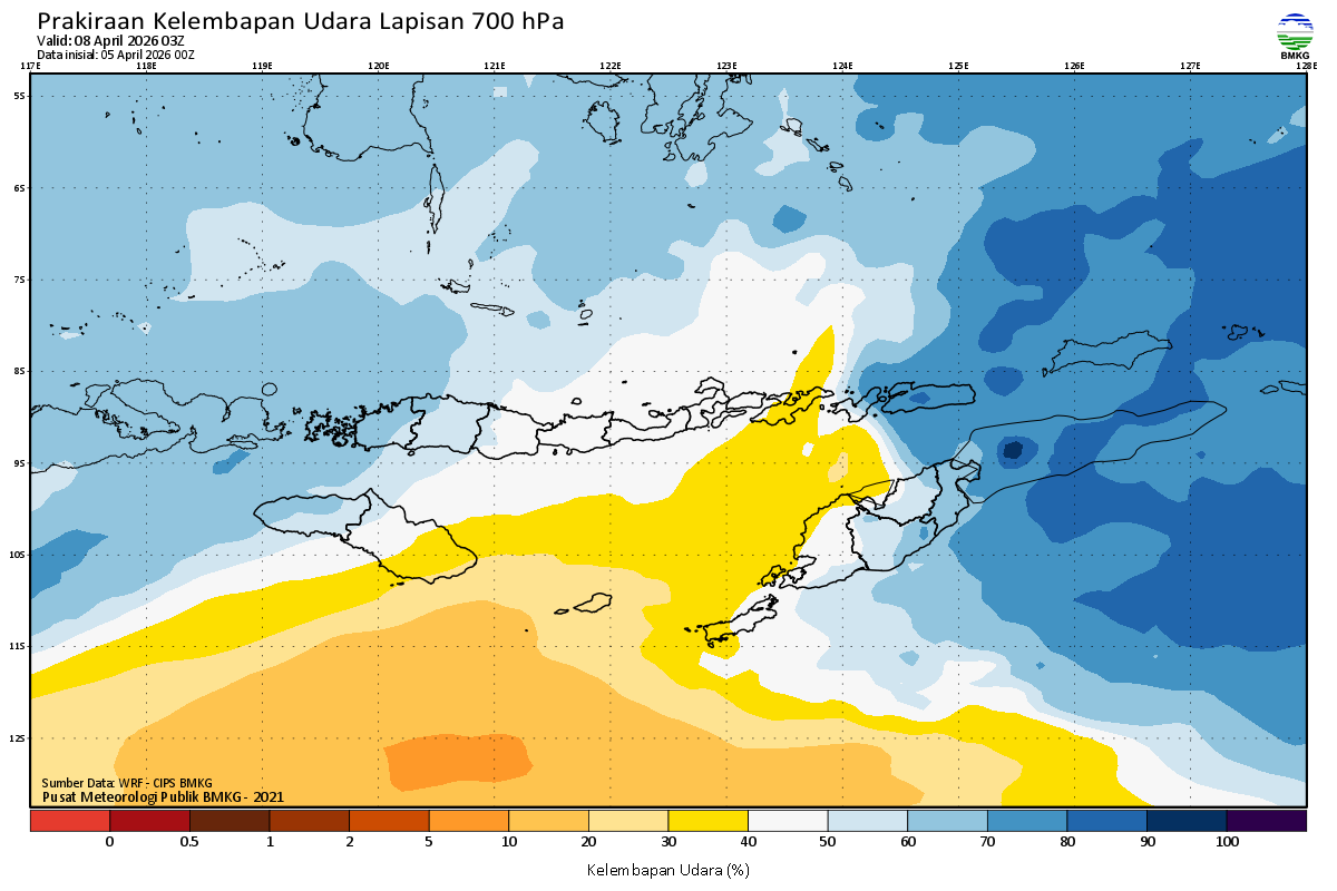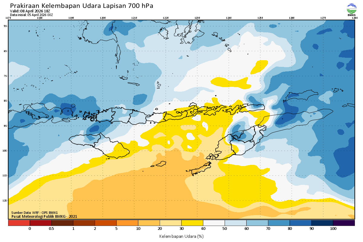Prediksi Kelembapan 700 hPa NTT