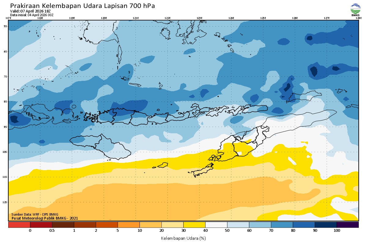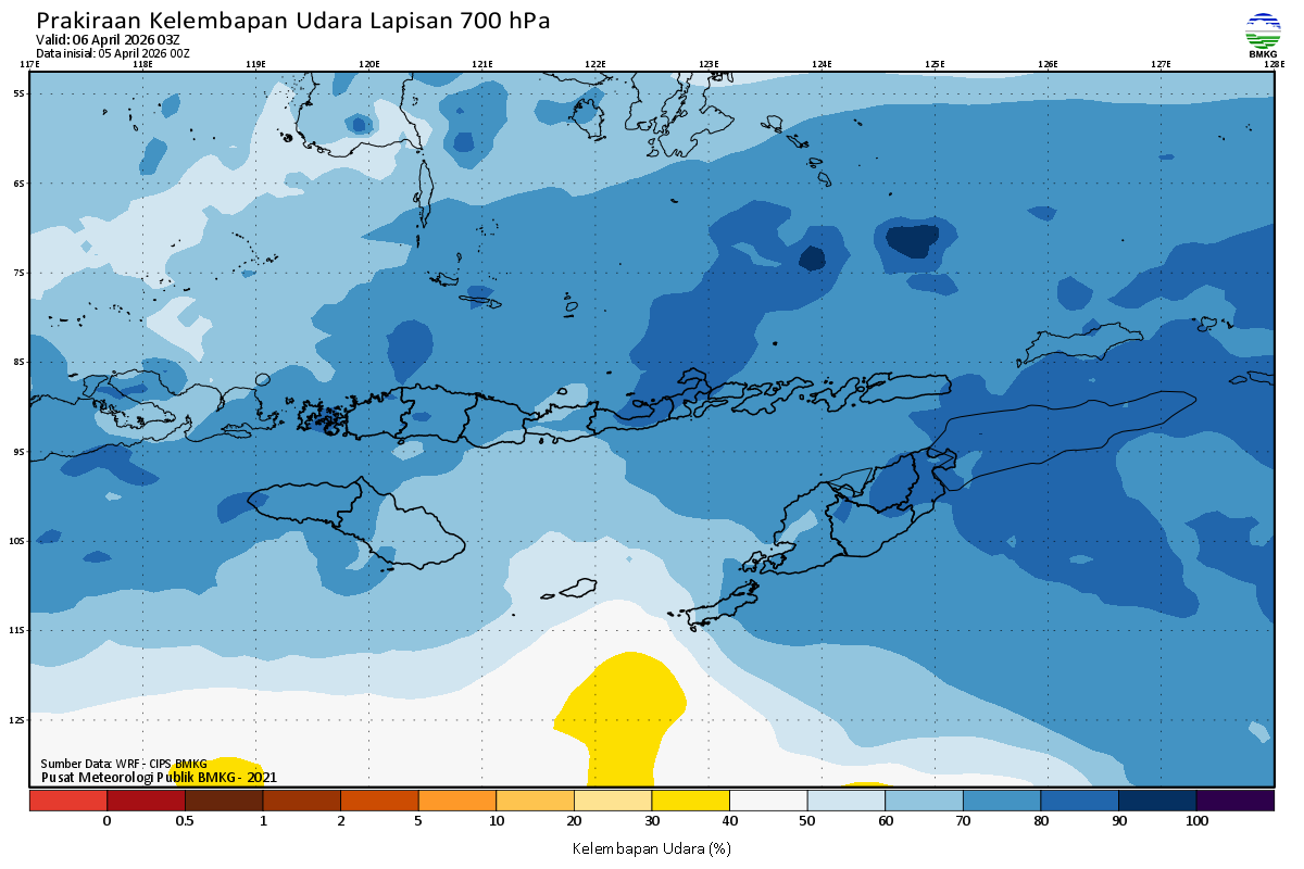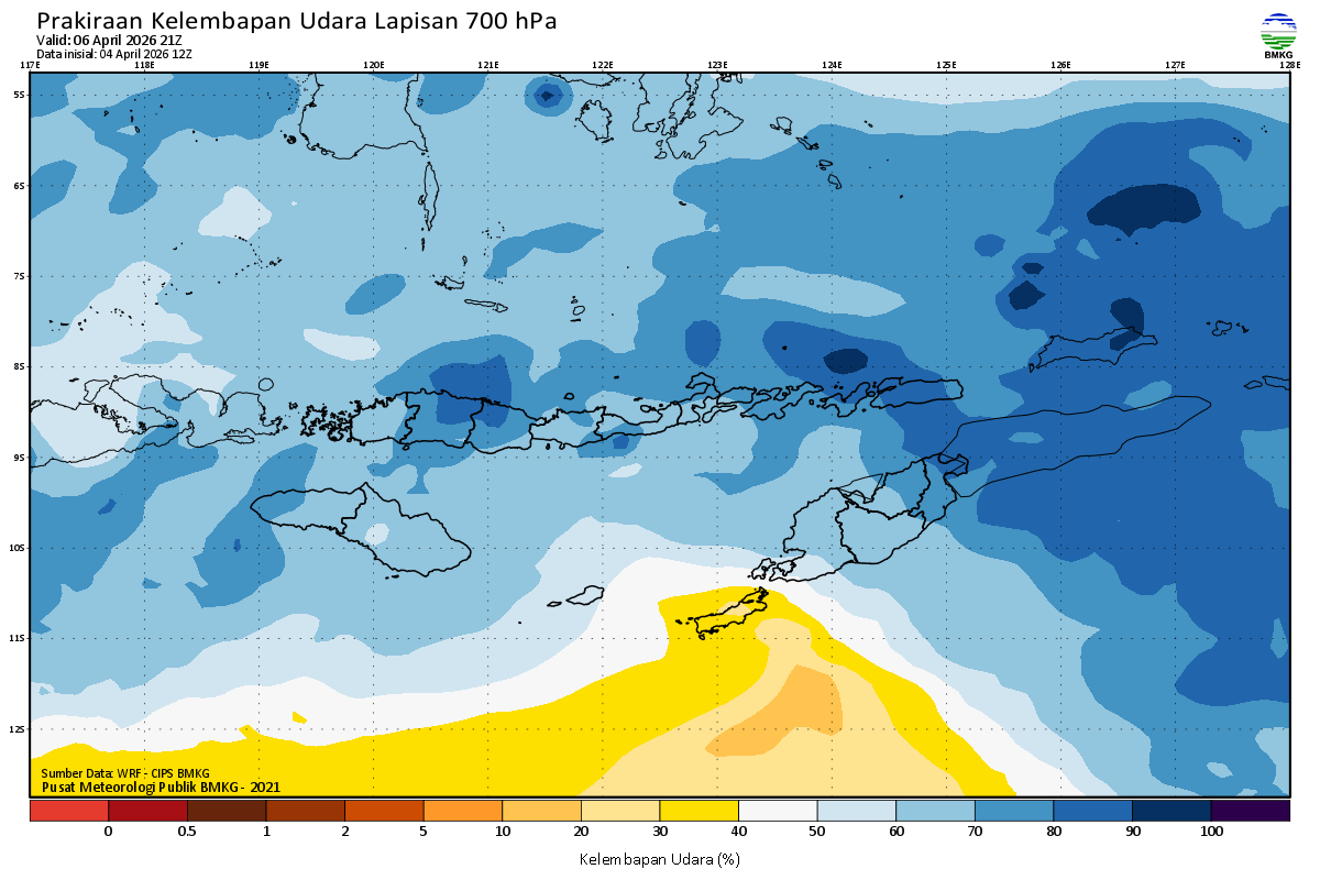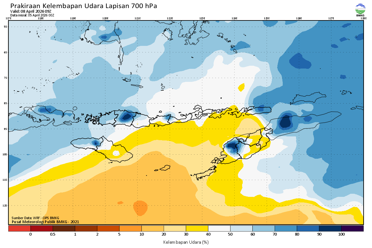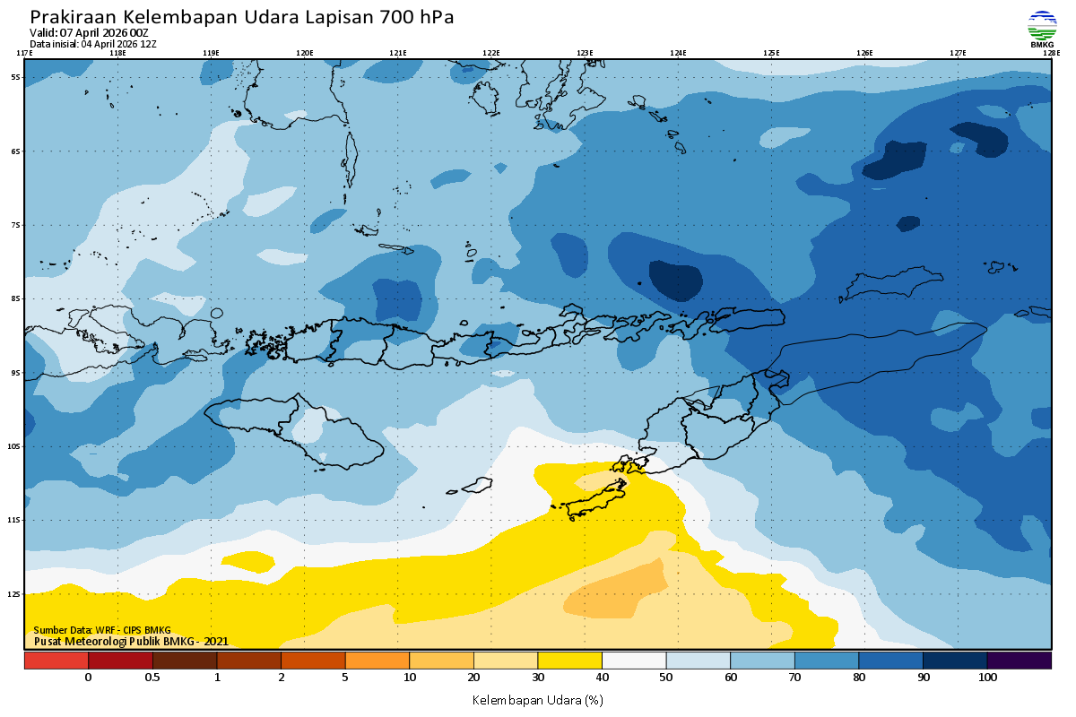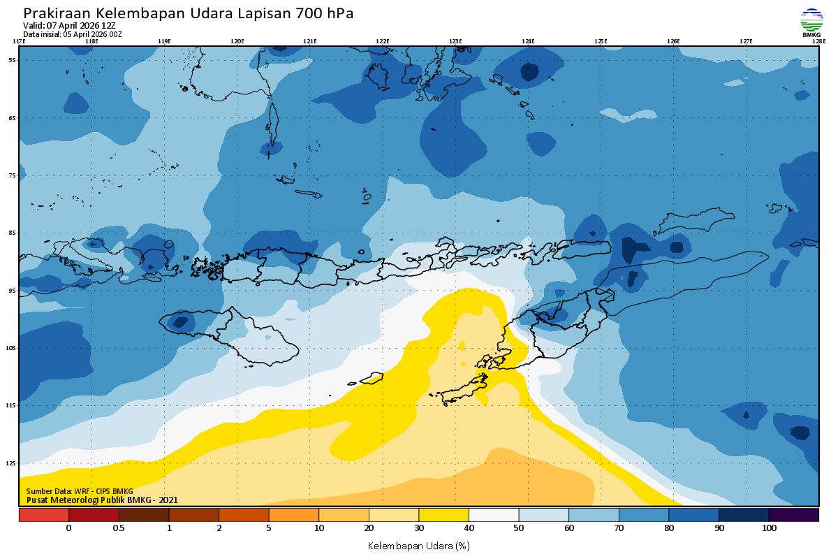 Prediksi Kelembapan 700 hPa NTT